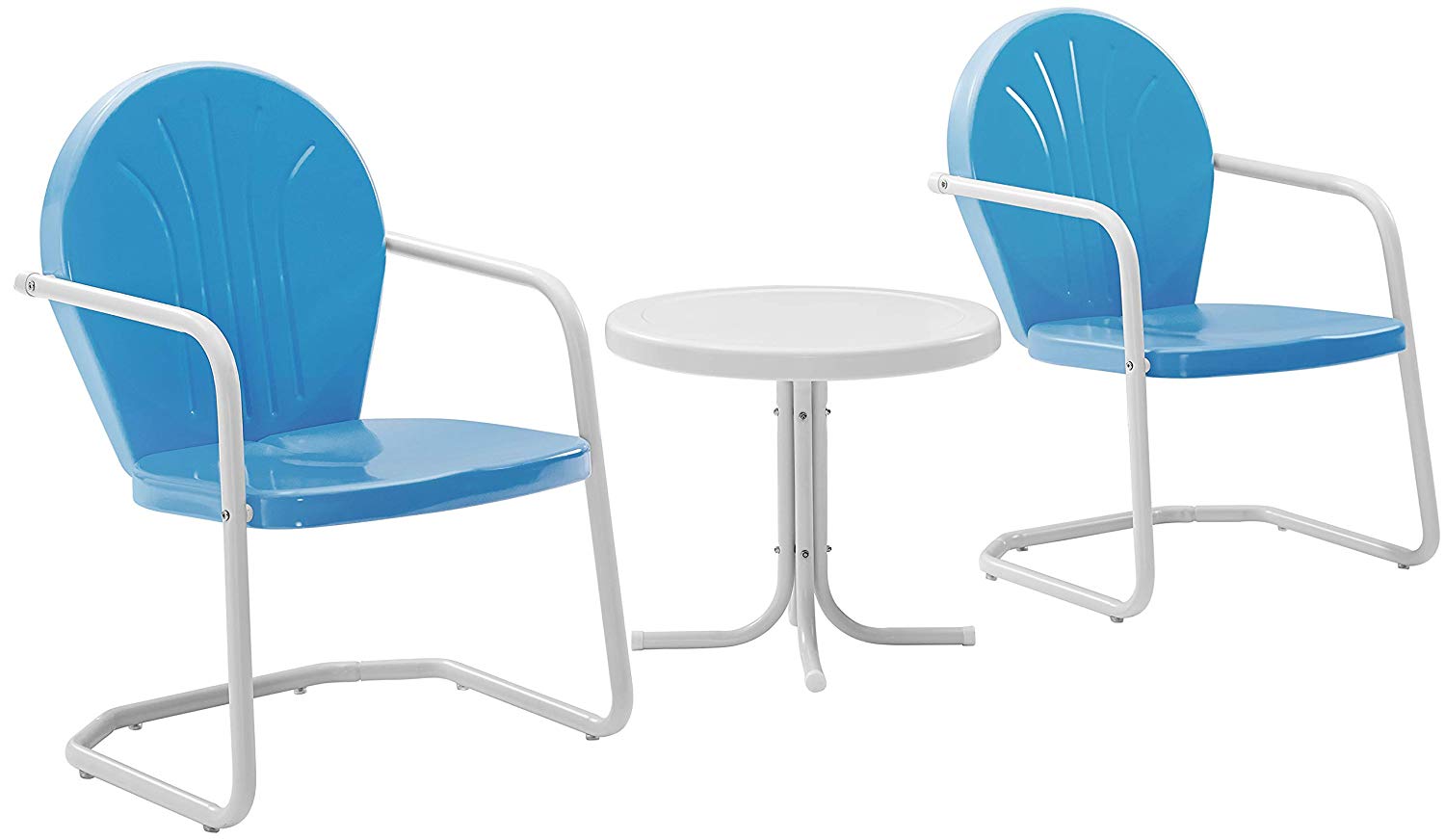 Crosley Furniture Griffith 3-Piece Metal Outdoor Conversation Seating Set. Blue