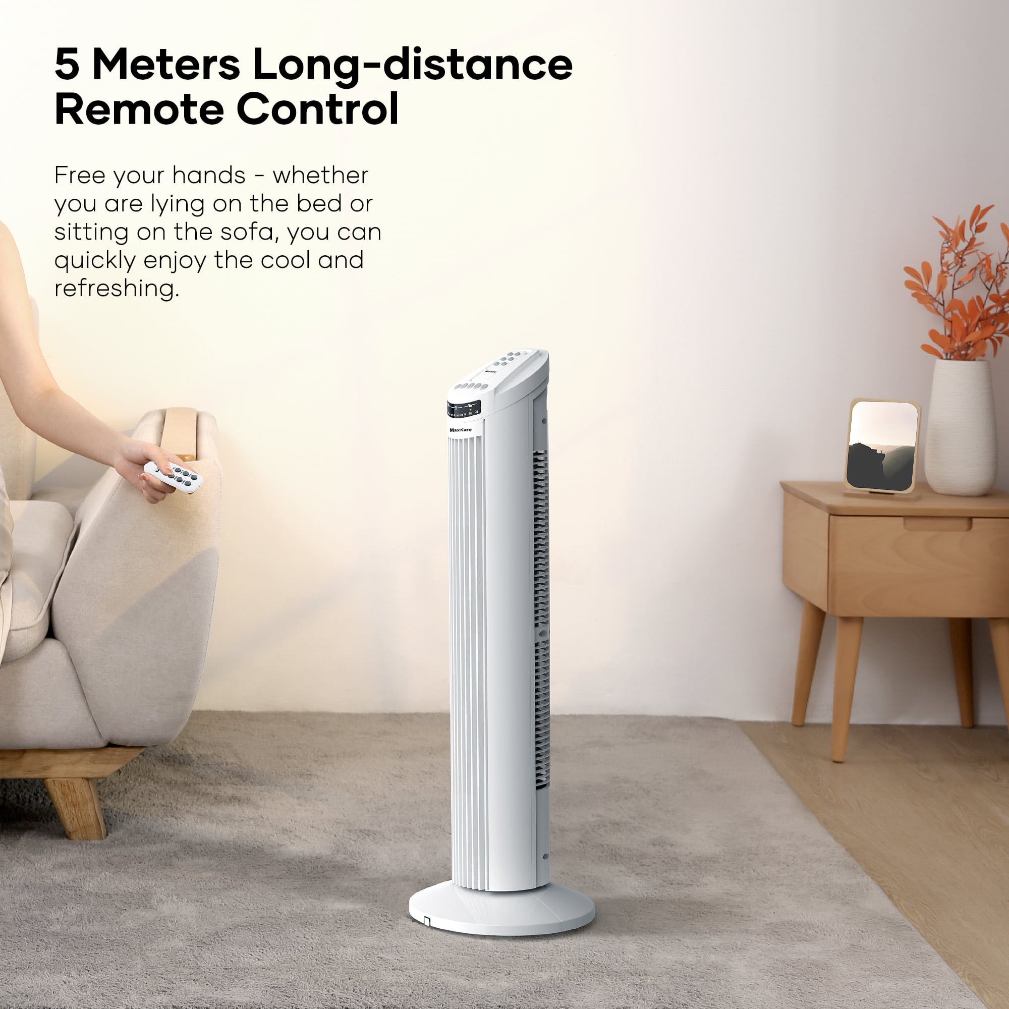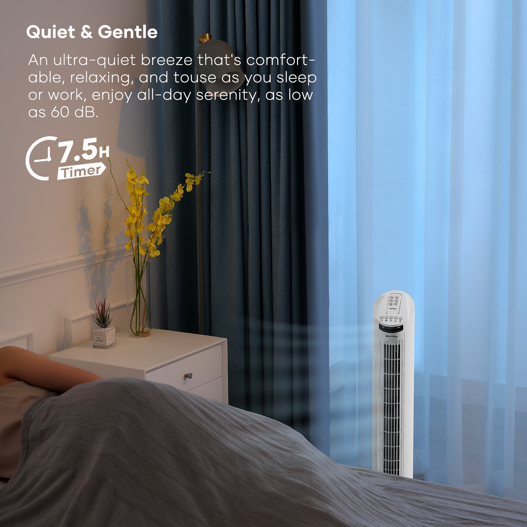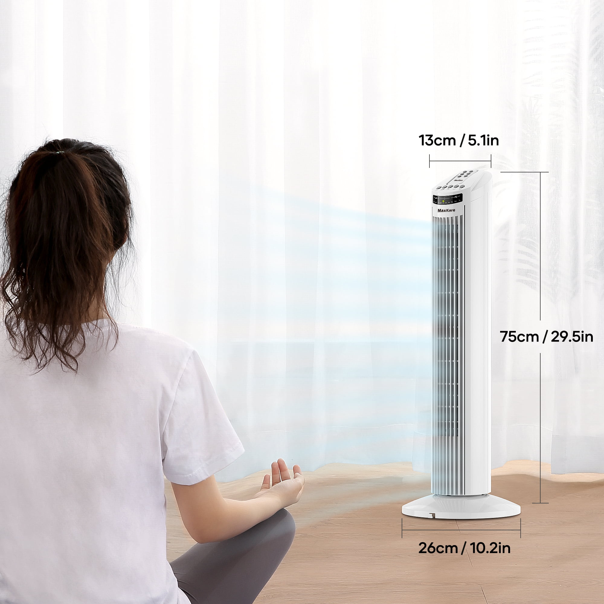 MaxKare 30″ Tower Fan 120° Oscillating Fan 60dB Quiet Cooling Fan with Remote Control 3 Speeds 3 Wind Modes Timer - White