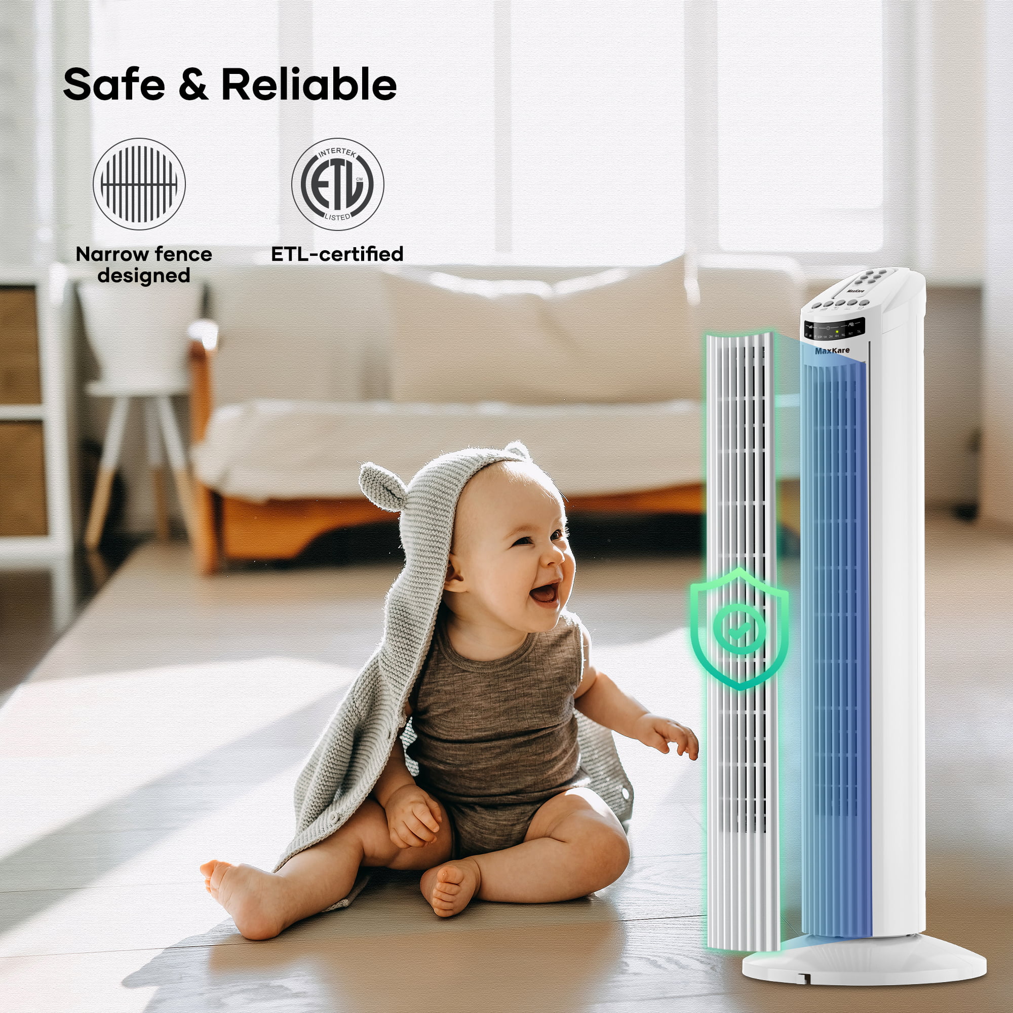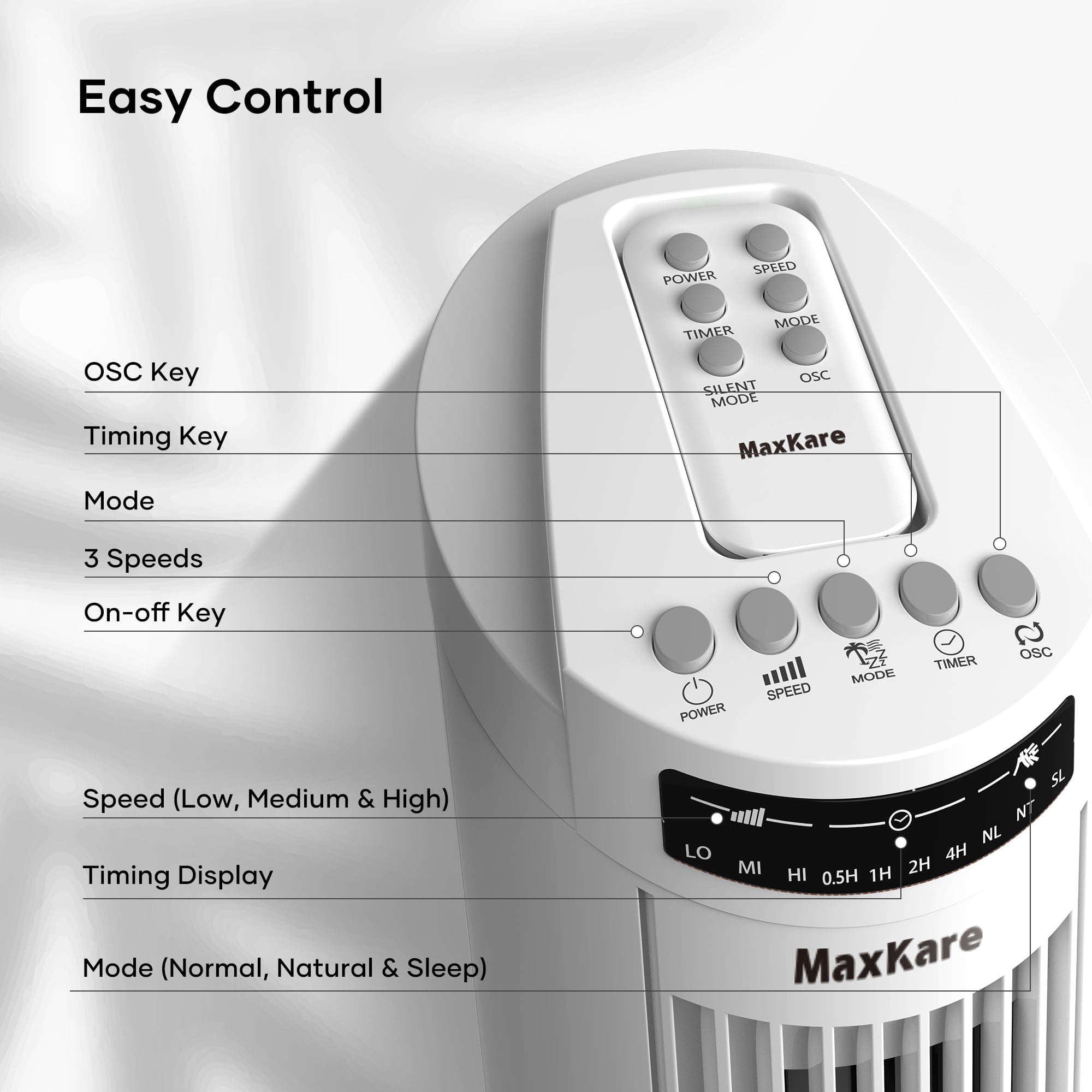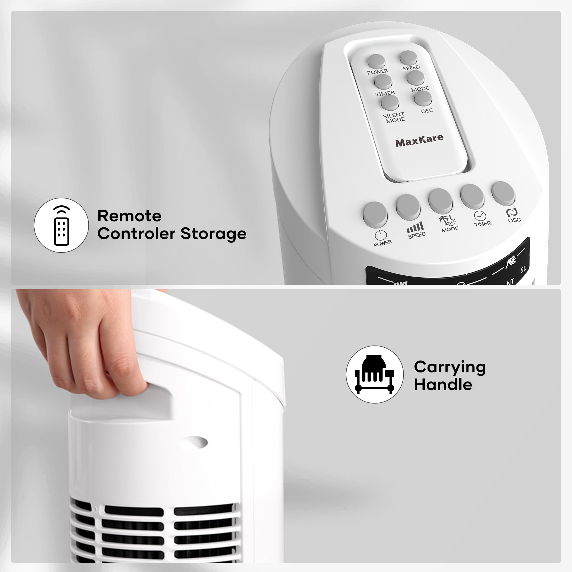 MaxKare 30″ Tower Fan 120° Oscillating Fan 60dB Quiet Cooling Fan with Remote Control 3 Speeds 3 Wind Modes Timer - White
