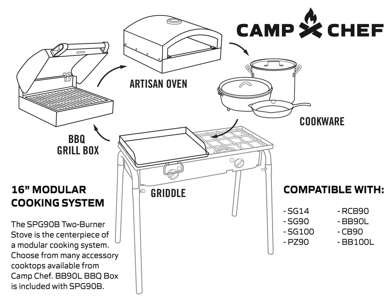 Camp Chef Big Gas Grill 16 Outdoor Stove with BBQ Box Accessory. SPG90B. 90.000 BTU Propane
