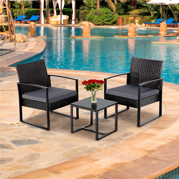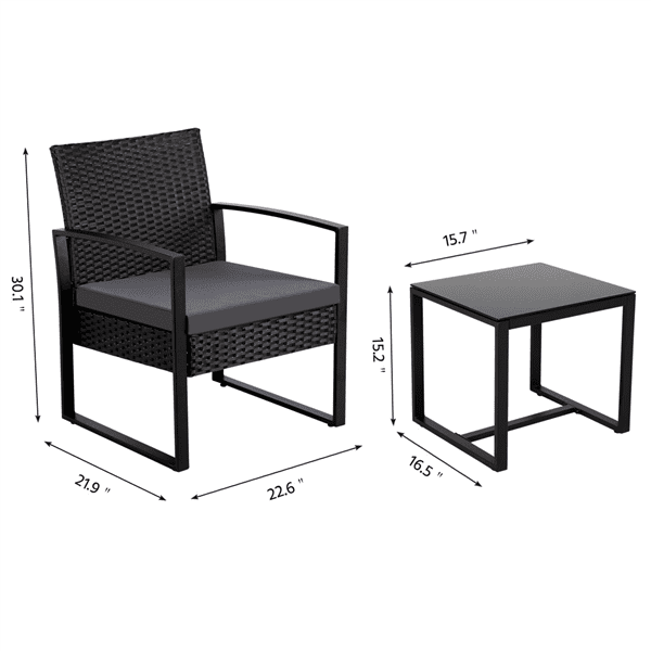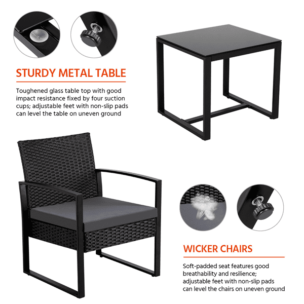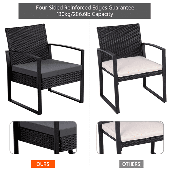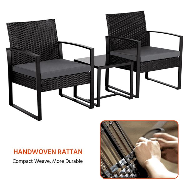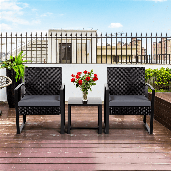 SmileMart 3-Piece Bistro Set with Rattan Chairs for Outdoor Patio and Balcony. Black Cushions