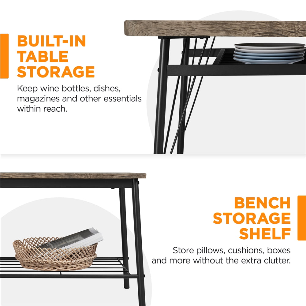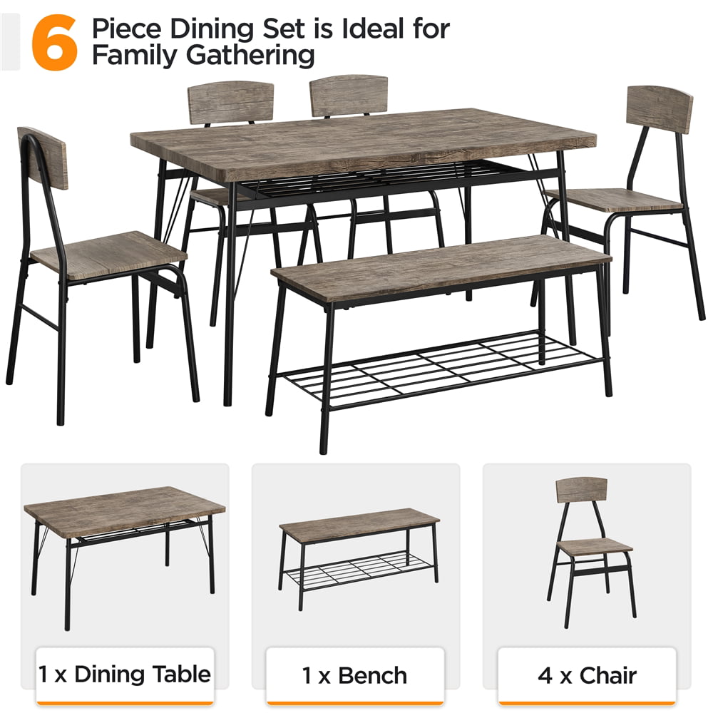 Easyfashion Dining Table Set with 4 Chairs and 1 Bench. Drift Brown