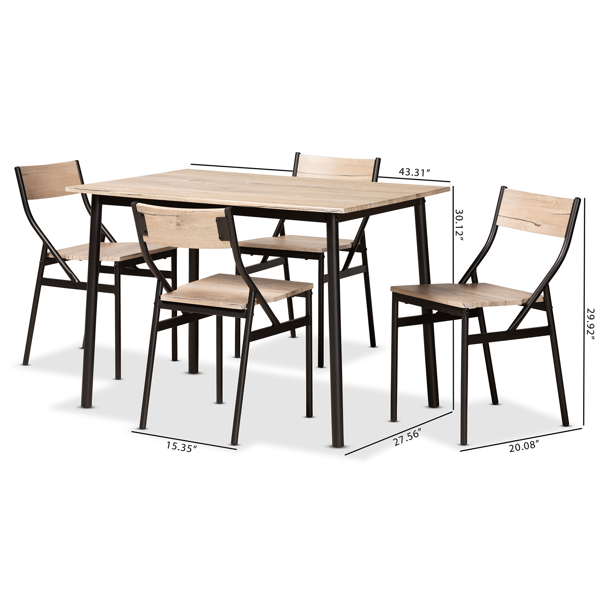 Baxton Studio Carmen Modern and Contemporary Oak Brown Finished Wood and Dark Brown Metal 5-Piece Dining Set