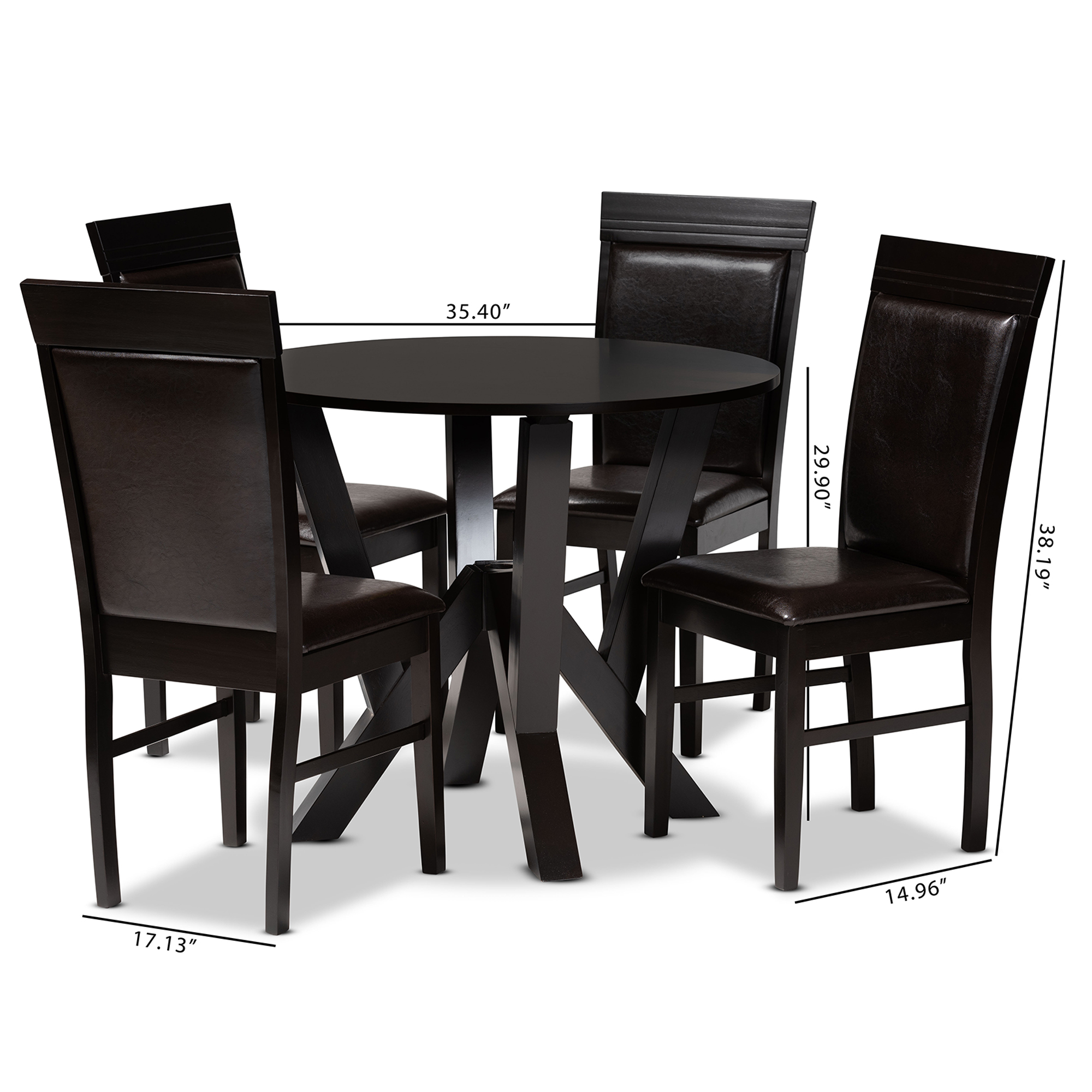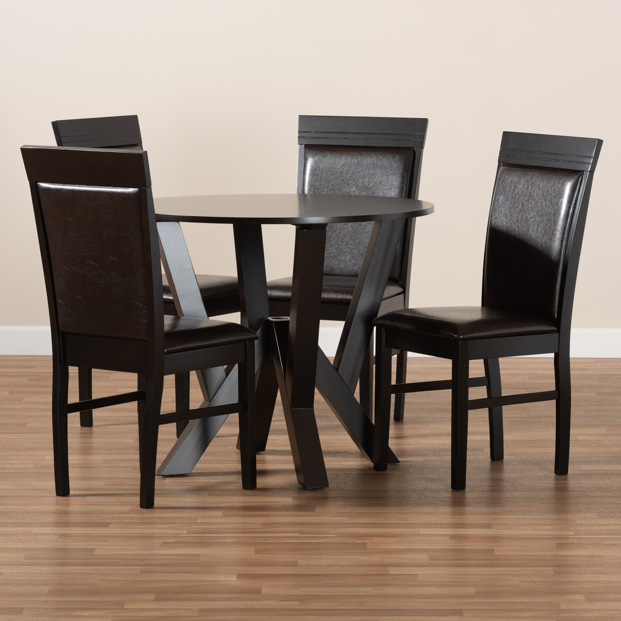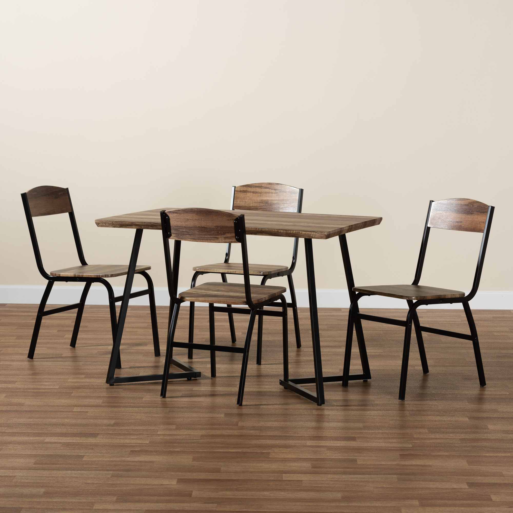 Baxton Studio Roana Modern and Contemporary Walnut Brown Finished Wood and Black Metal 5-Piece Dining Set