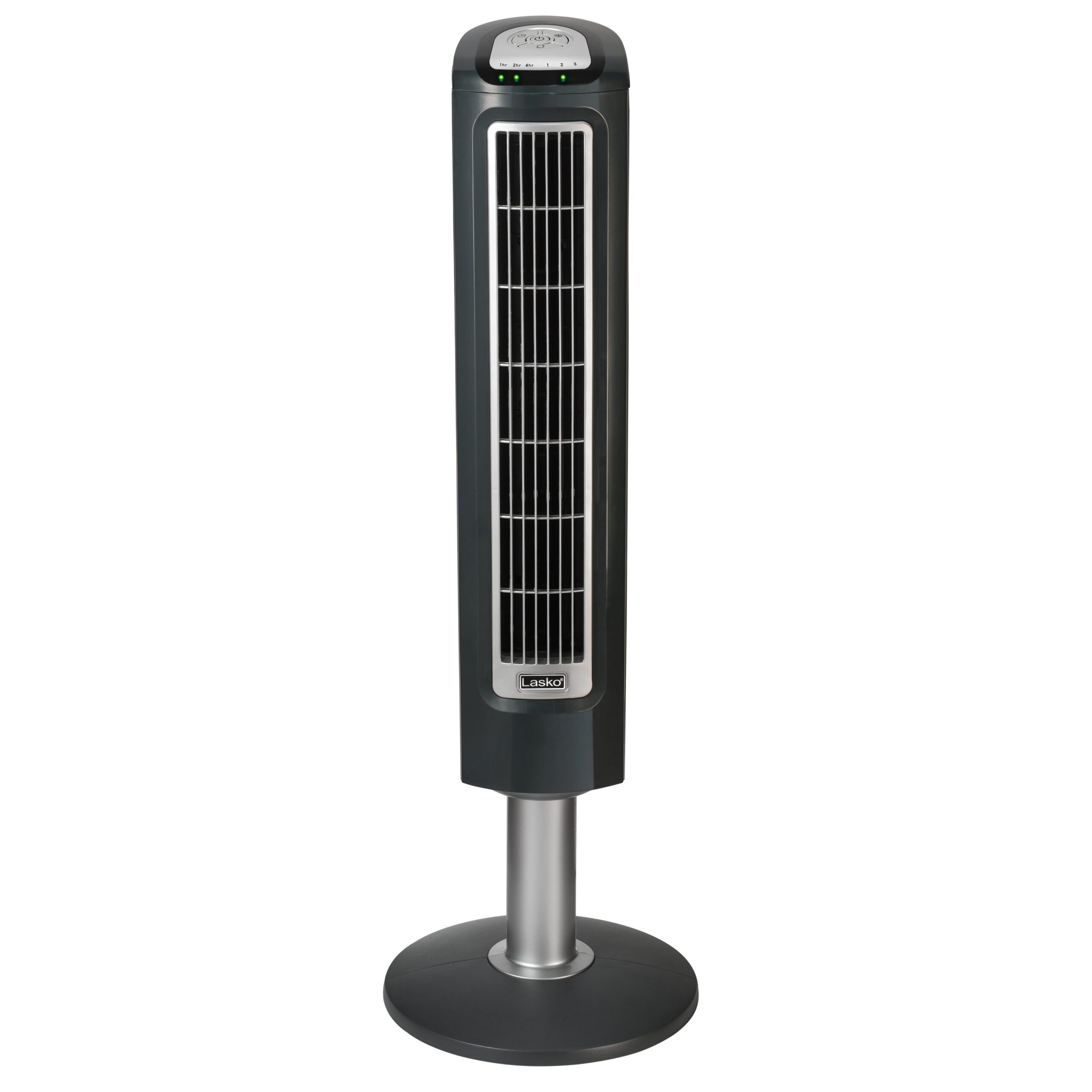 Lasko 38″ Wind Tower 3-Speed Oscillating Tower Fan with Remote and Timer. 2519. Gray