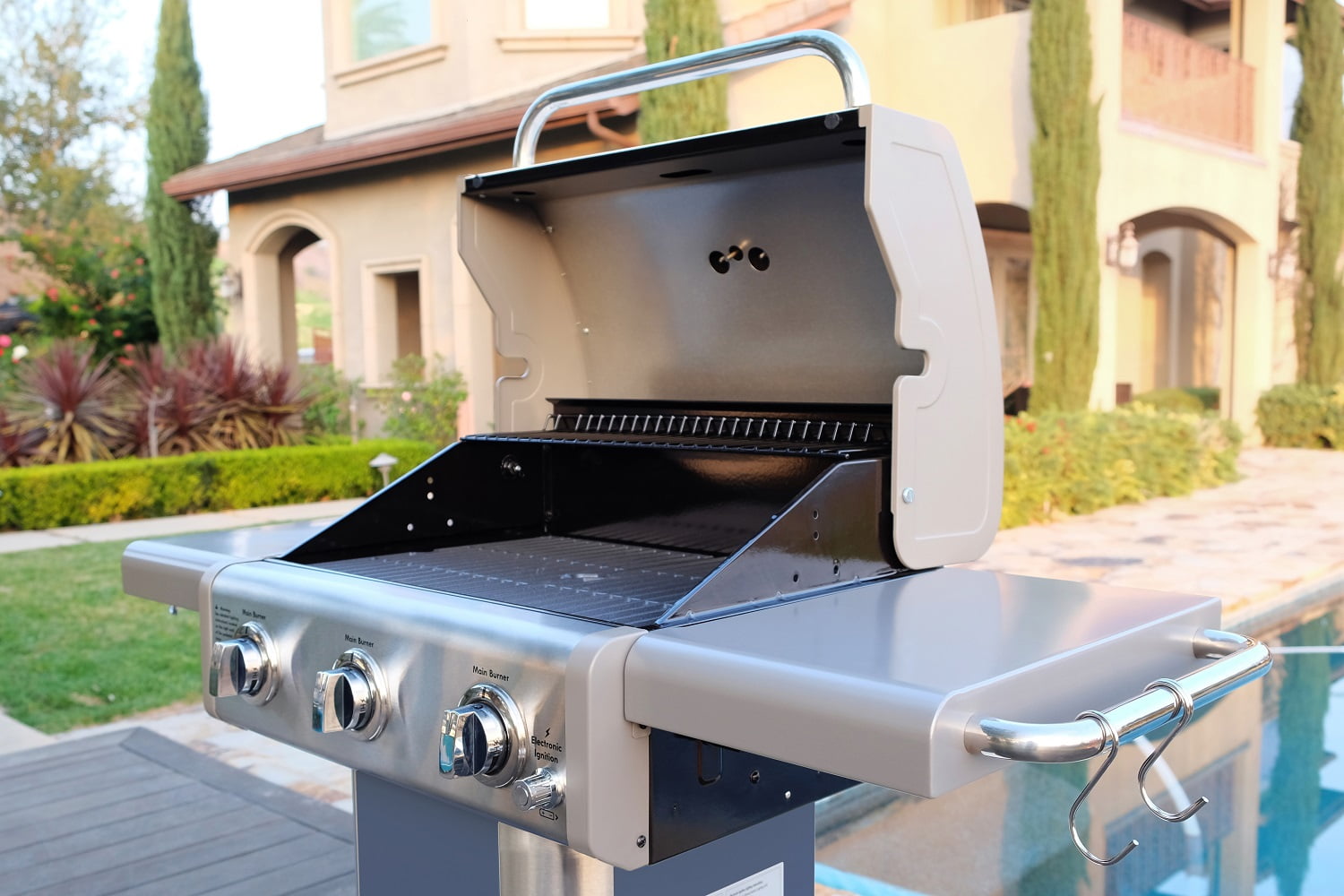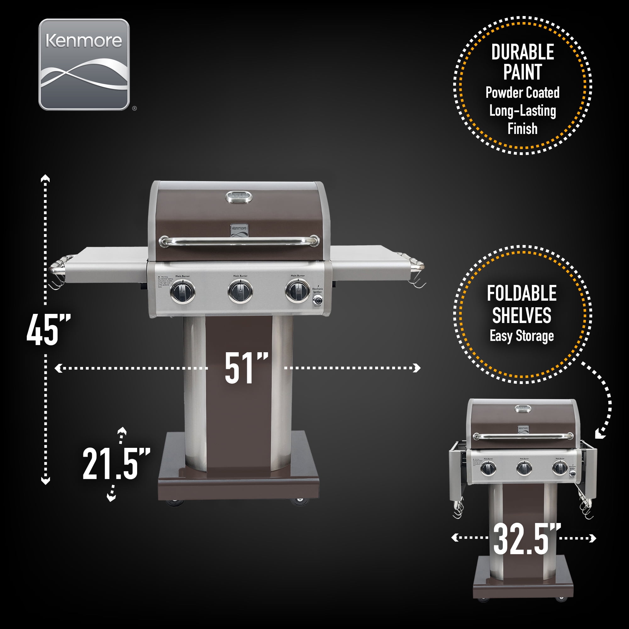 Kenmore 3-Burner Outdoor BBQ Propane Gas Grill with Foldable Sides. Mocha Brown