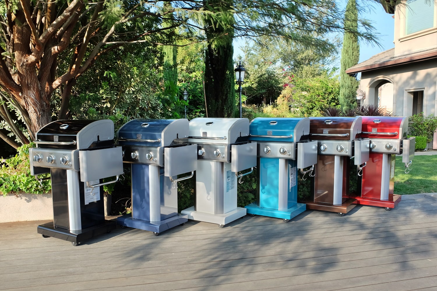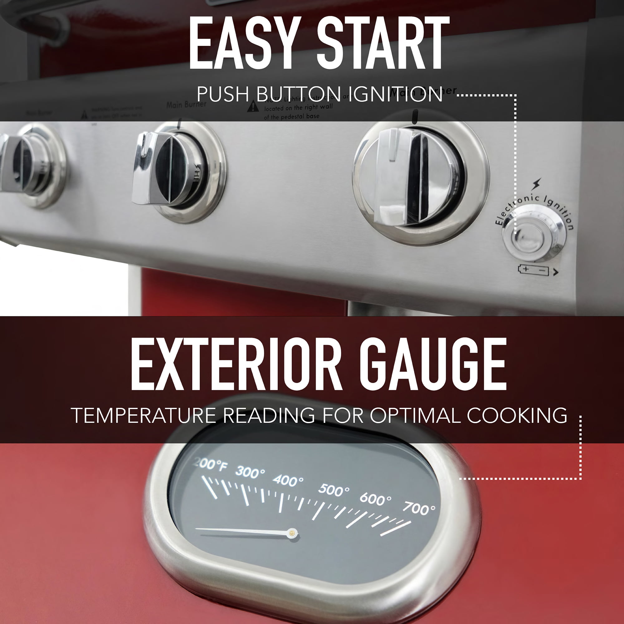 Kenmore 3-Burner Outdoor BBQ Propane Gas Grill with Foldable Sides. Red