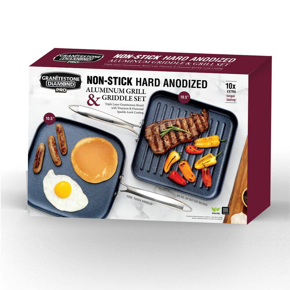 Granite Stone Diamond Professional 2-Piece 10.5 in. Nonstick Diamond Infused Grill and Griddle Pans Set