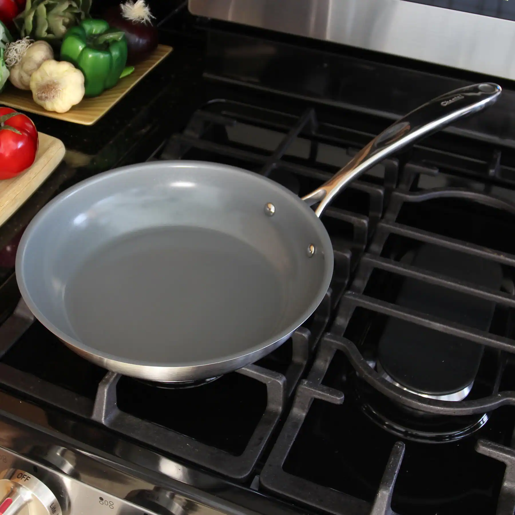 Chantal Induction 21 Steel 10 in. Stainless Steel Ceramic Nonstick Frying Pan In Brushed Stainless Steel