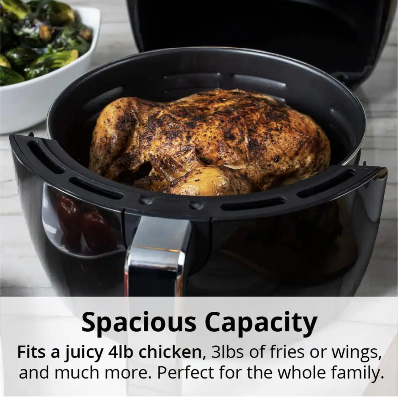 Aria 5Qt Teflon-Free Premium Ceramic Air Fryer with 2-Tier Stainless Steel Rack. Baking Pan. Skewers. Recipe Book