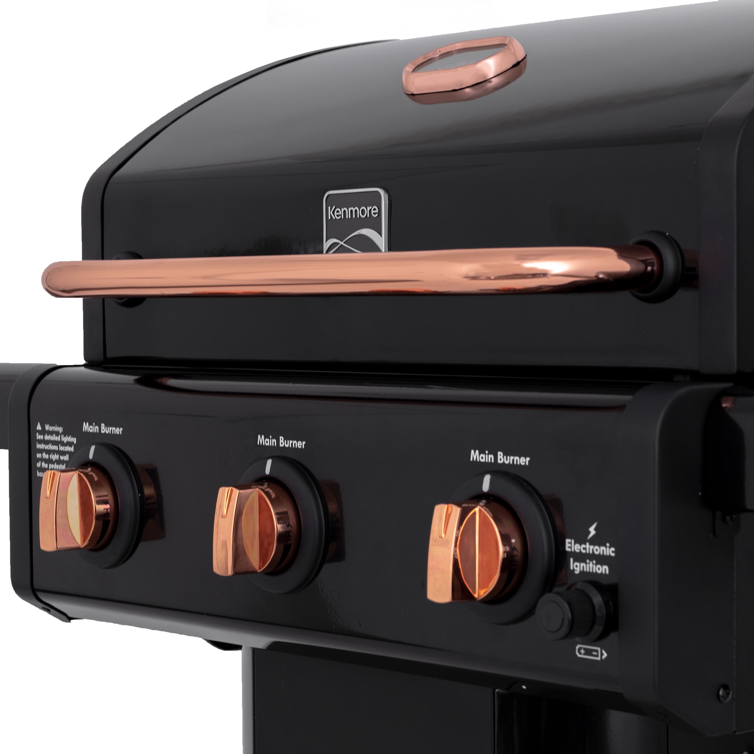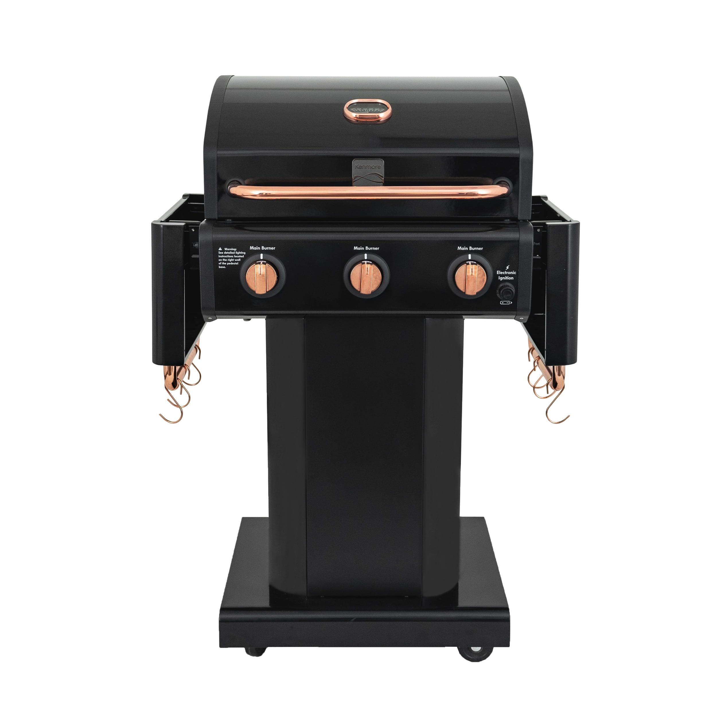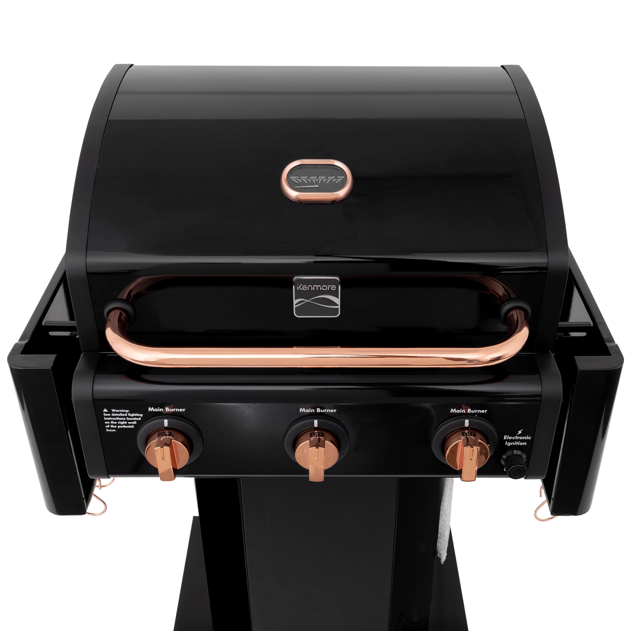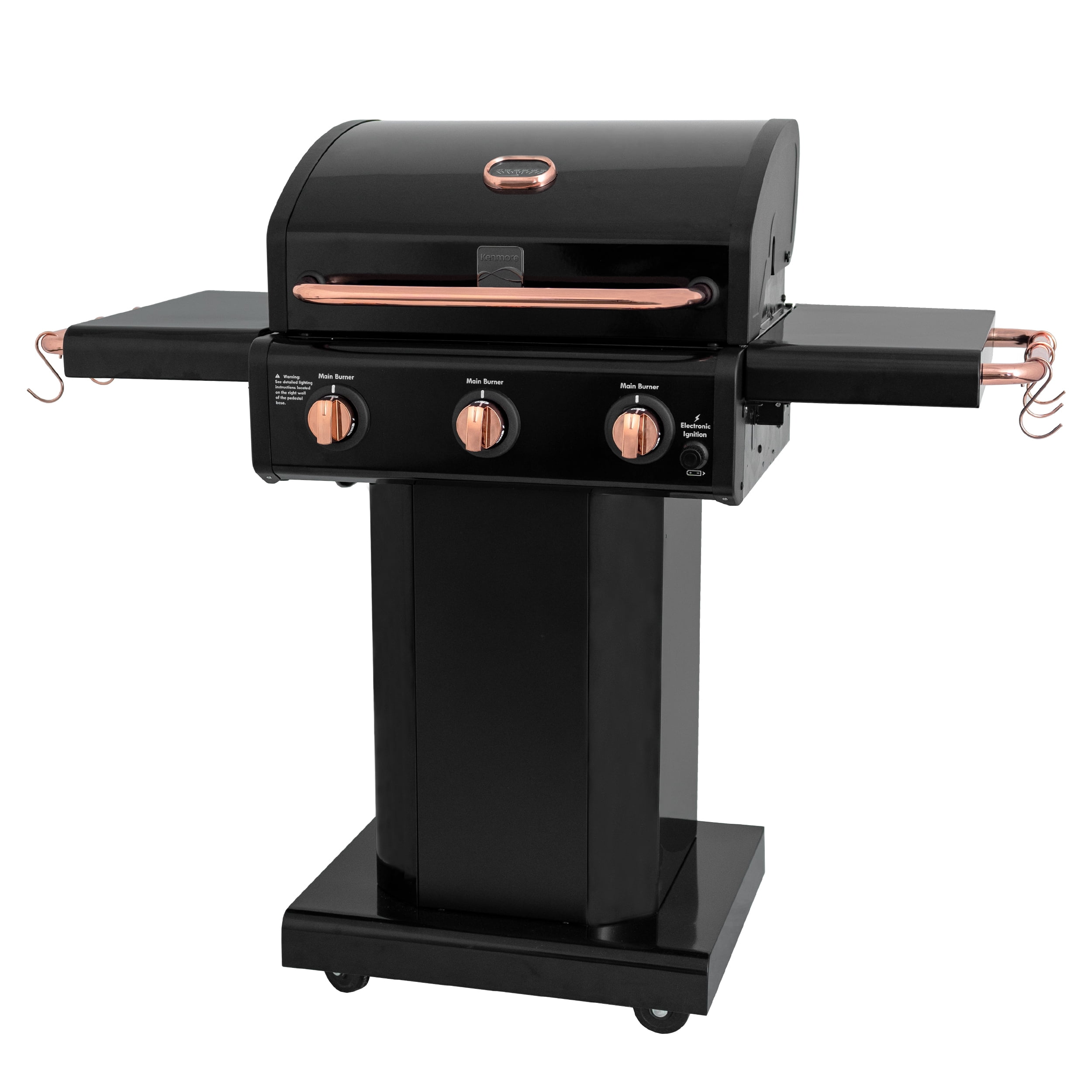 Kenmore 3-Burner Outdoor BBQ Propane Gas Grill with Foldable Sides. Black with Copper Accent