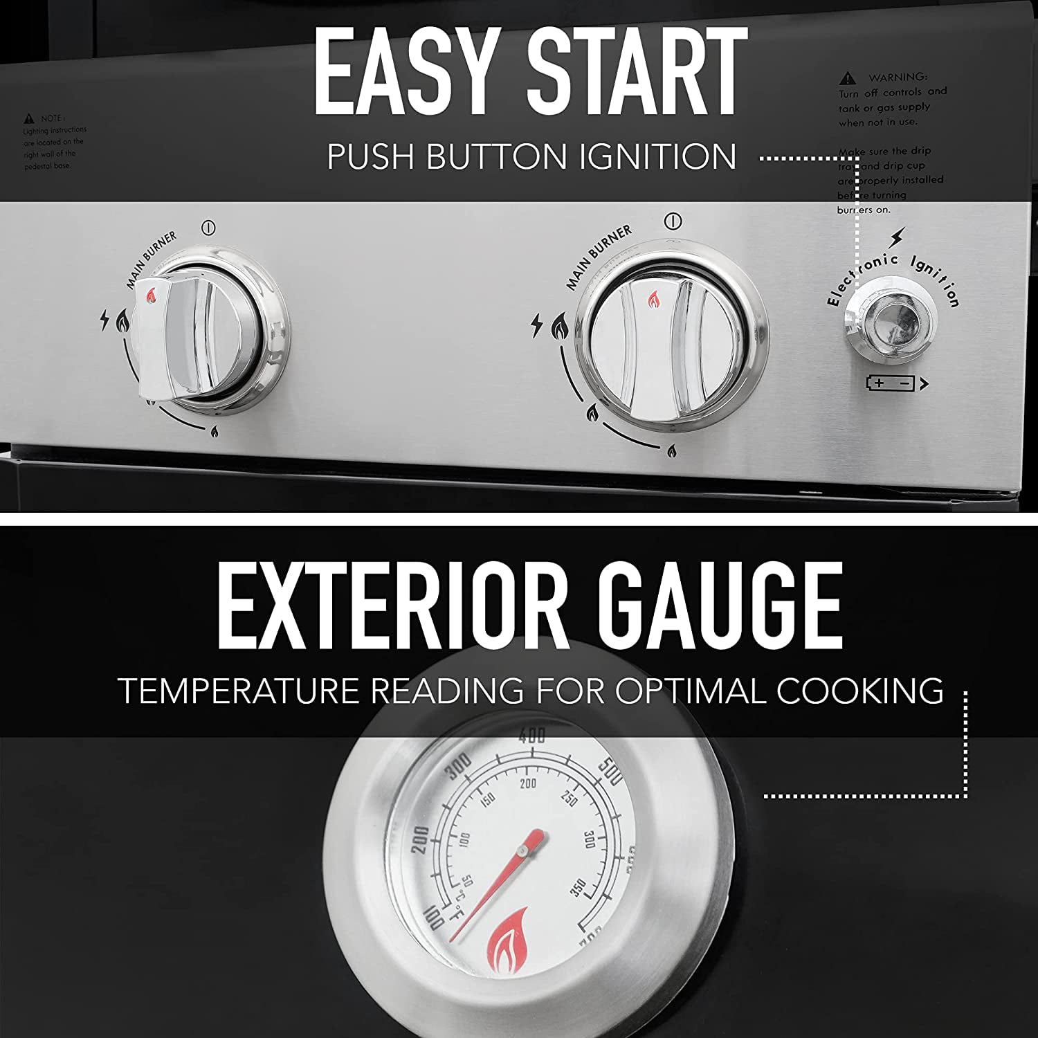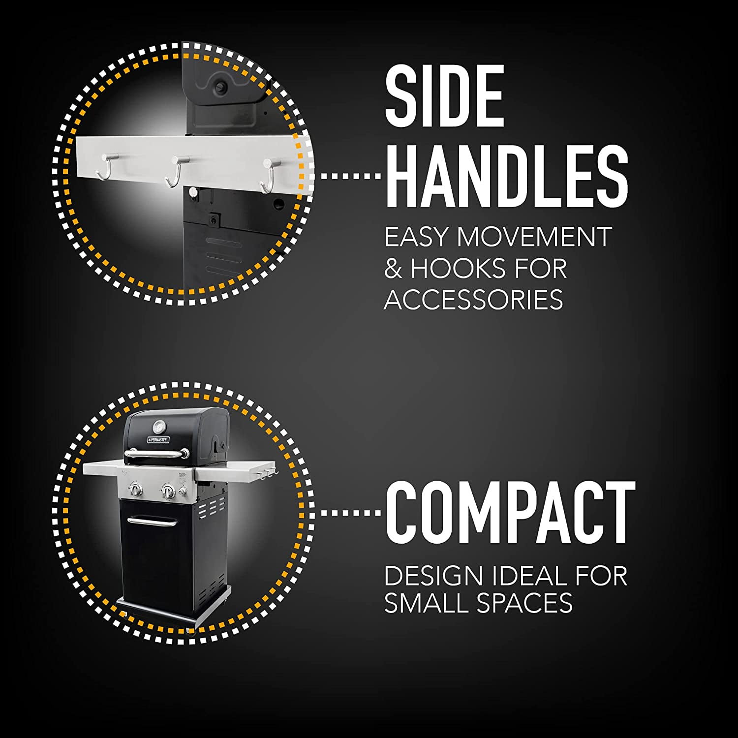 Permasteel 2-Burner Compact Propane Gas Grill with Foldable Sides. Black