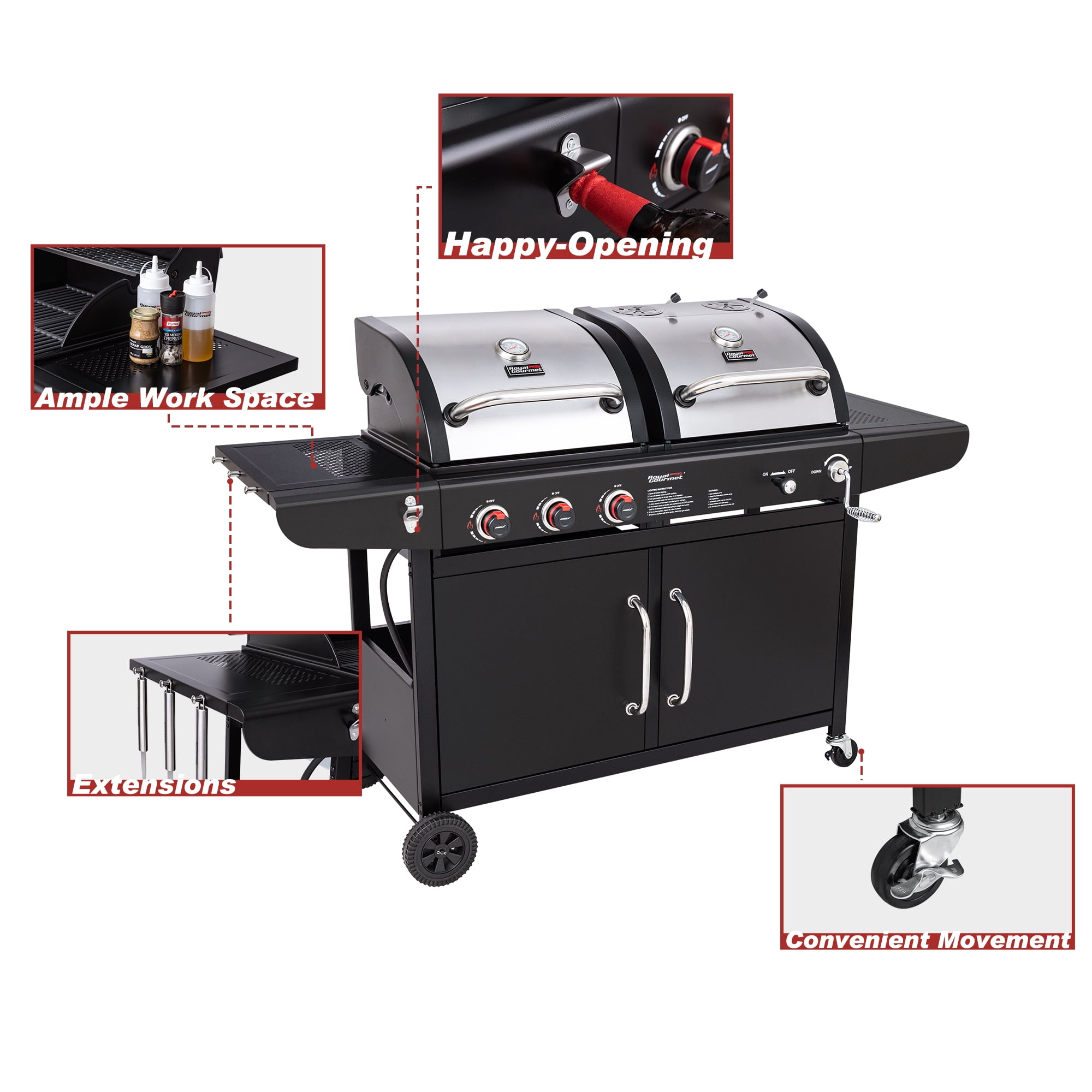 Royal Gourmet ZH3002N 3-Burner 25.500 BTU Gas/Charcoal Combo Grill