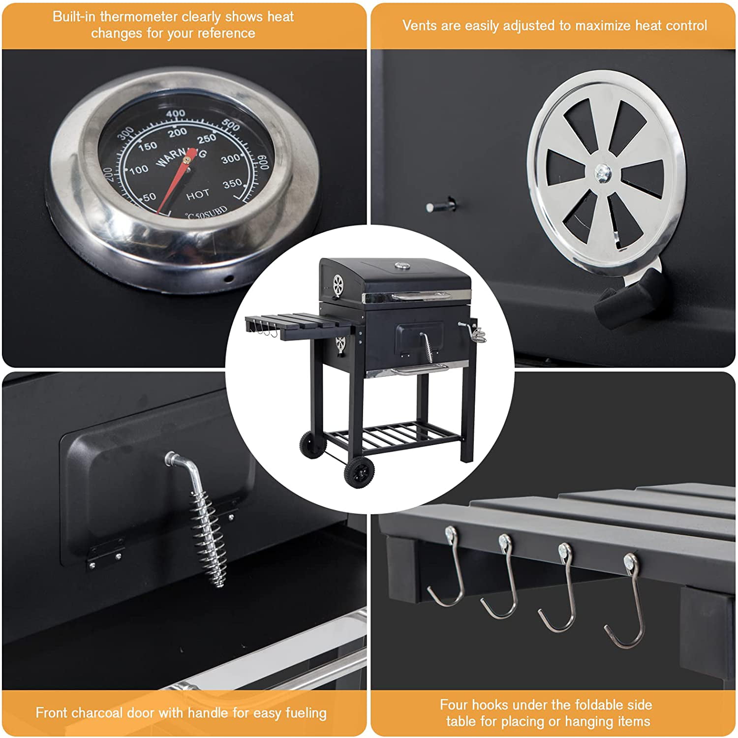Inolait Charcoal Grill Barbecue BBQ Grill Outdoor Patio Backyard Cooking Wheels Portable