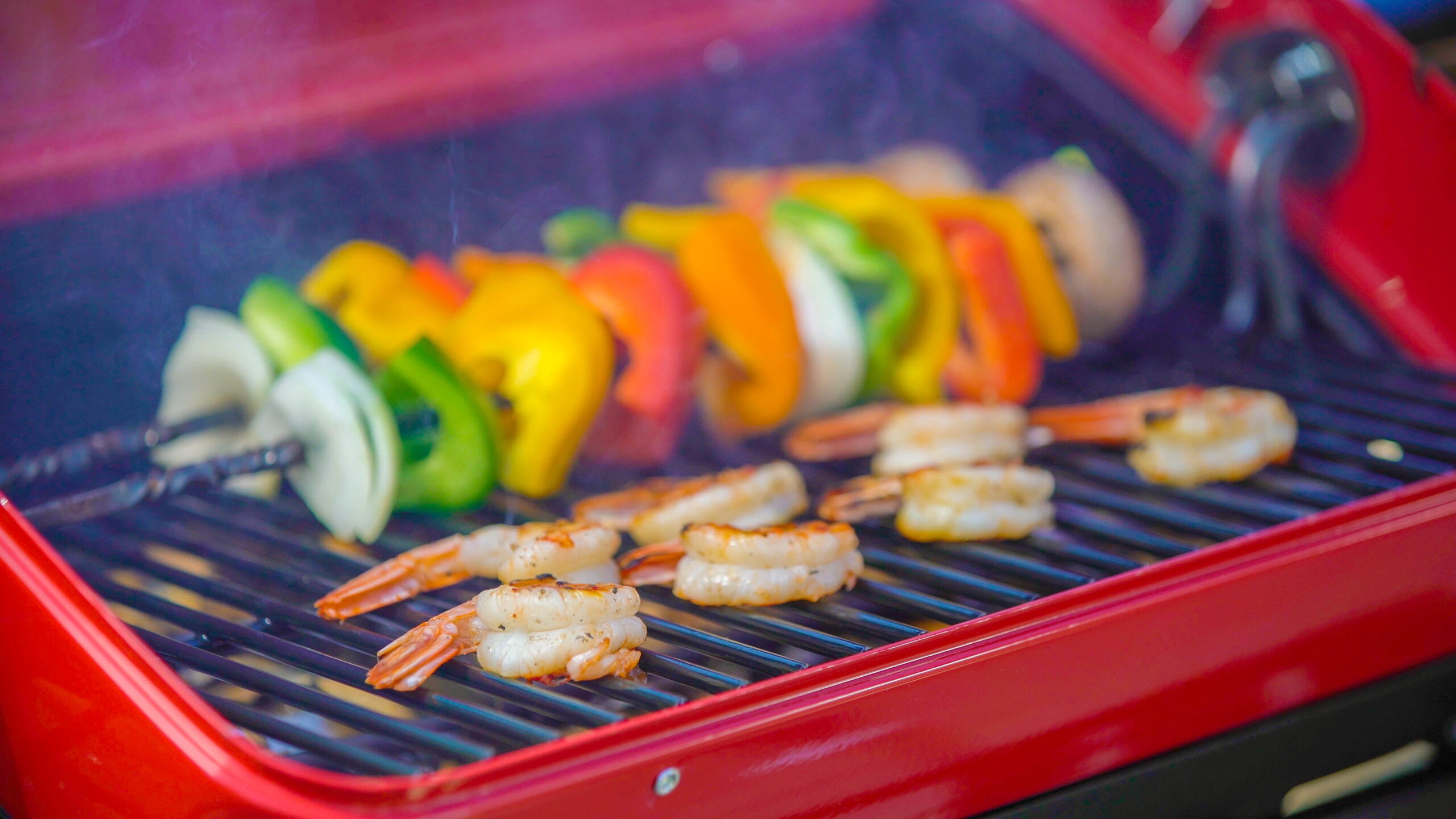 Americana 9325U8.181 Portable Electric Cart Grill with Two Folding Tables. Red