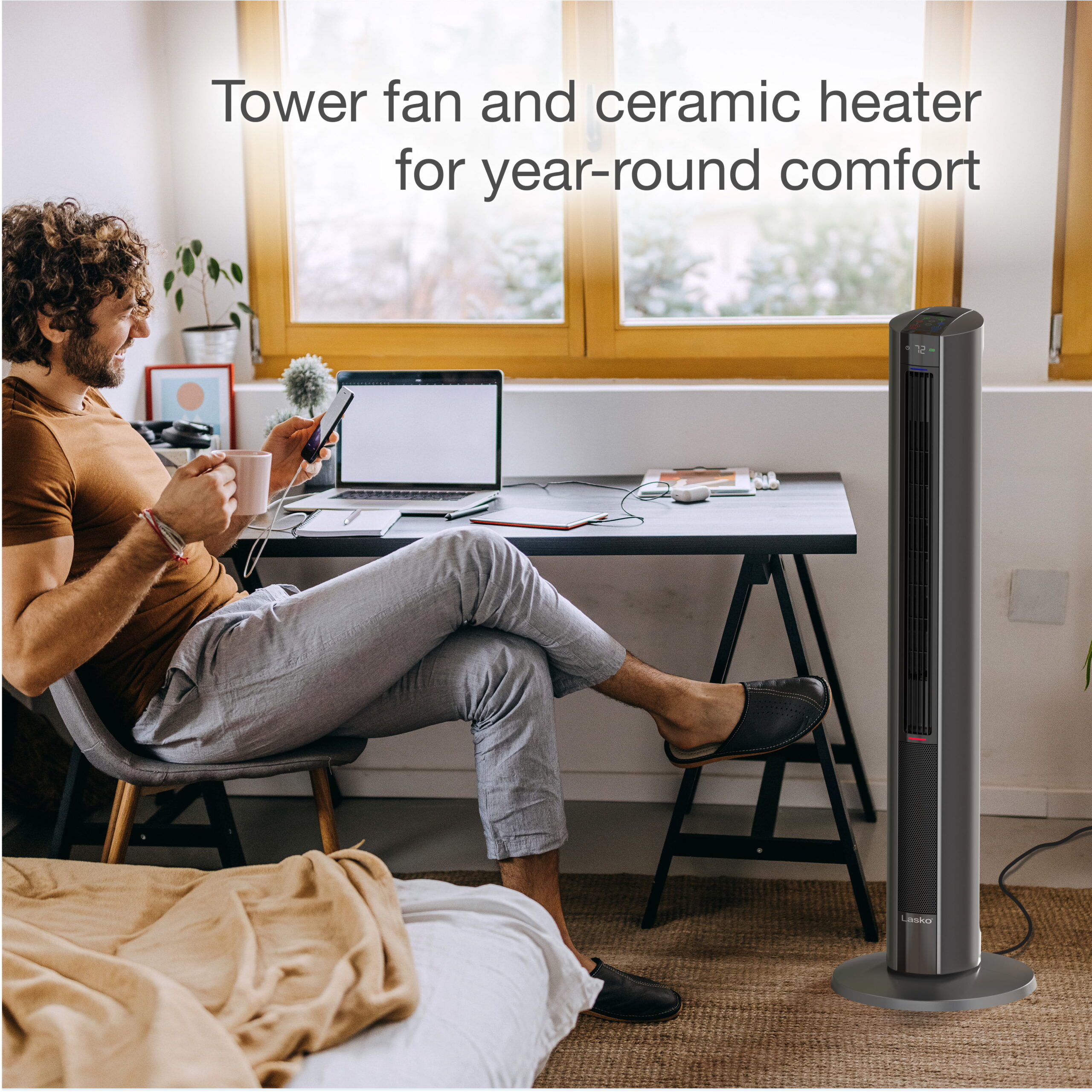 Lasko All Season Comfort Control Tower Fan and Space Heater in One with Remote. FH515. Grey