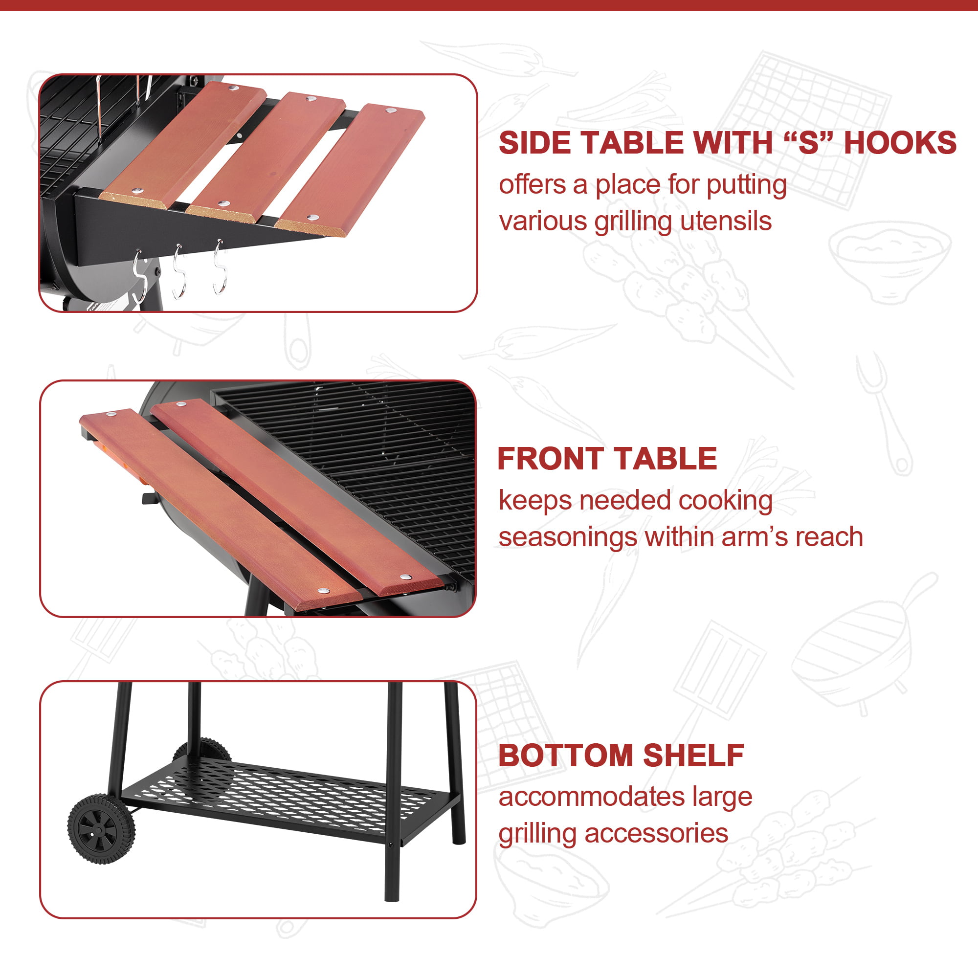 Royal Gourmet CC1830W 30″ Barrel Charcoal Grill with Offset Smoker
