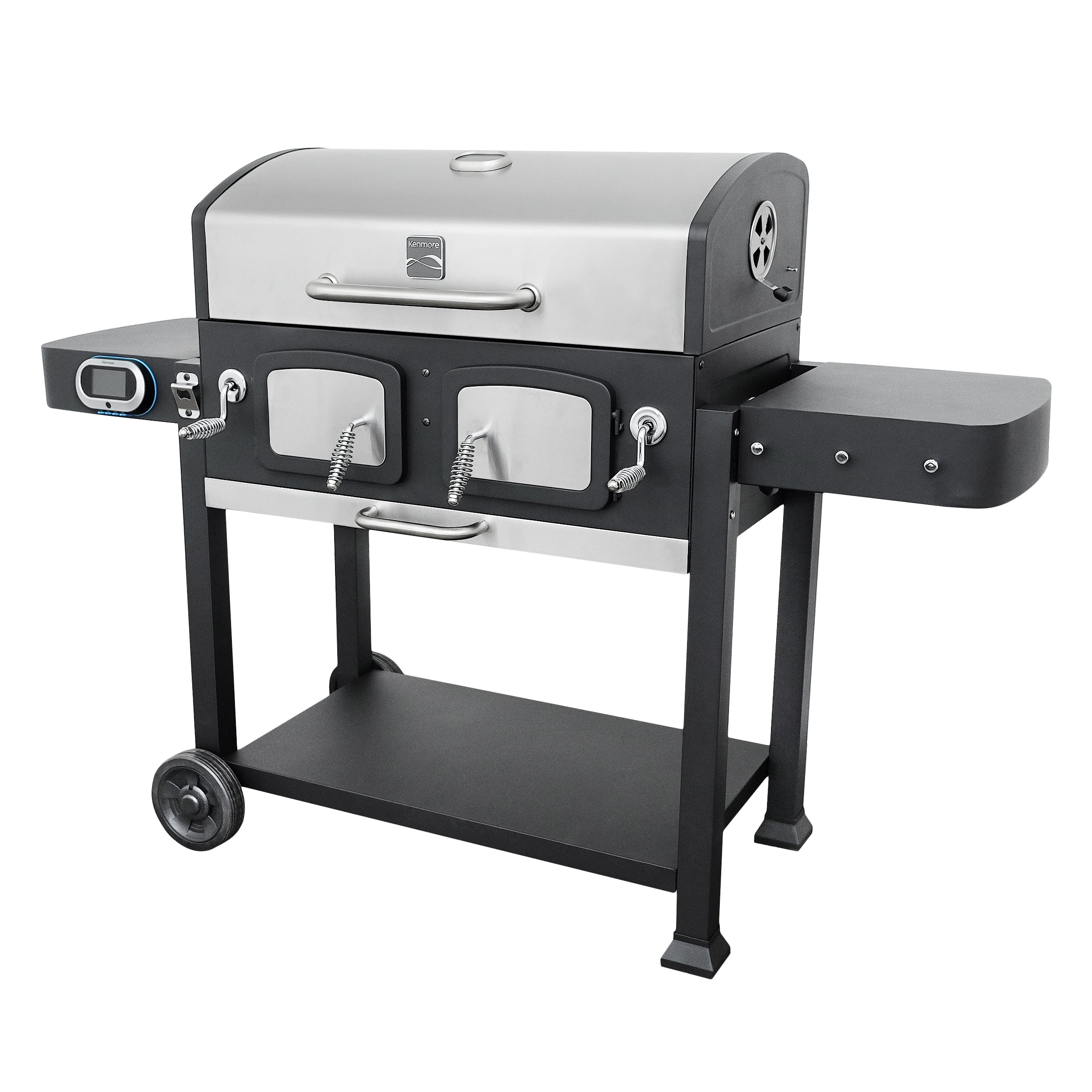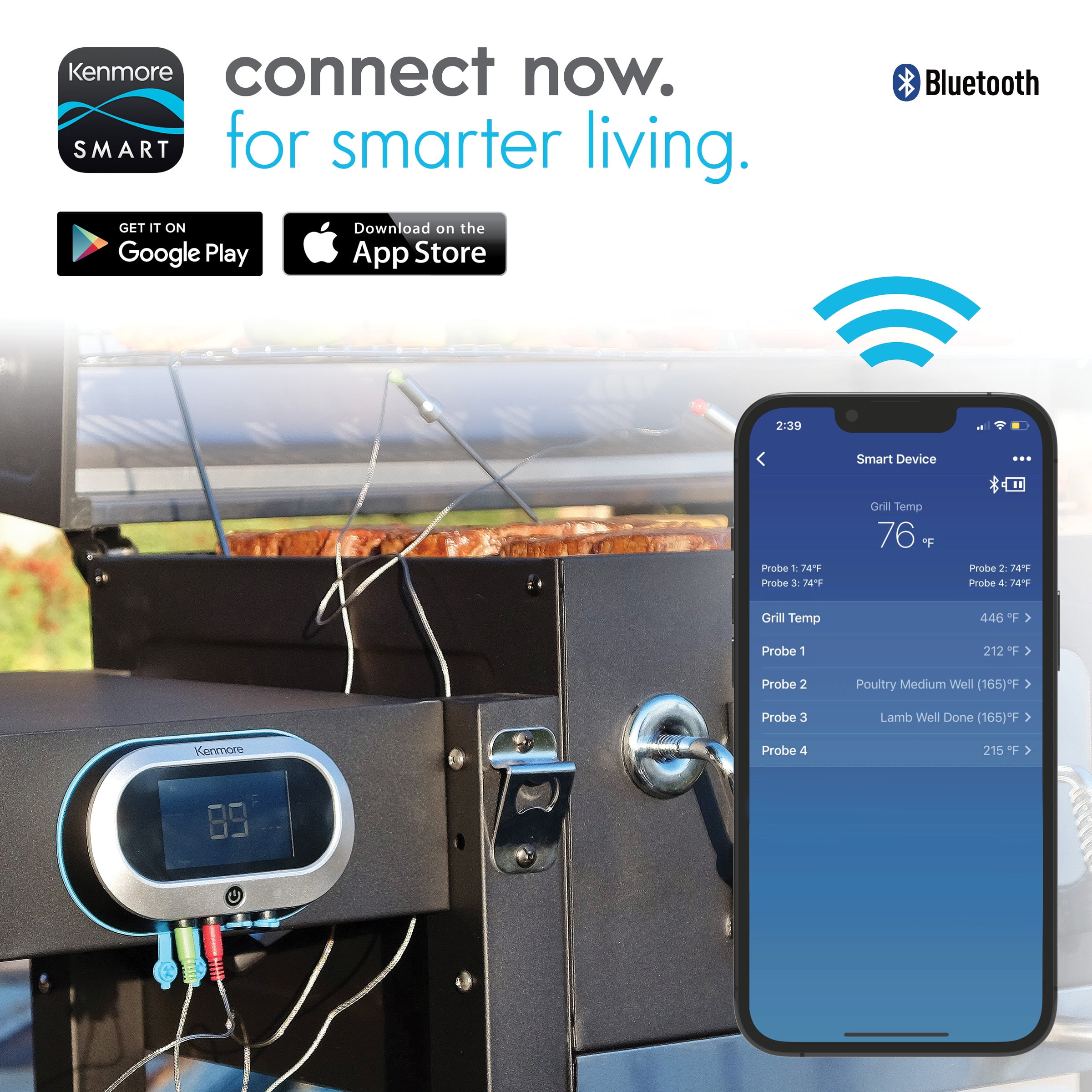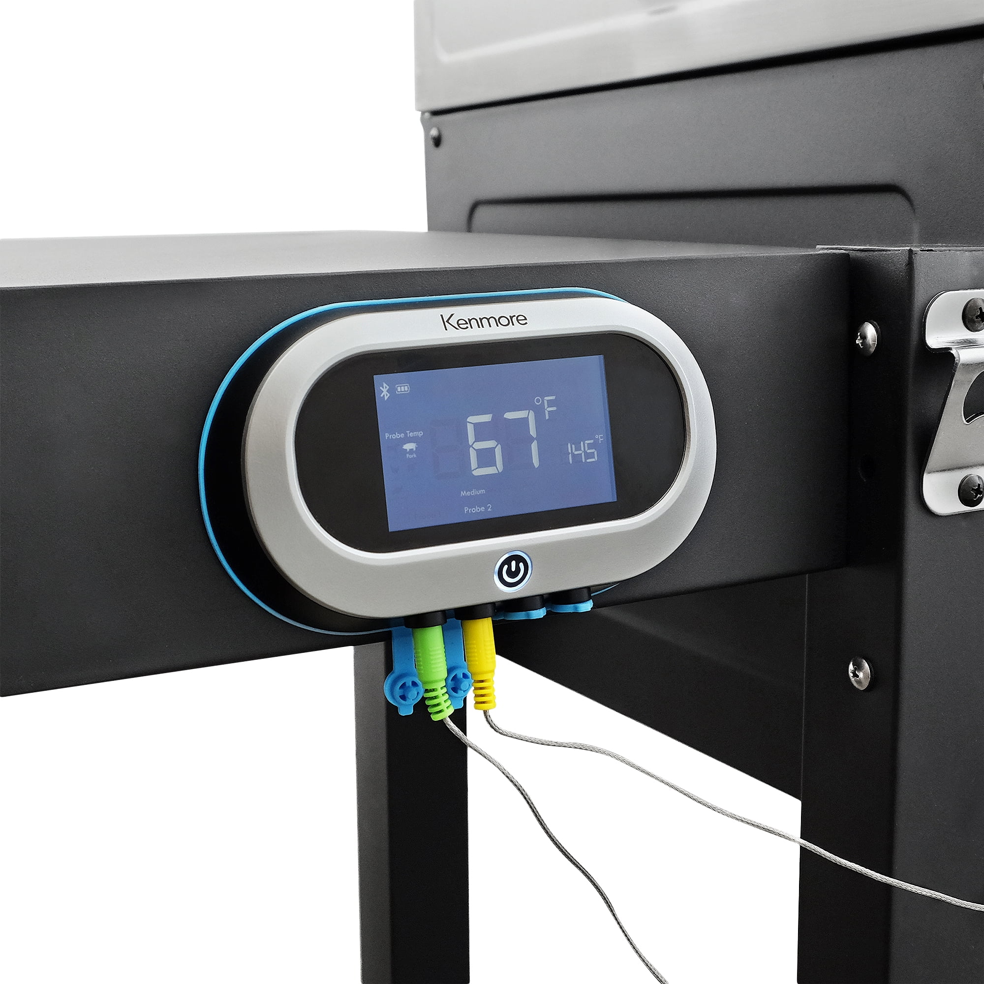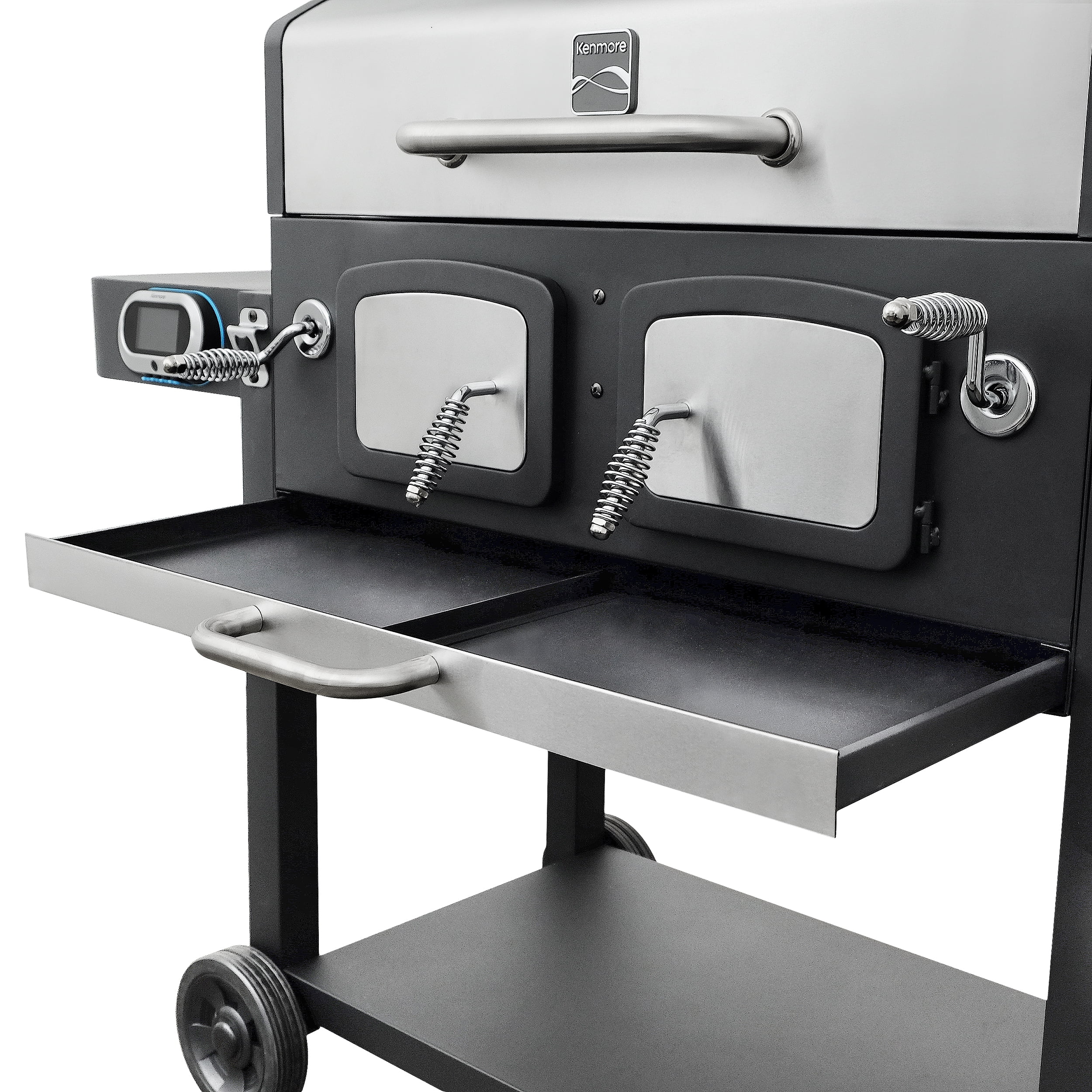 Kenmore 32-inch Smart Charcoal Grill with Bluetooth Meat Thermometer. LCD Display. and Temperature Probes. Stainless Steel/Black