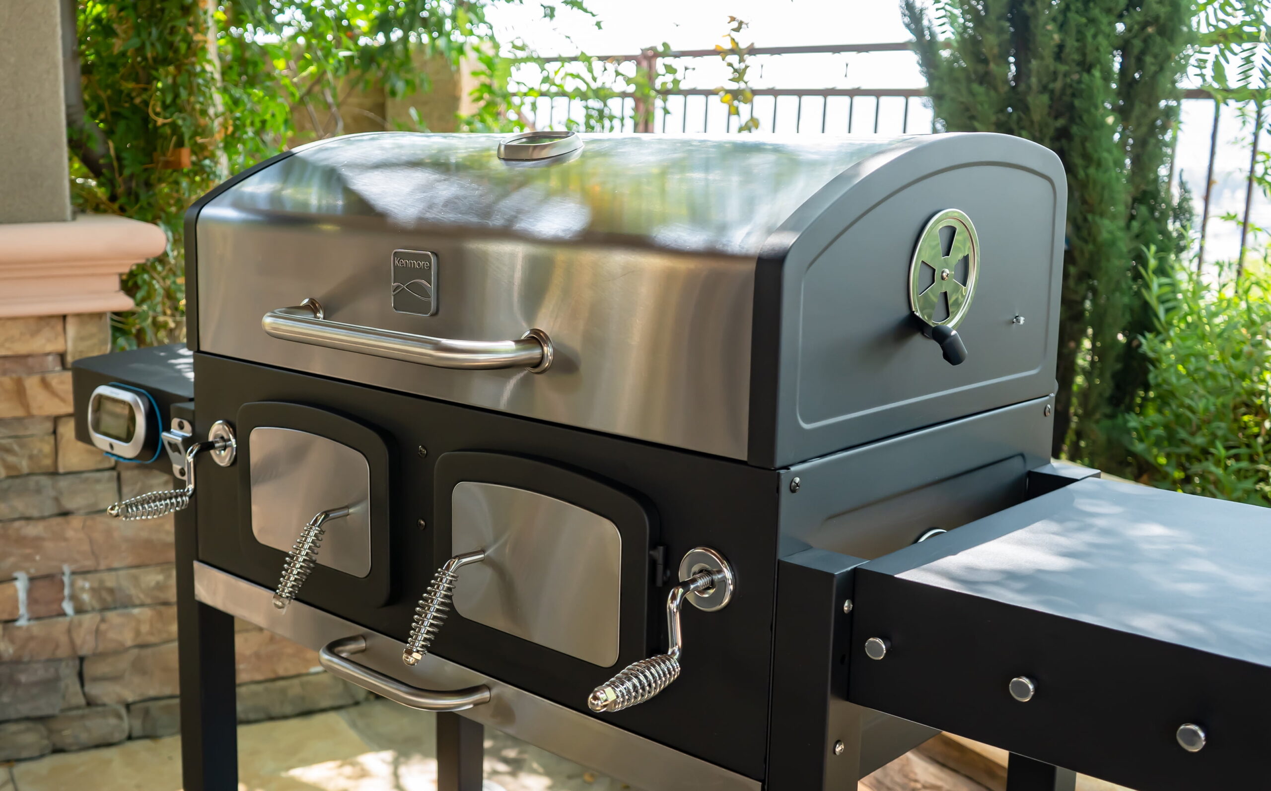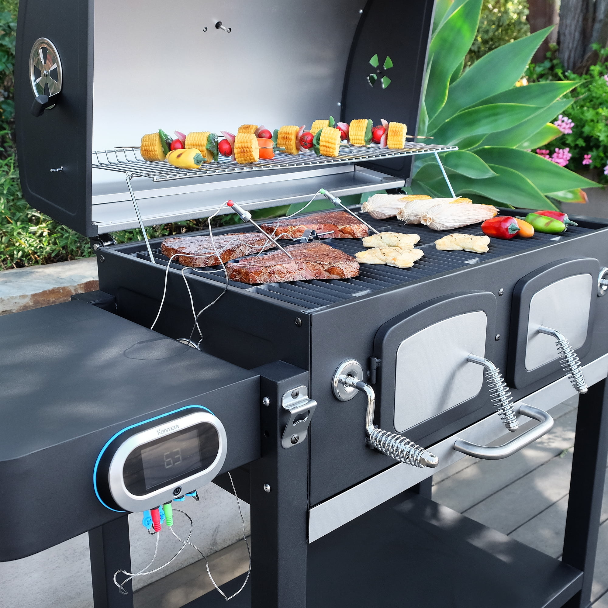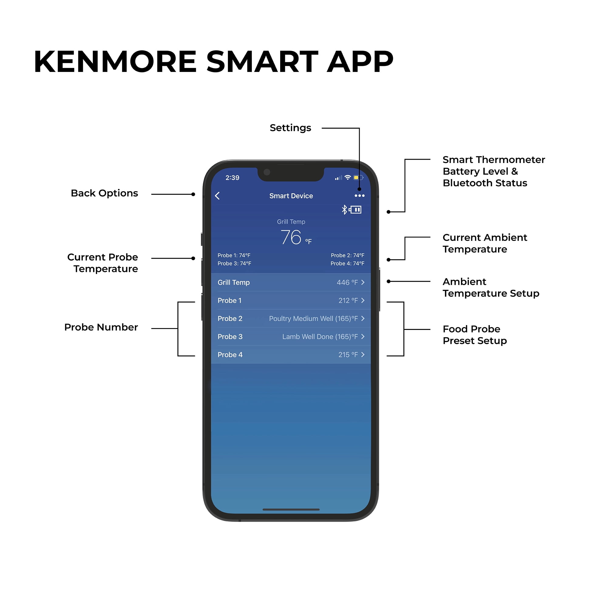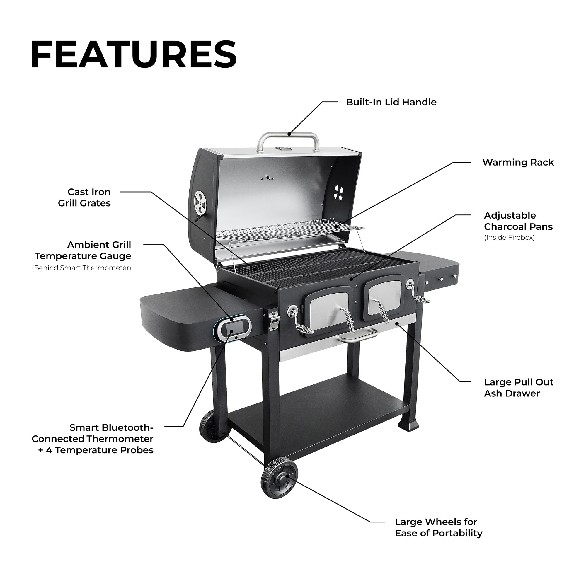 Kenmore 32-inch Smart Charcoal Grill with Bluetooth Meat Thermometer. LCD Display. and Temperature Probes. Stainless Steel/Black