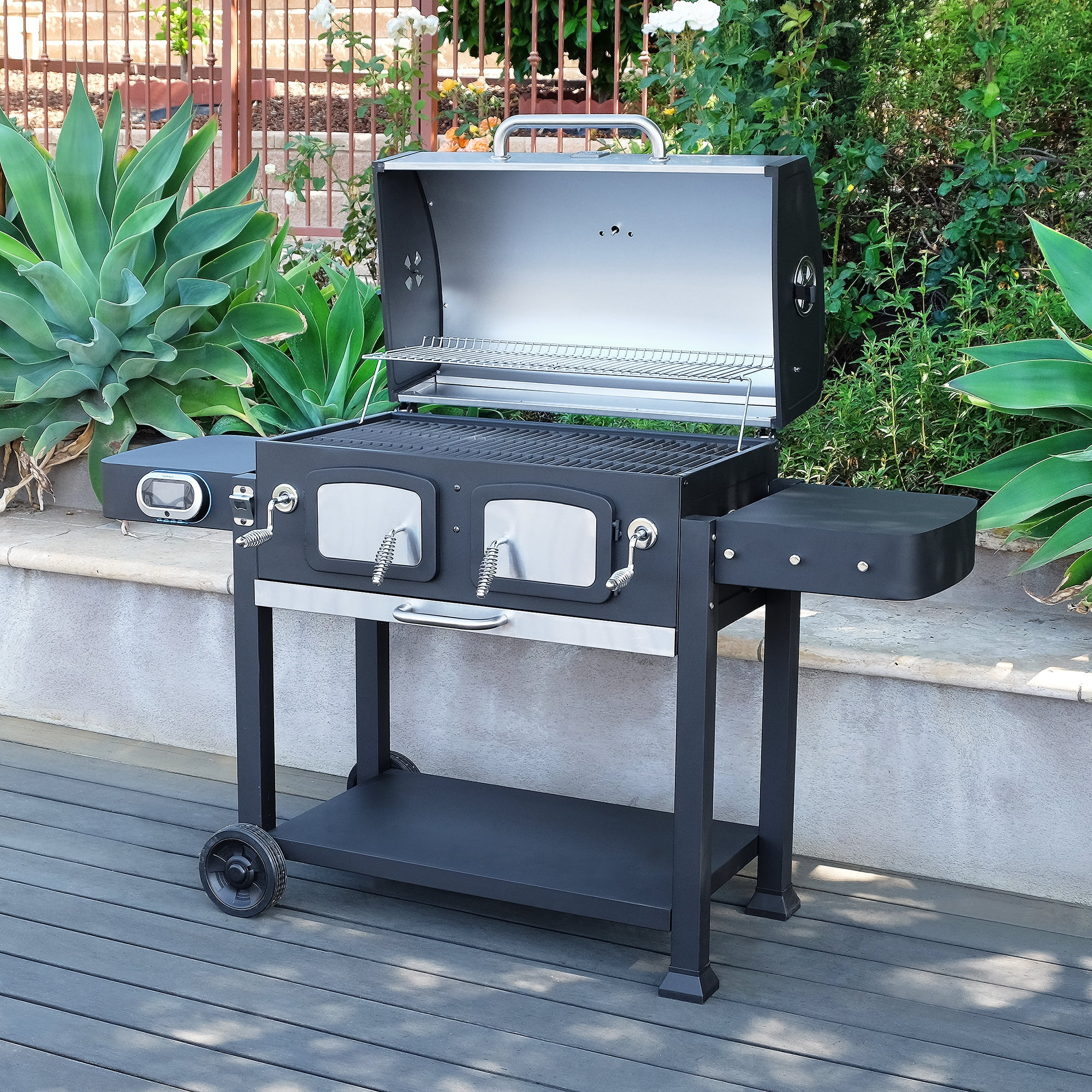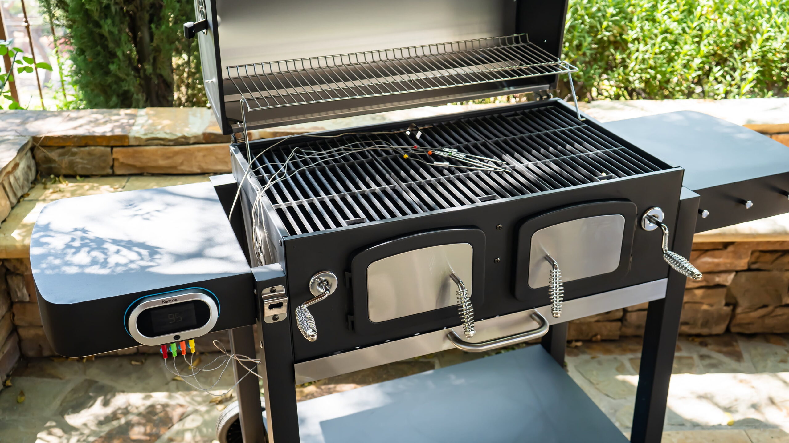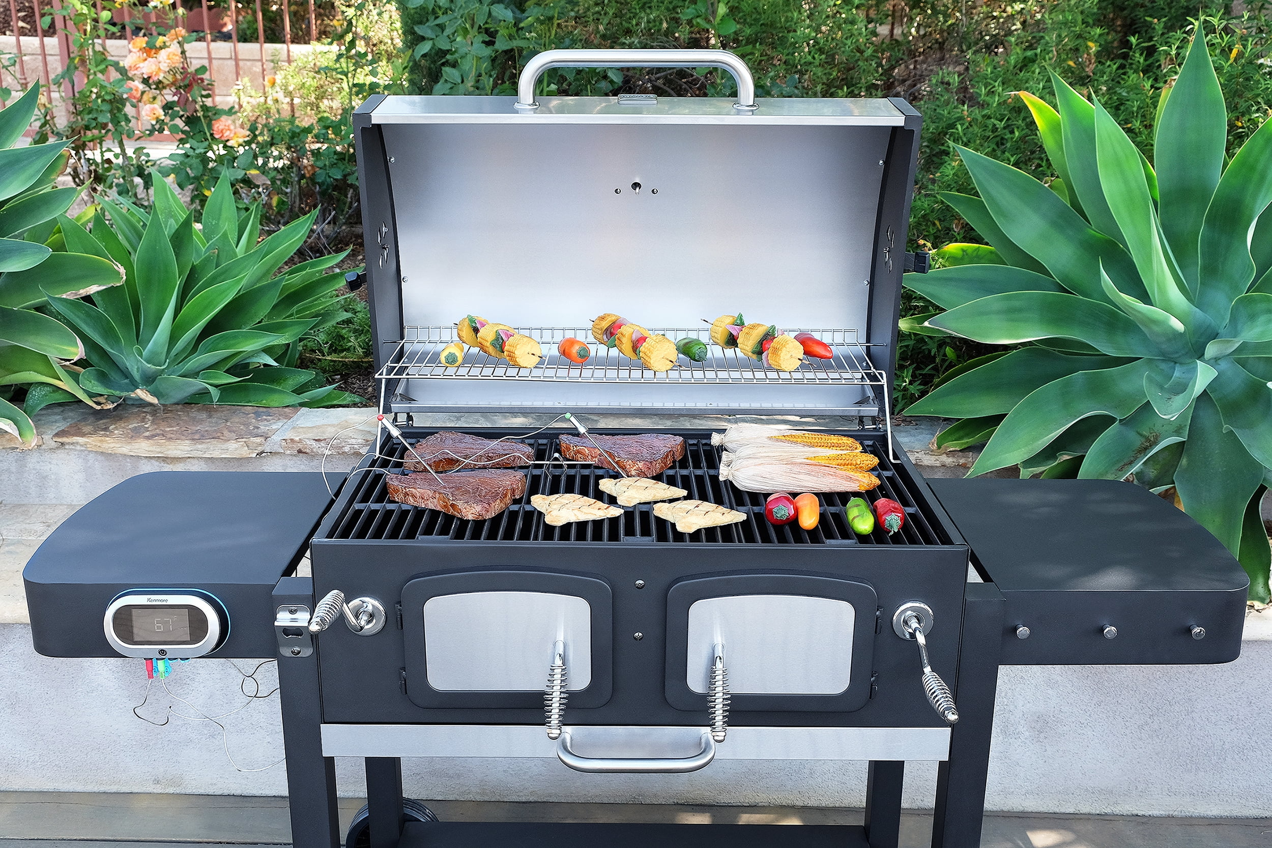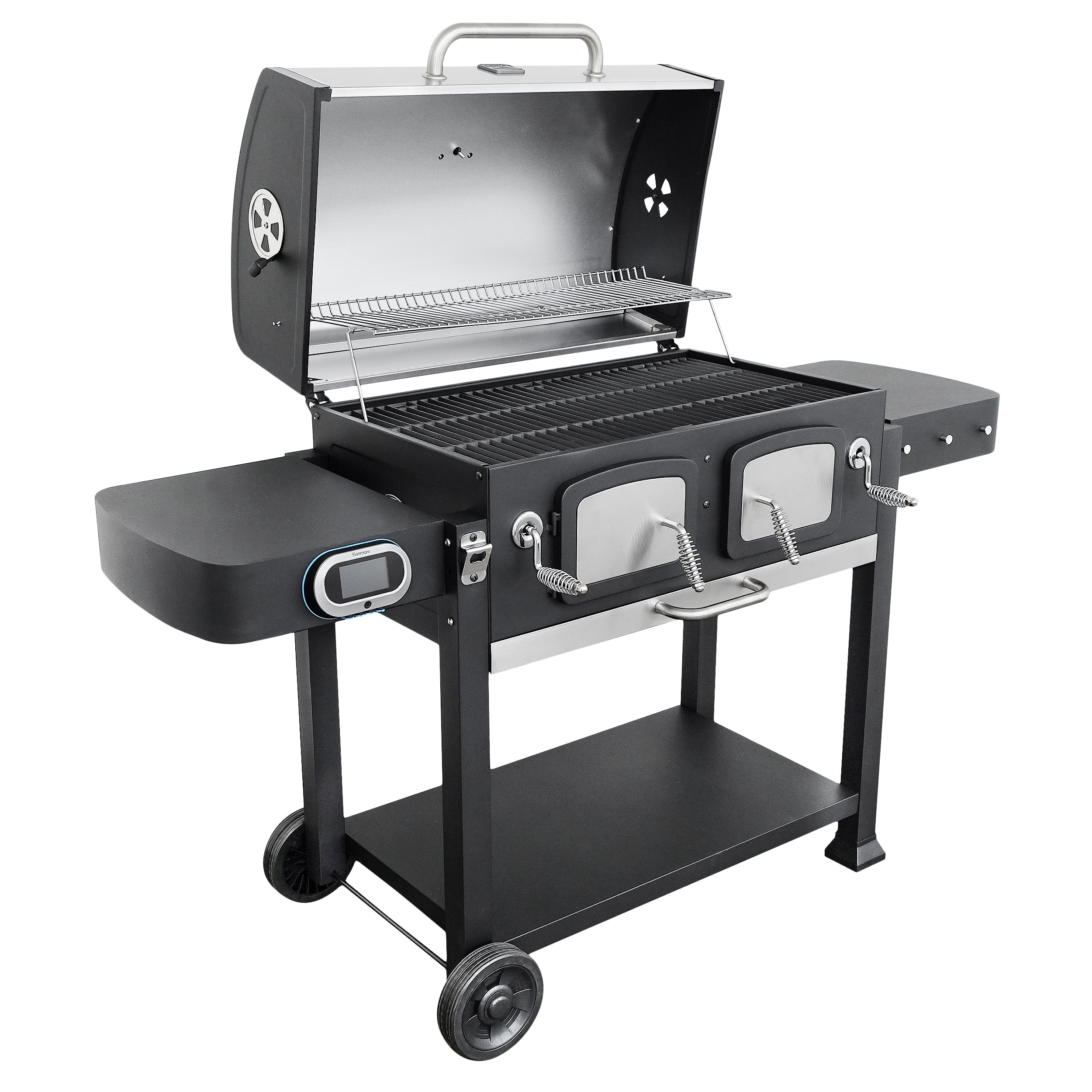 Kenmore 32-inch Smart Charcoal Grill with Bluetooth Meat Thermometer. LCD Display. and Temperature Probes. Stainless Steel/Black
