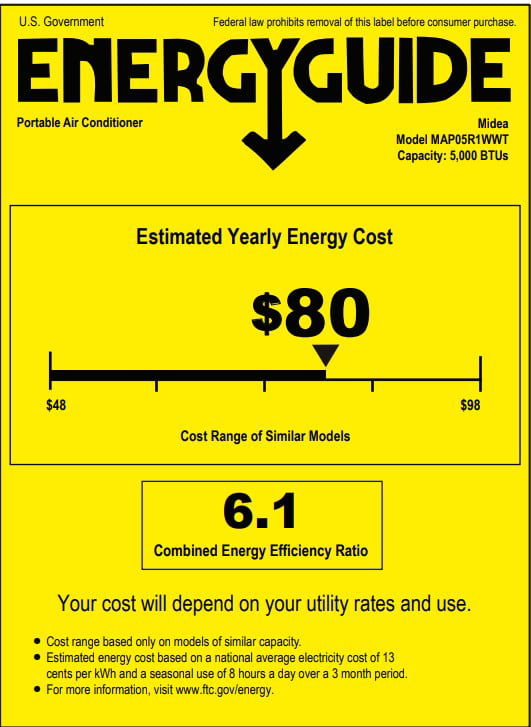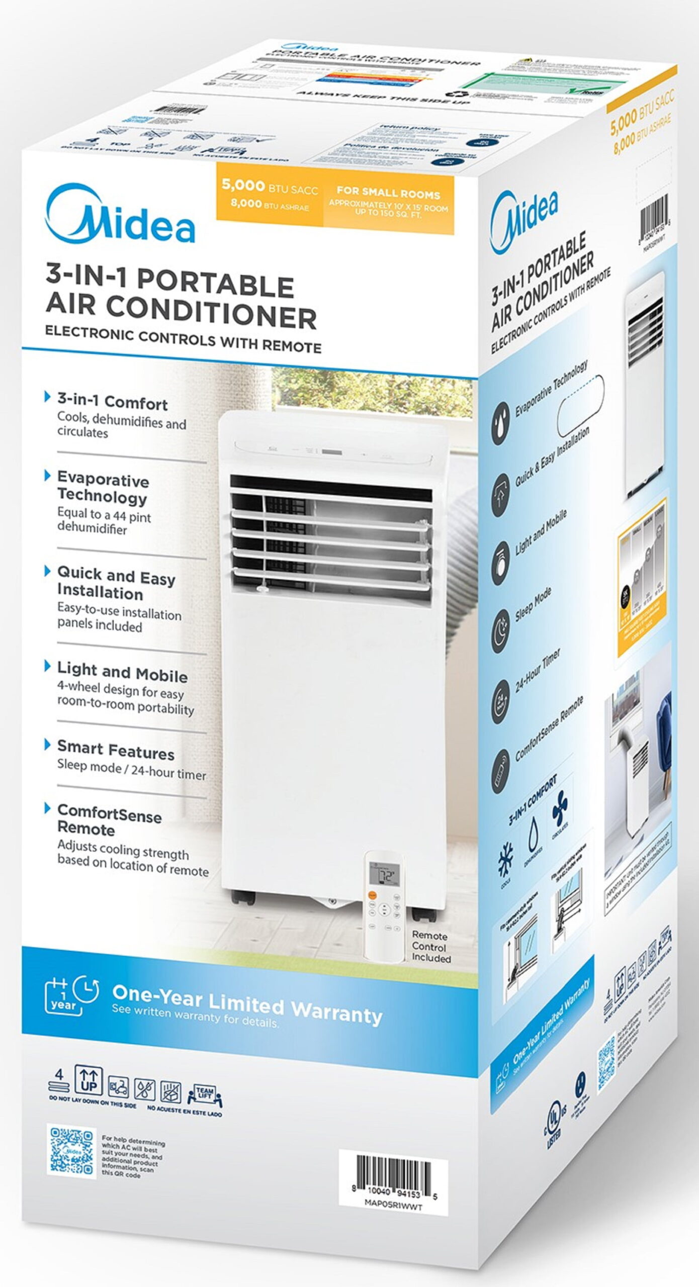 Midea 5.000 BTU (8.000 BTU ASHRAE) 115V Portable Air Conditioner with Comfort Sense Remote. Cools up to 150 Sq. ft.. MAP05R1WWT