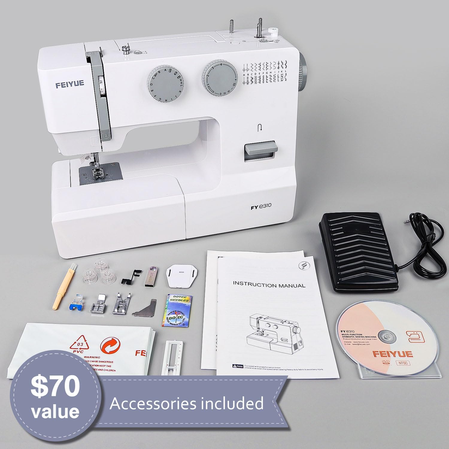 FEIYUE FYe310. Sewing Machine with Accessory Kit. 105 Stitch Applications. 100W Servo Motor. Heavy Duty Interior Metal Frame. Dual LED Lights. Easy to Use (White)