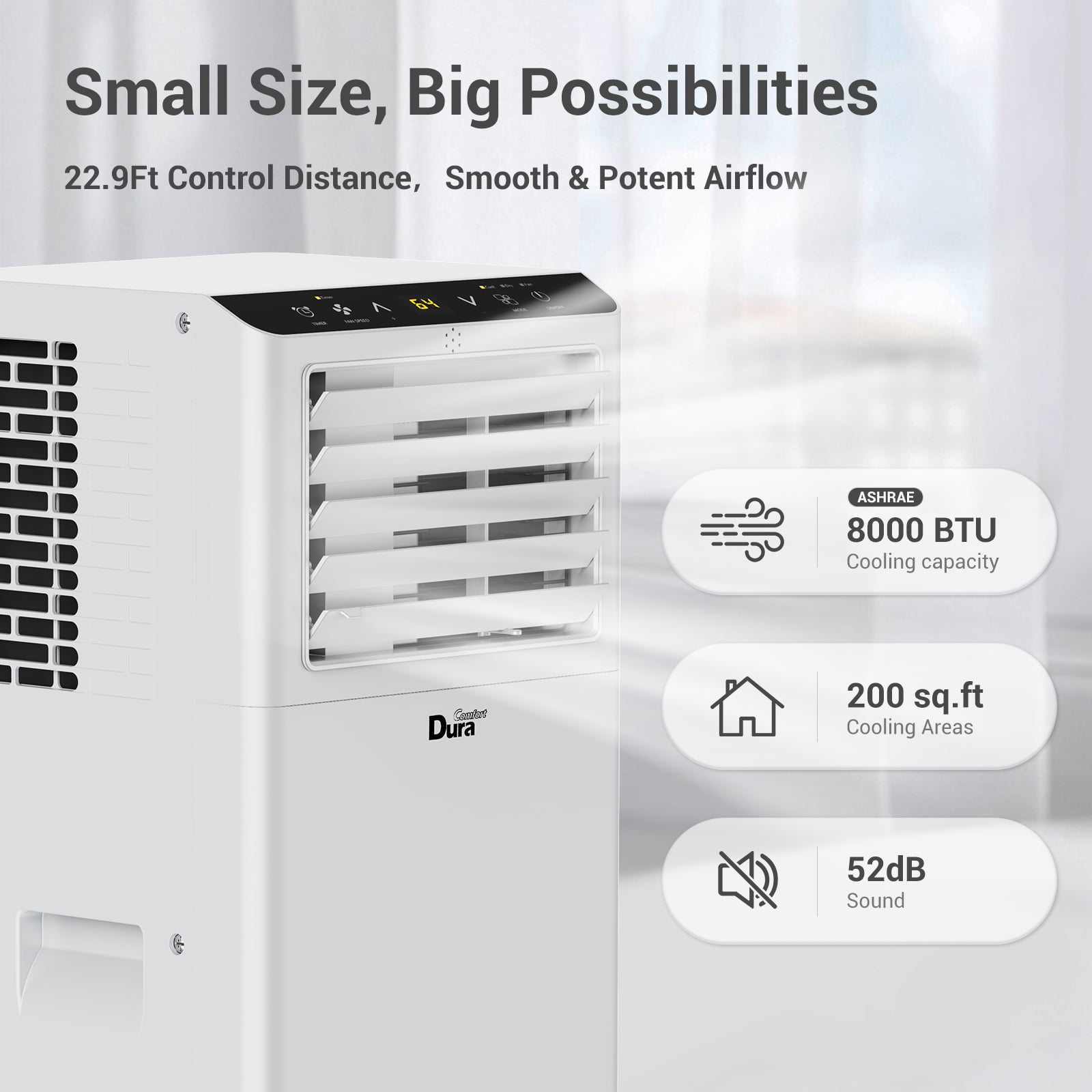 DuraComfort 8.000 BTU ASHRAE Portable Air Conditioner. 3-in-1 AC Unit. Cool. Dehumidifier & Fan. for Room up to 200 Sq.Ft 4900 BTU SACC