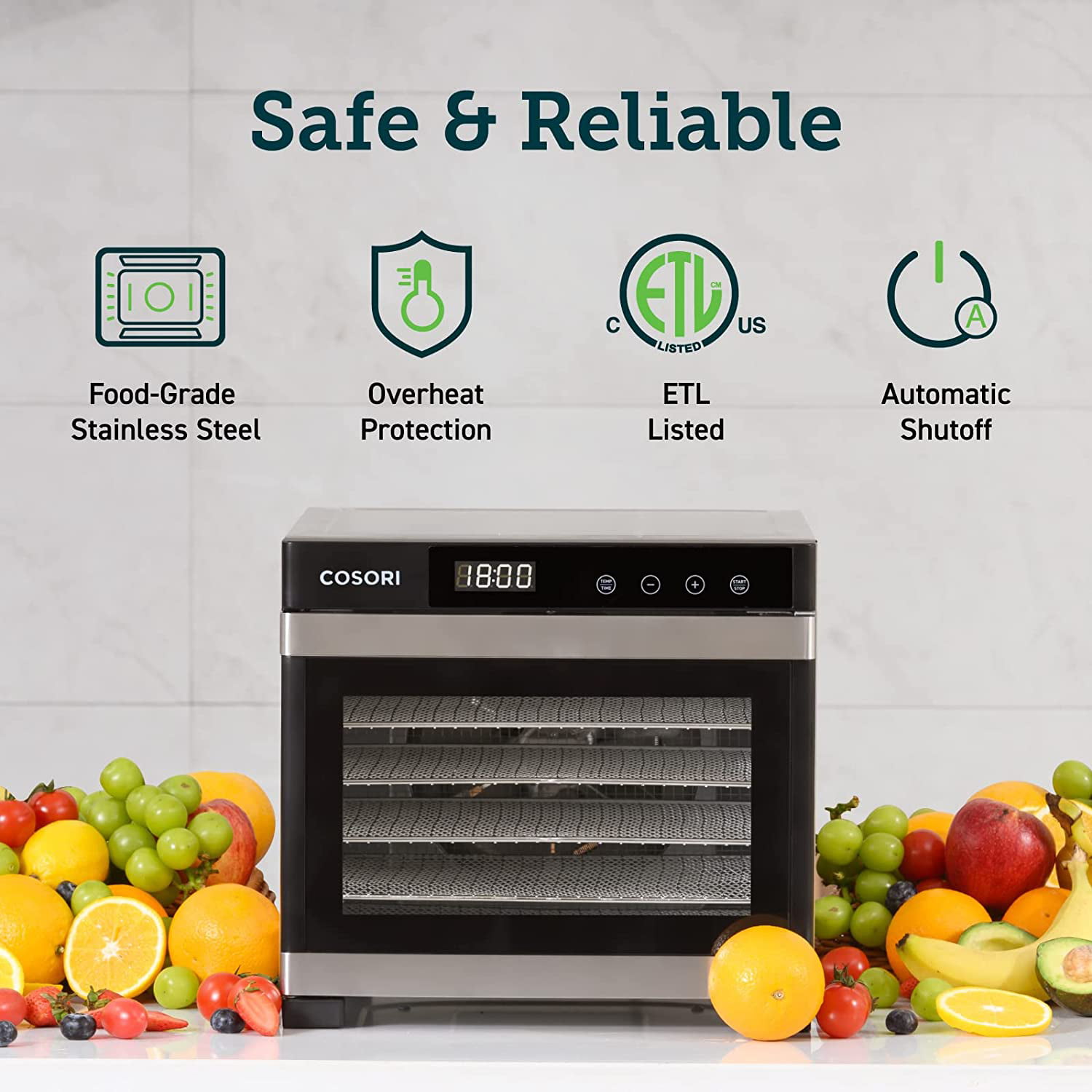 COSORI Food Dehydrator for Jerky. 6 Stainless Steel Trays. CP267-FD. Silver
