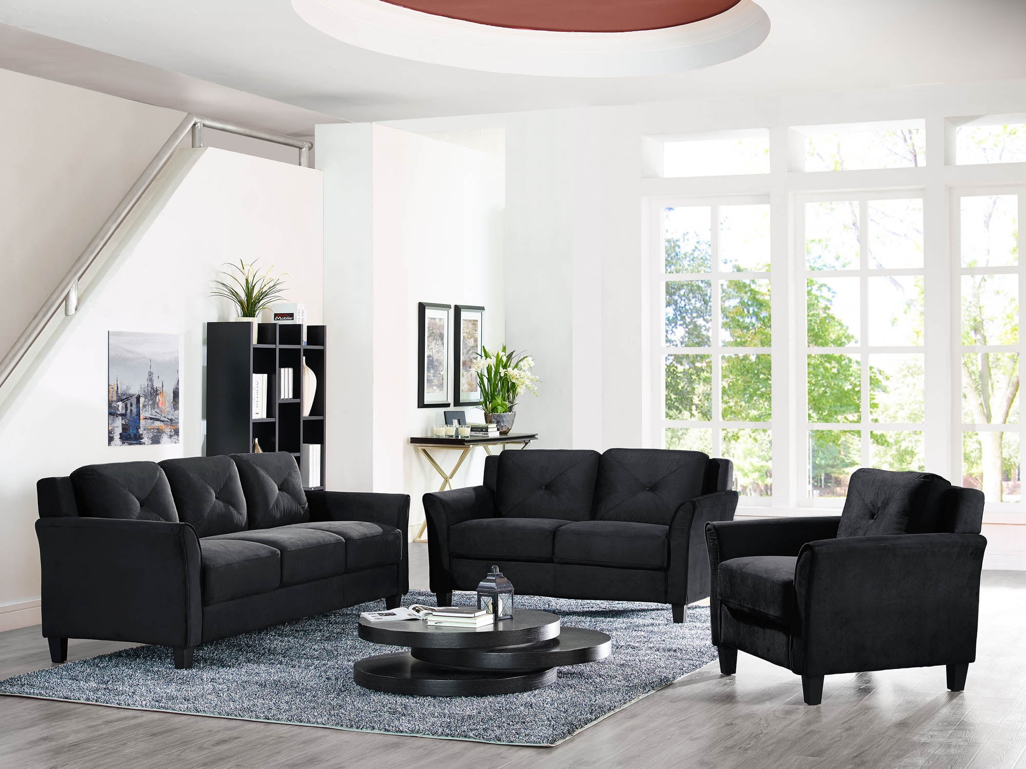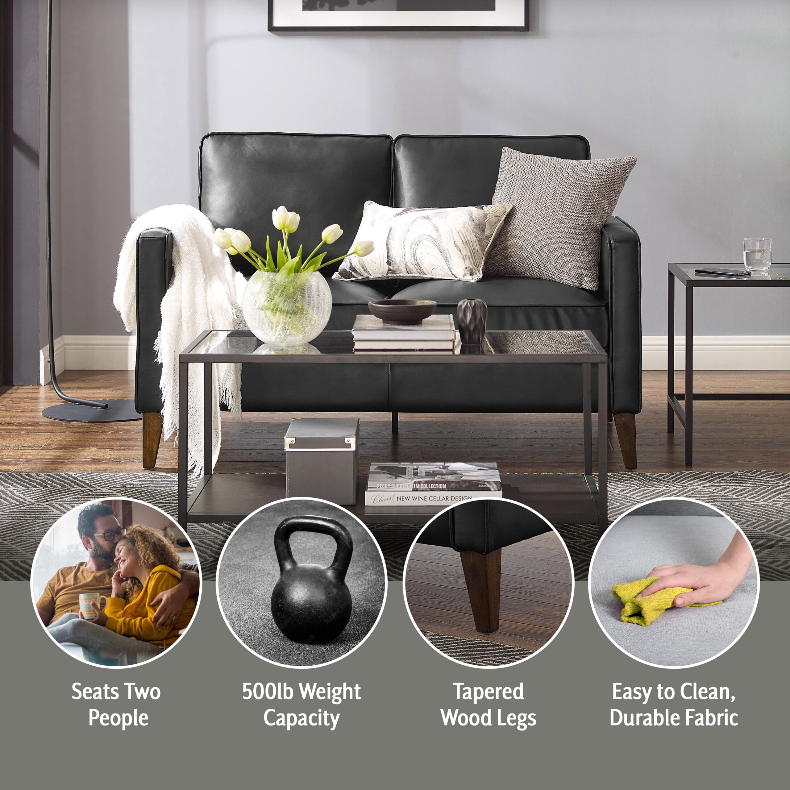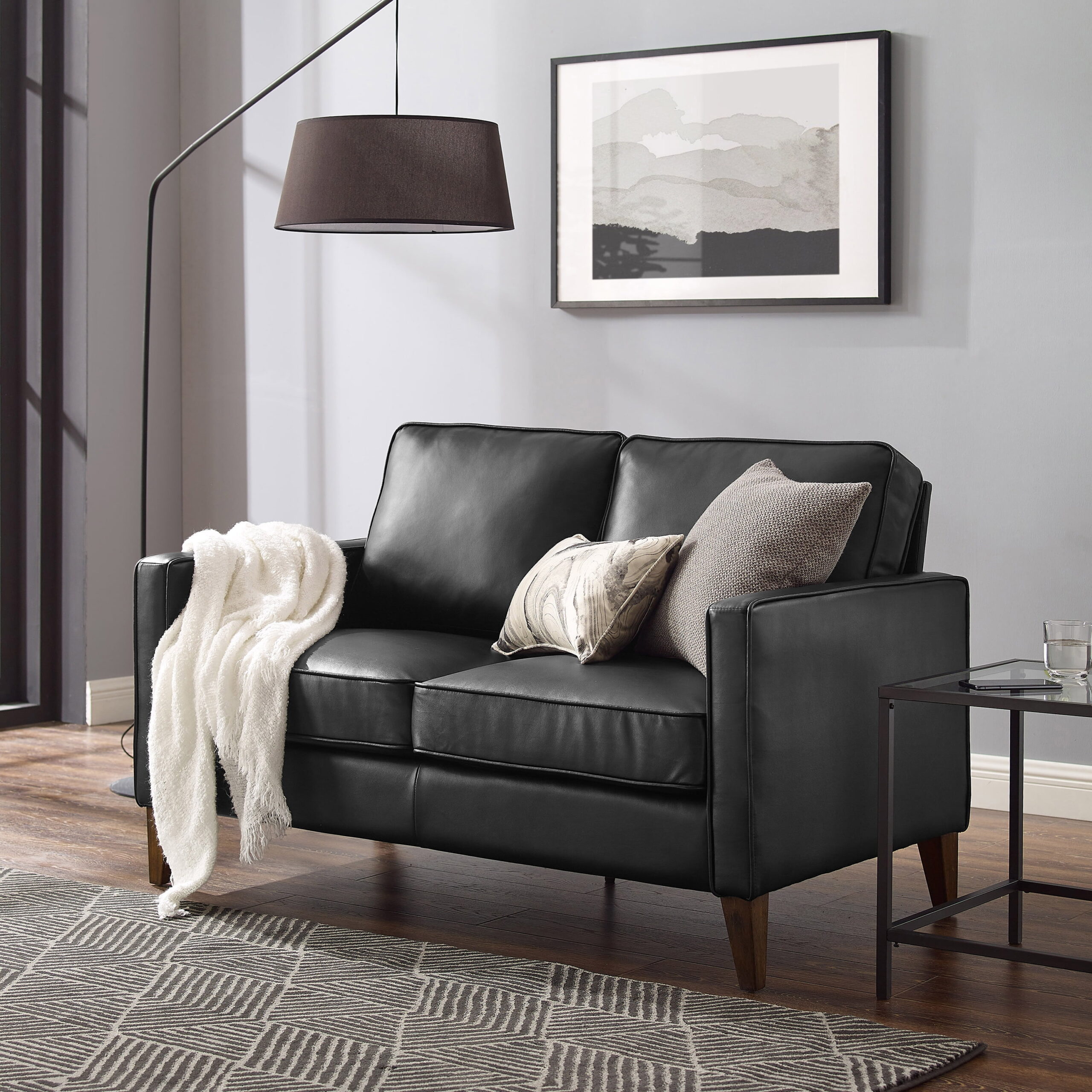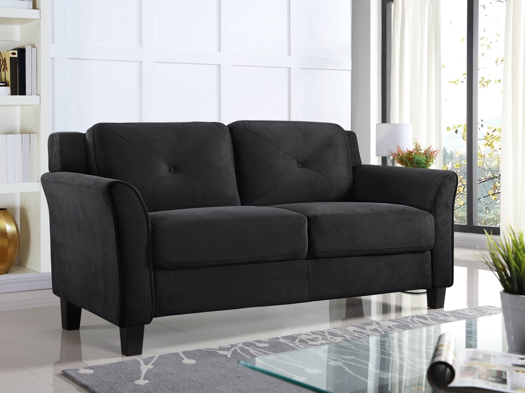 Lifestyle Solutions Taryn Loveseat with Rolled Arms. Black Fabric