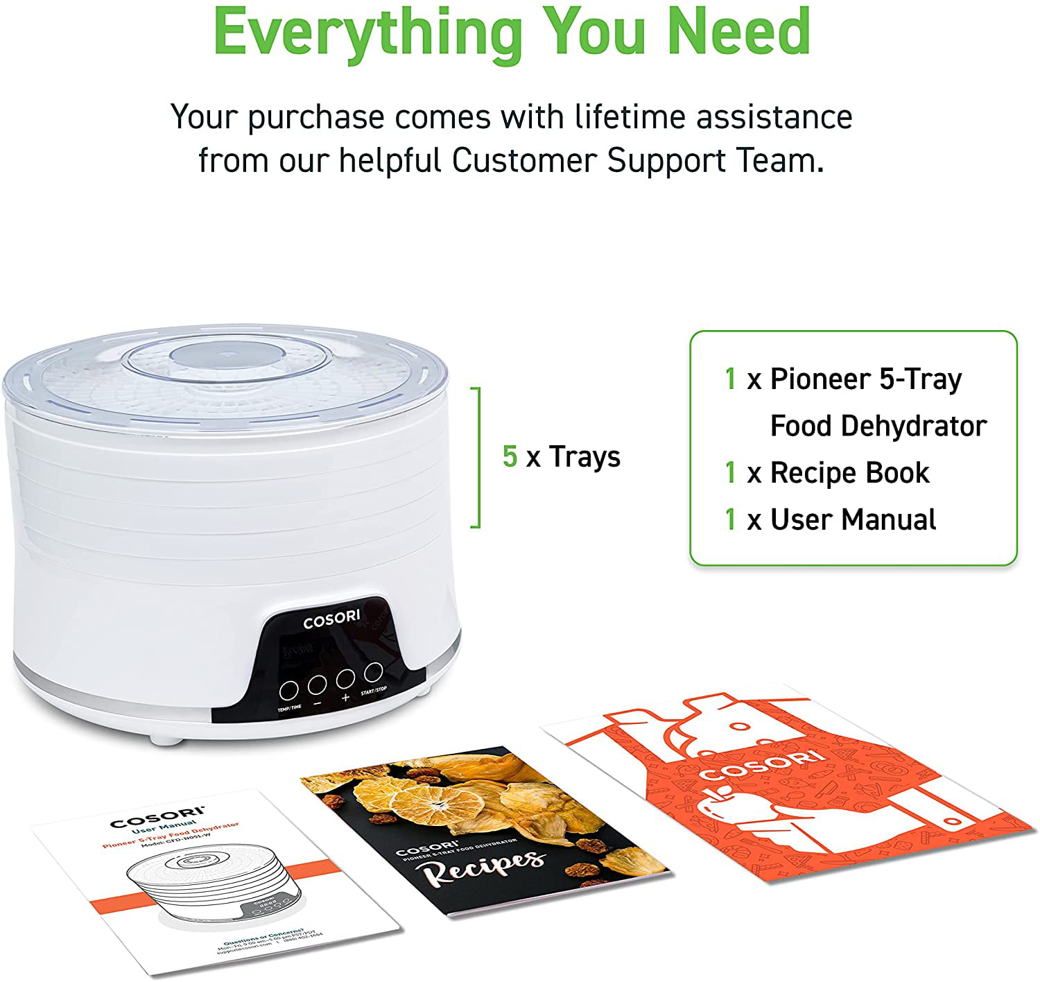 COSORI Food Dehydrator for Jerky .5 Stackable BPA-Free Trays .350W.Dryer with 48H Timer and 165°F Temperature Control