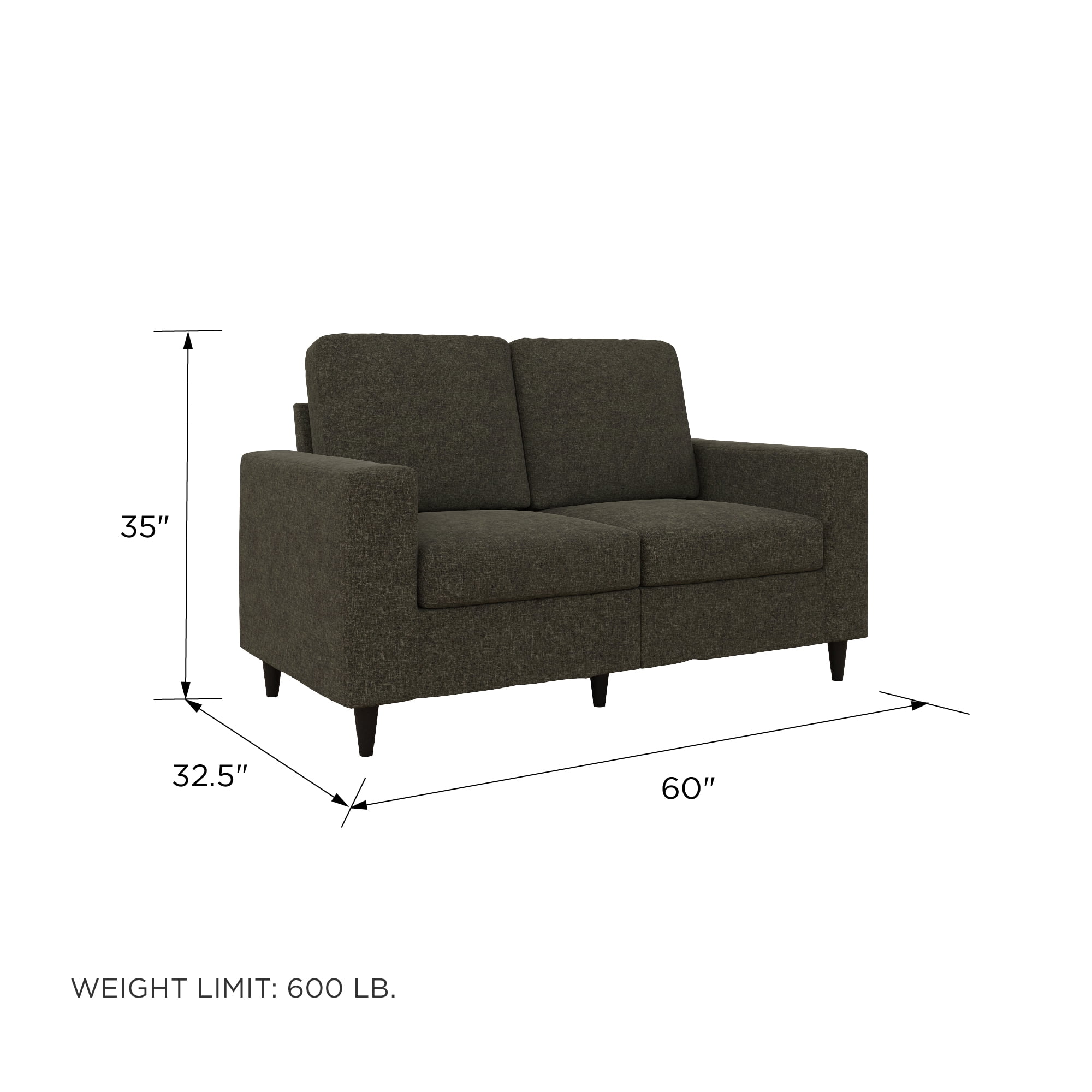 Lifestyle Solutions Hactor Loveseat with Curved Arms. Heather Gray Fabric