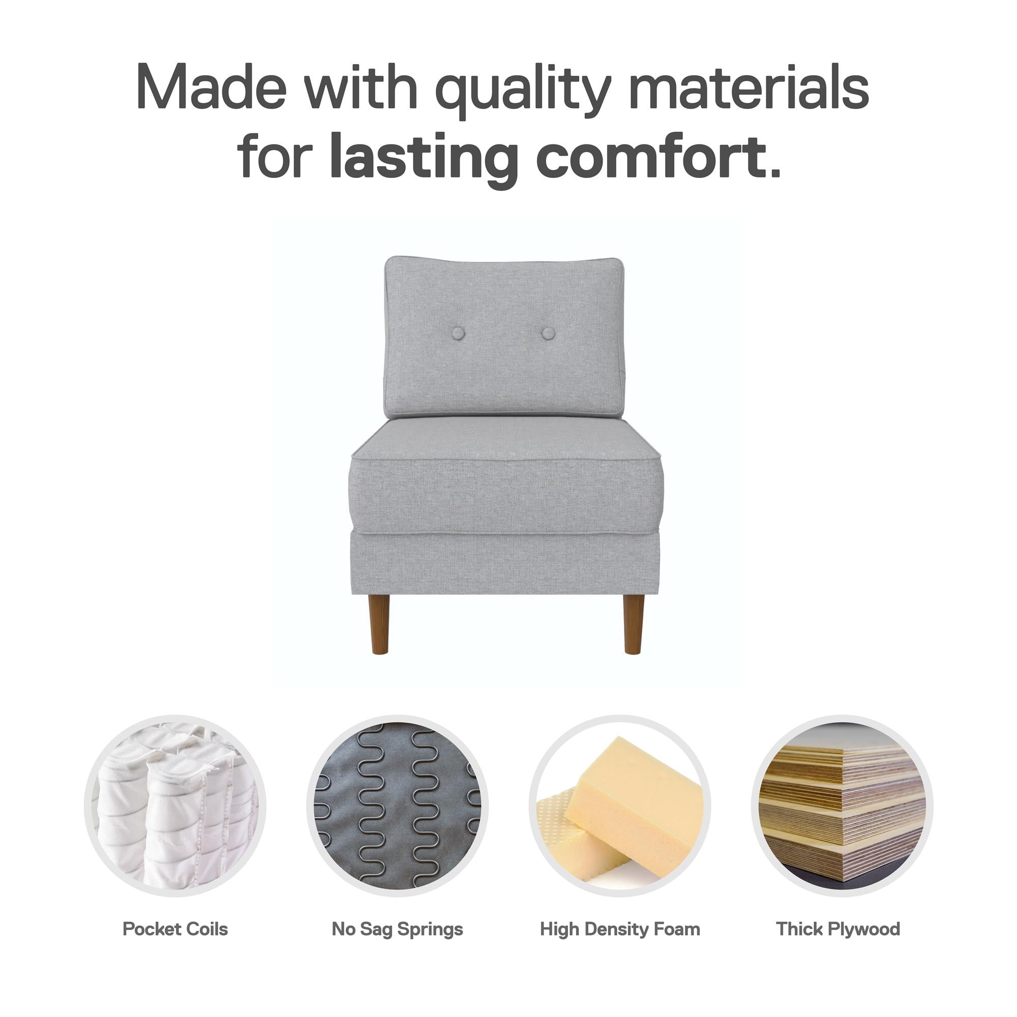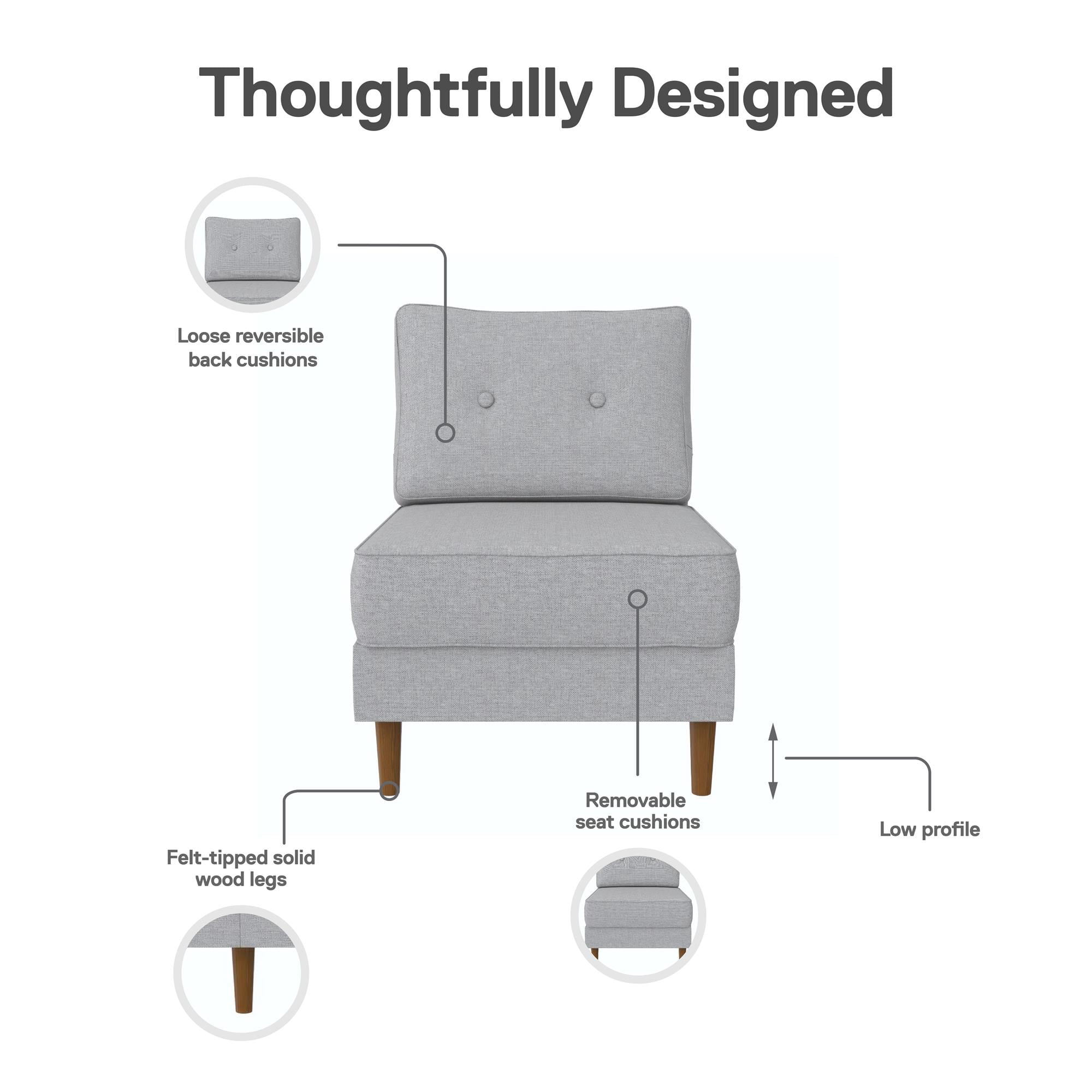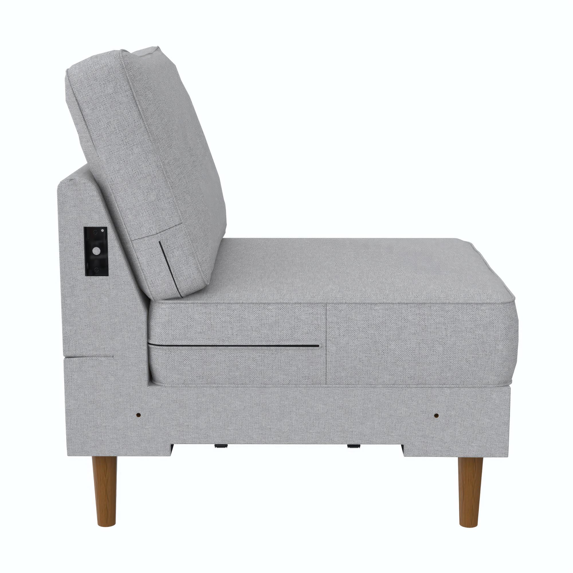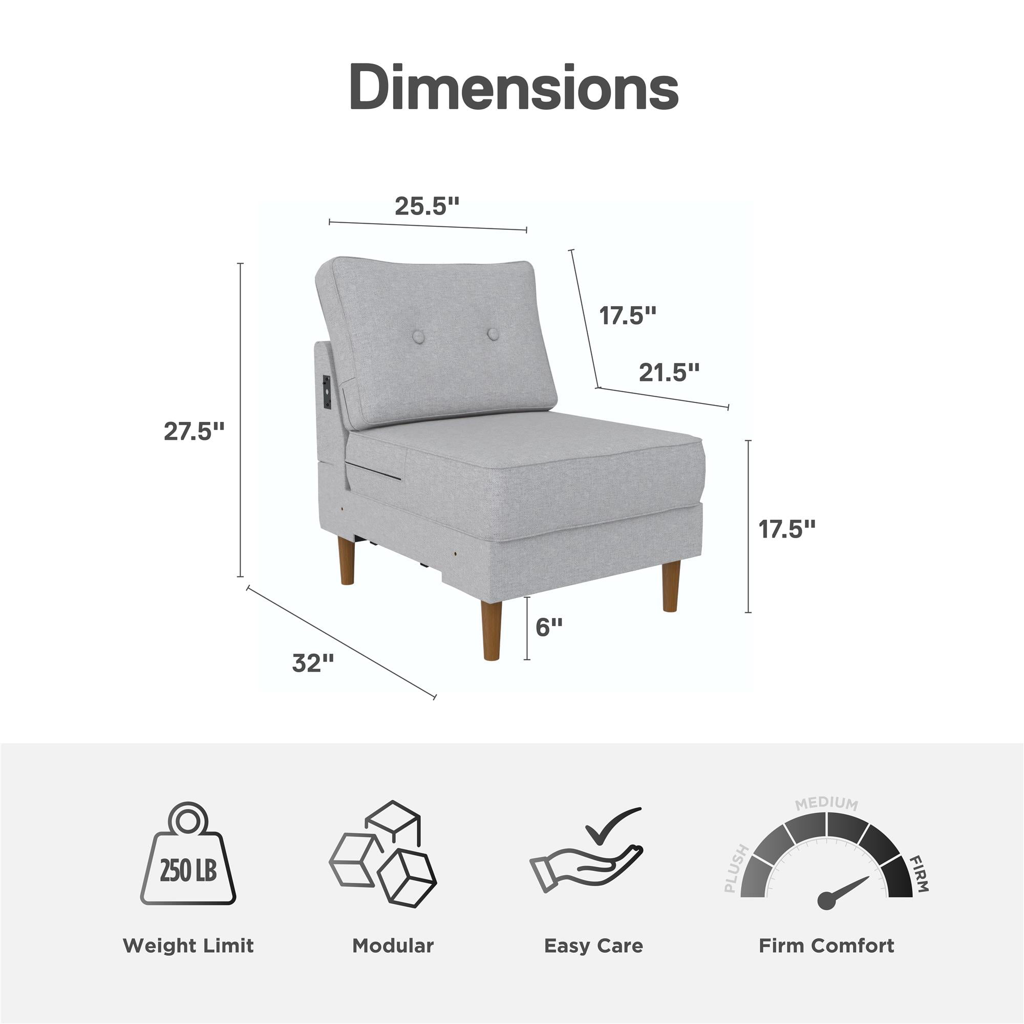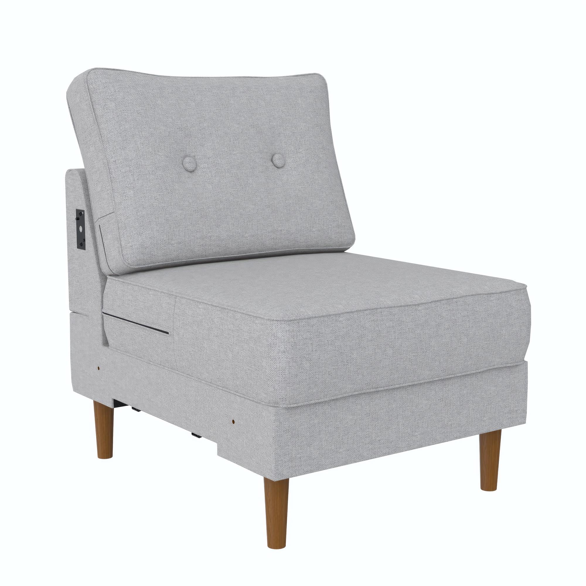DHP Flex Zion Modular Armless Sofa Chair - Single Seat Only. Gray Linen