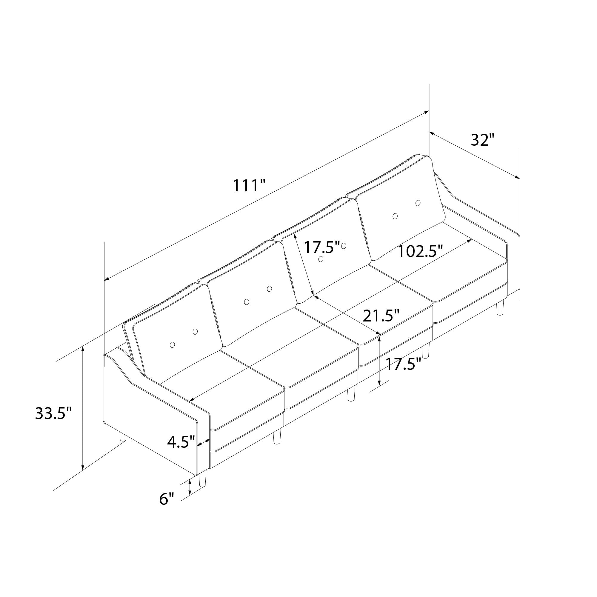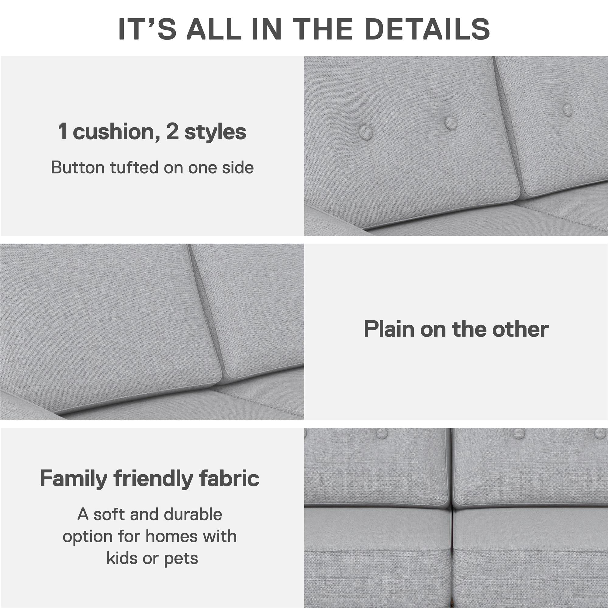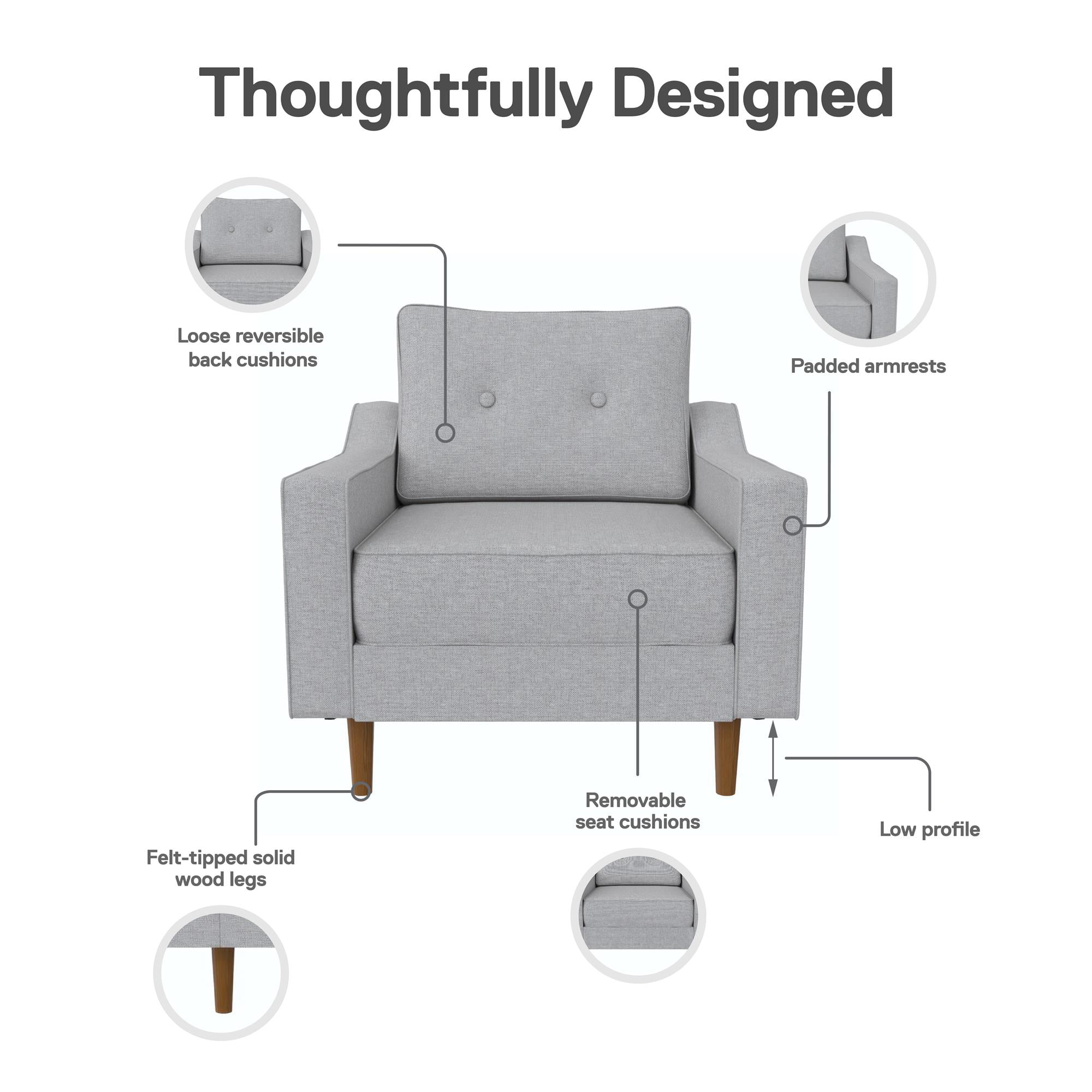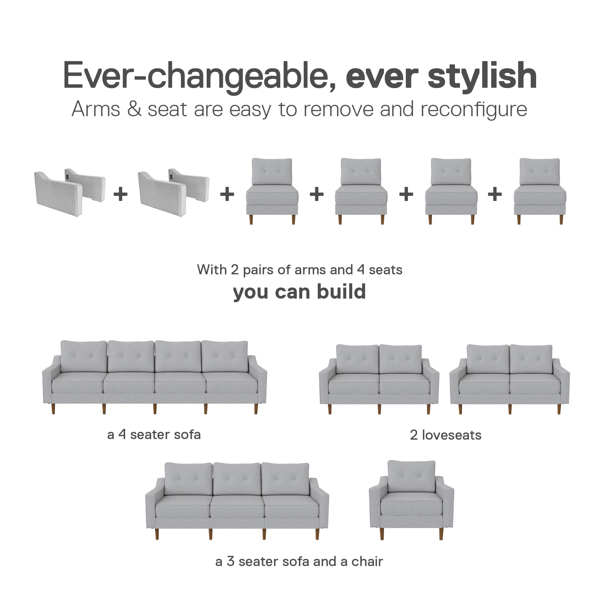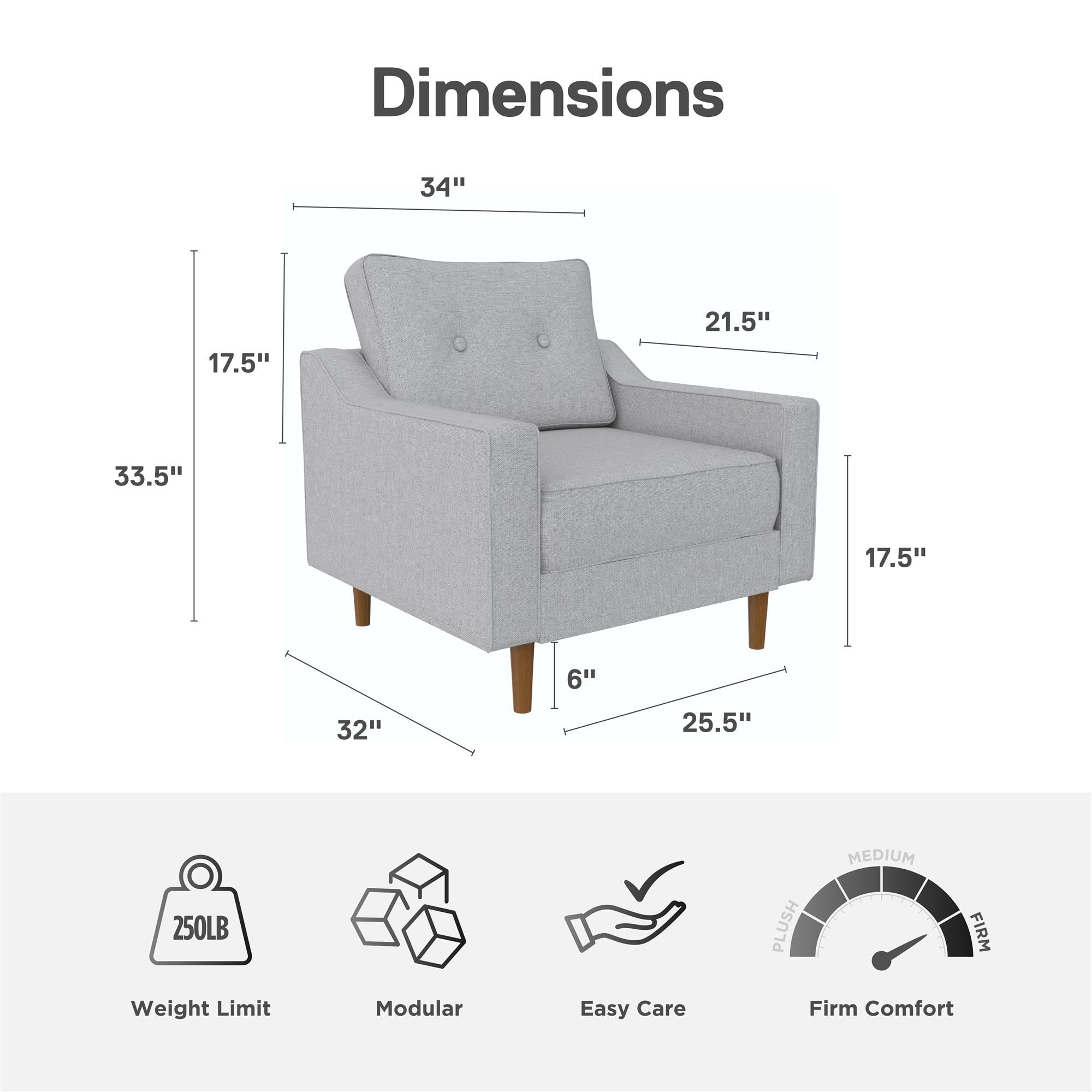DHP Flex Zion Modular Armless Sofa Chair - Single Seat Only. Gray Linen