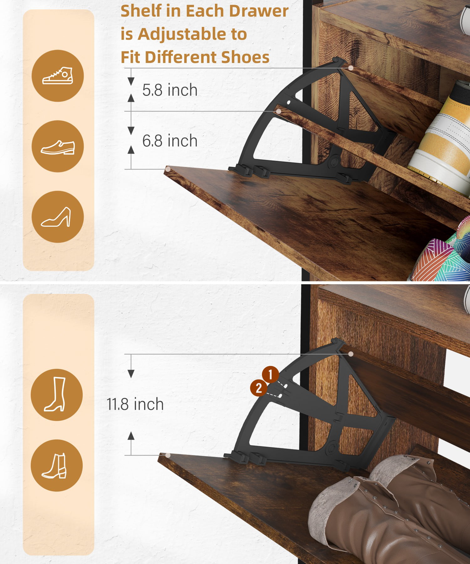 HAIOOU Wooden Shoe Cabinet with 3 Flip Drawers. Freestanding Shoe Rack Storage Organizer for Entryway. 15-18 pairs. Rustic Brown
