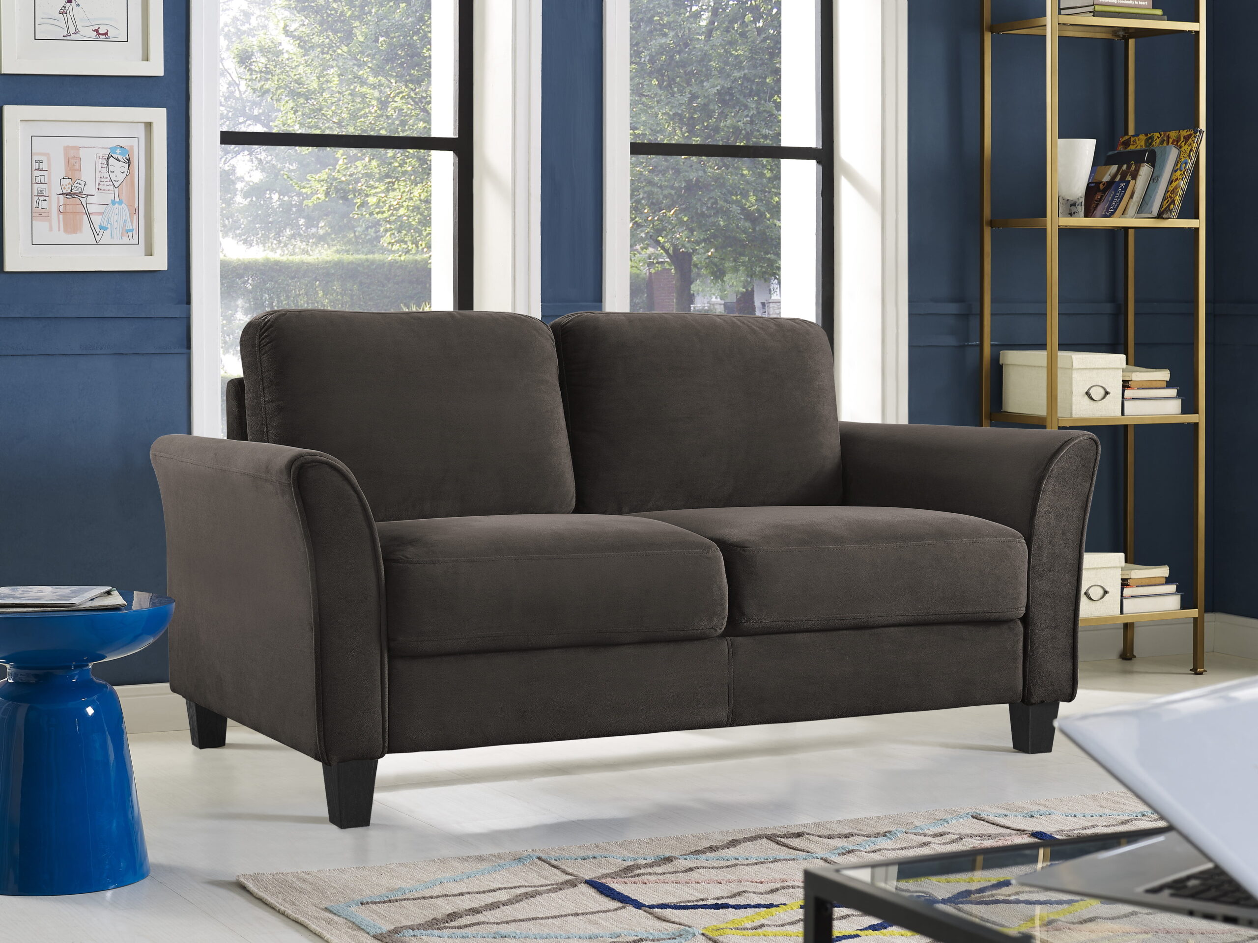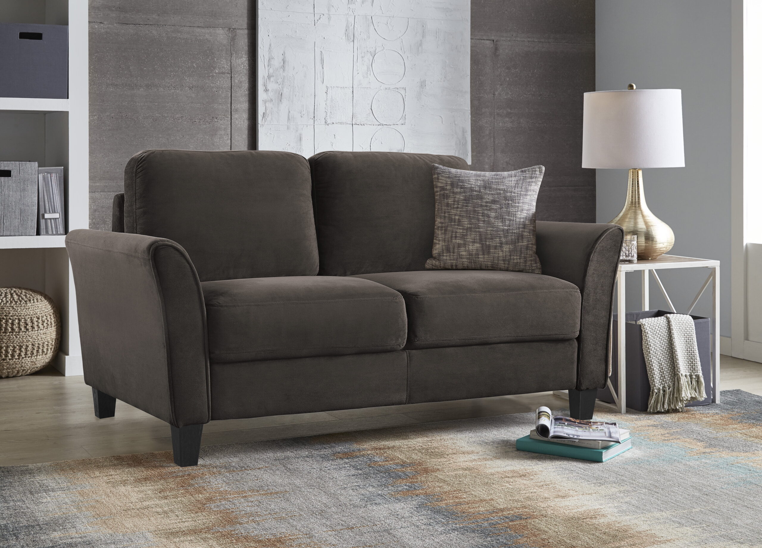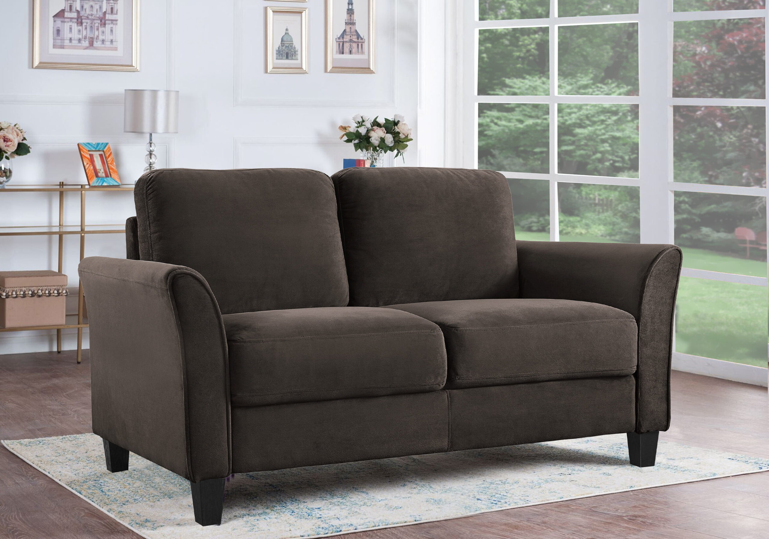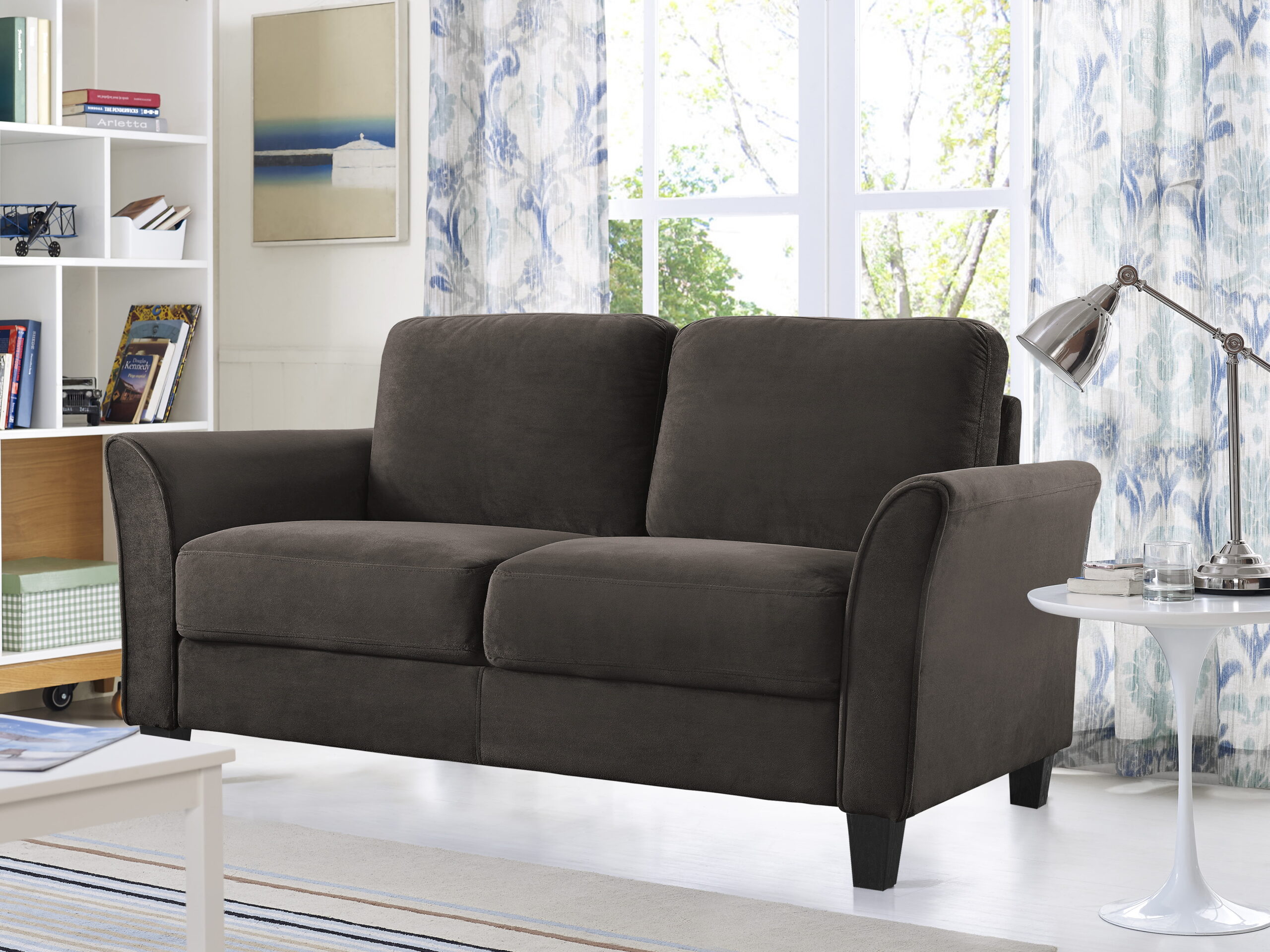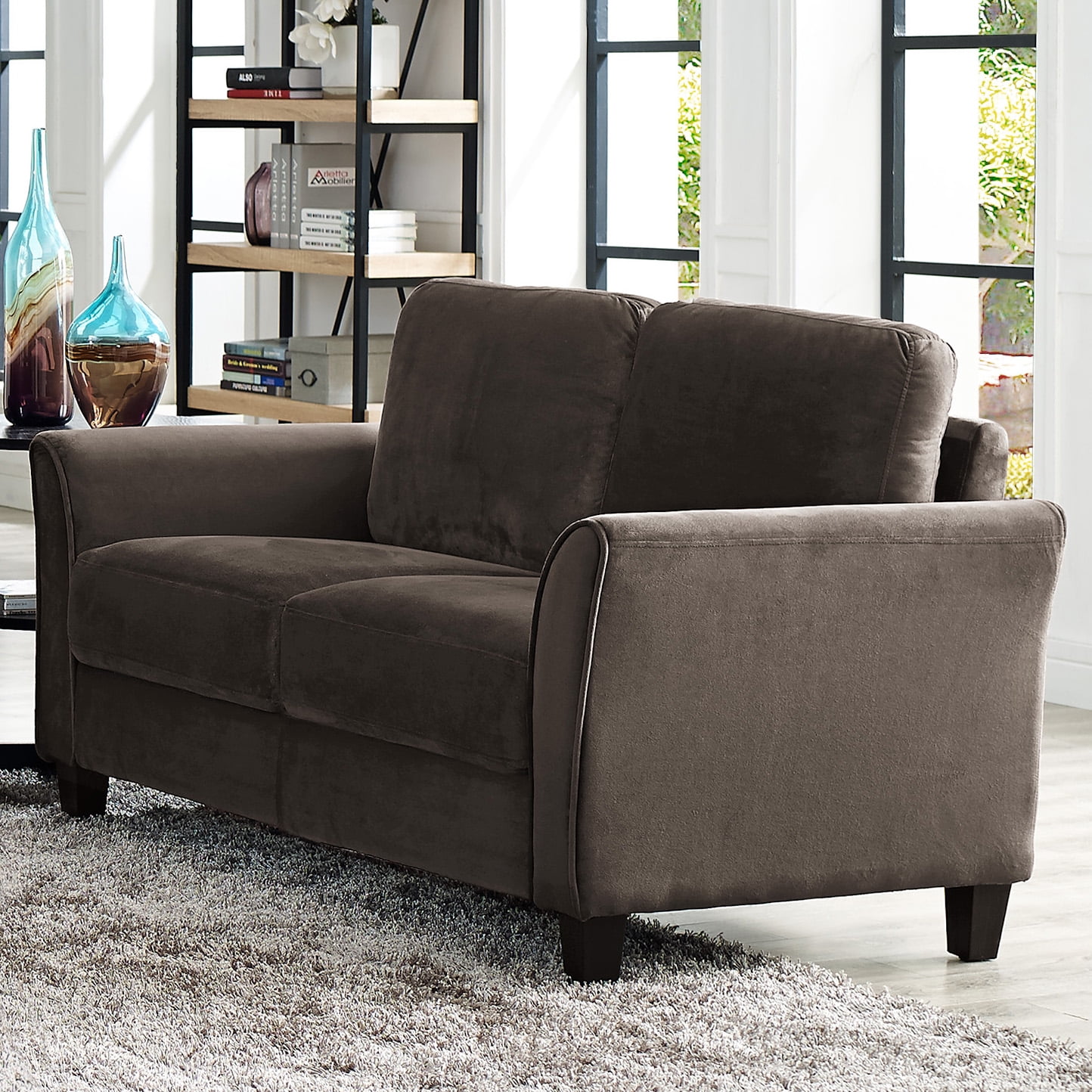 Lifestyle Solutions Alexa Loveseat with Curved Arms. Coffee Fabric