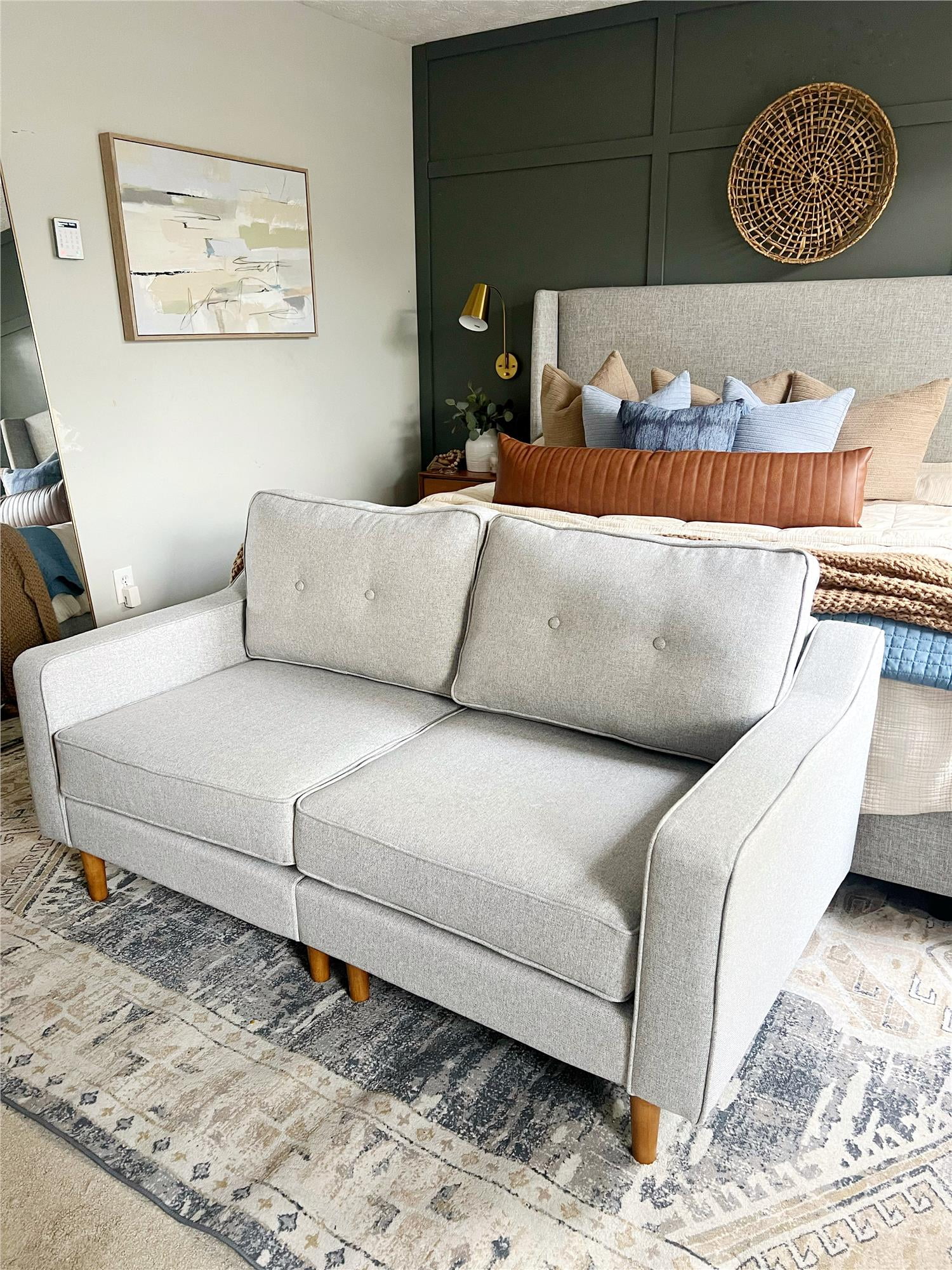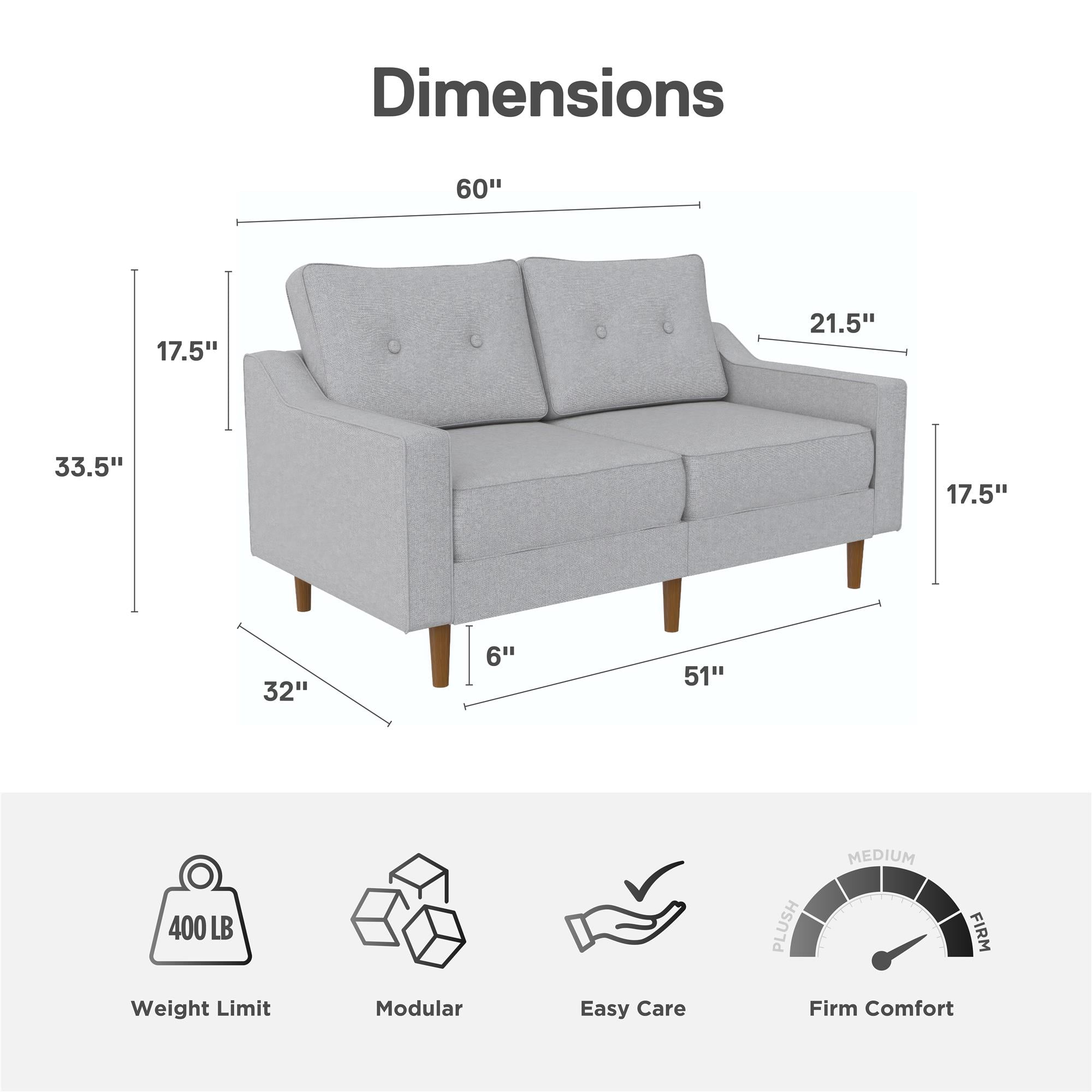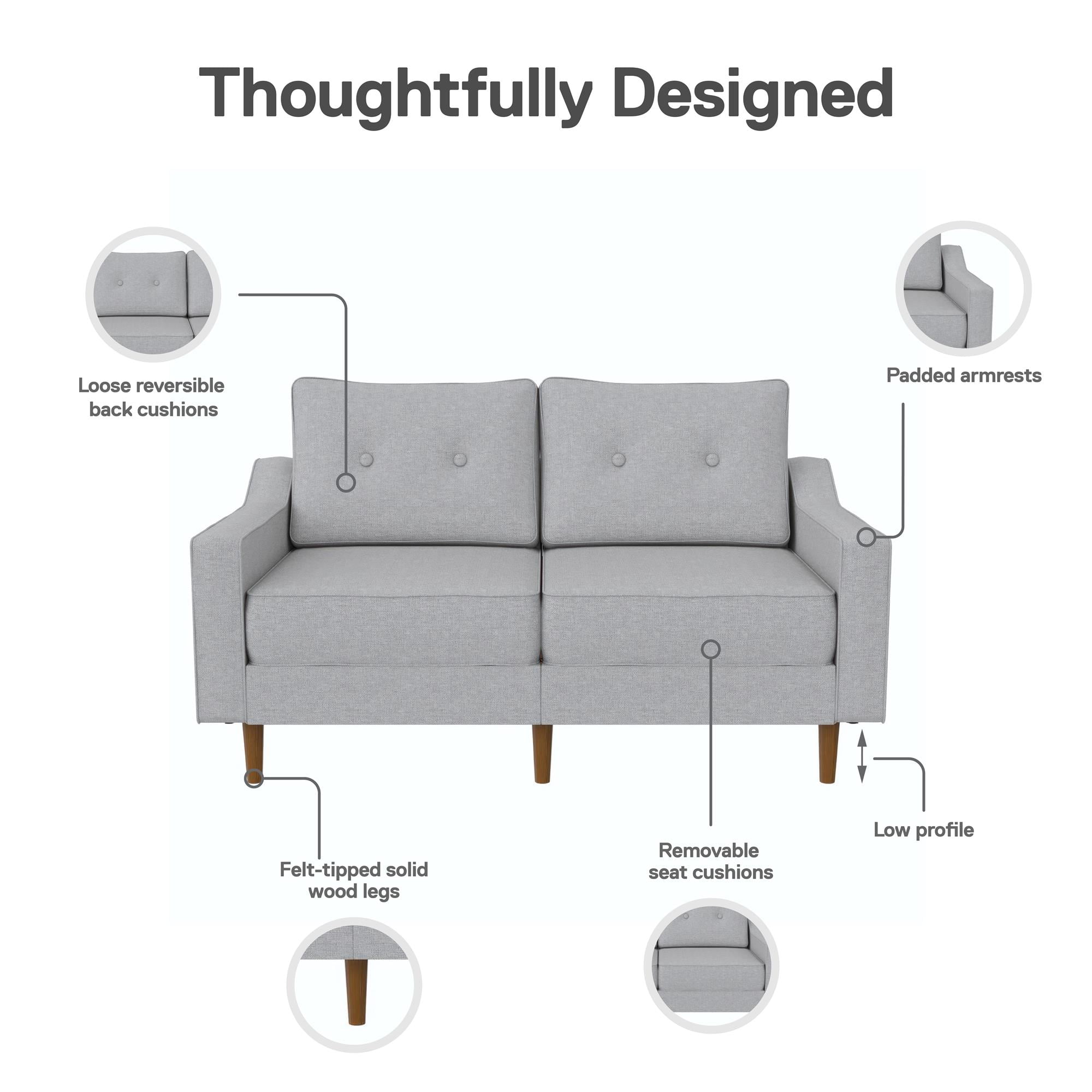 Lifestyle Solutions Alexa Loveseat with Rolled Arms. Gray Fabric