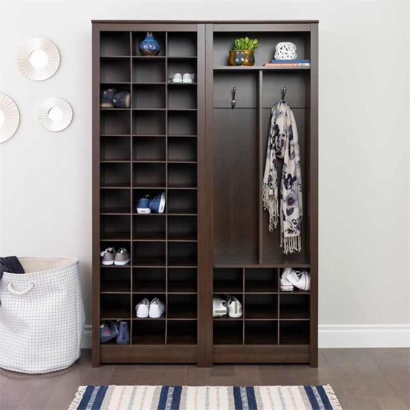 Prepac Space-Saving 36 Pair Shoe Storage Cabinet With Cubbies. Espresso