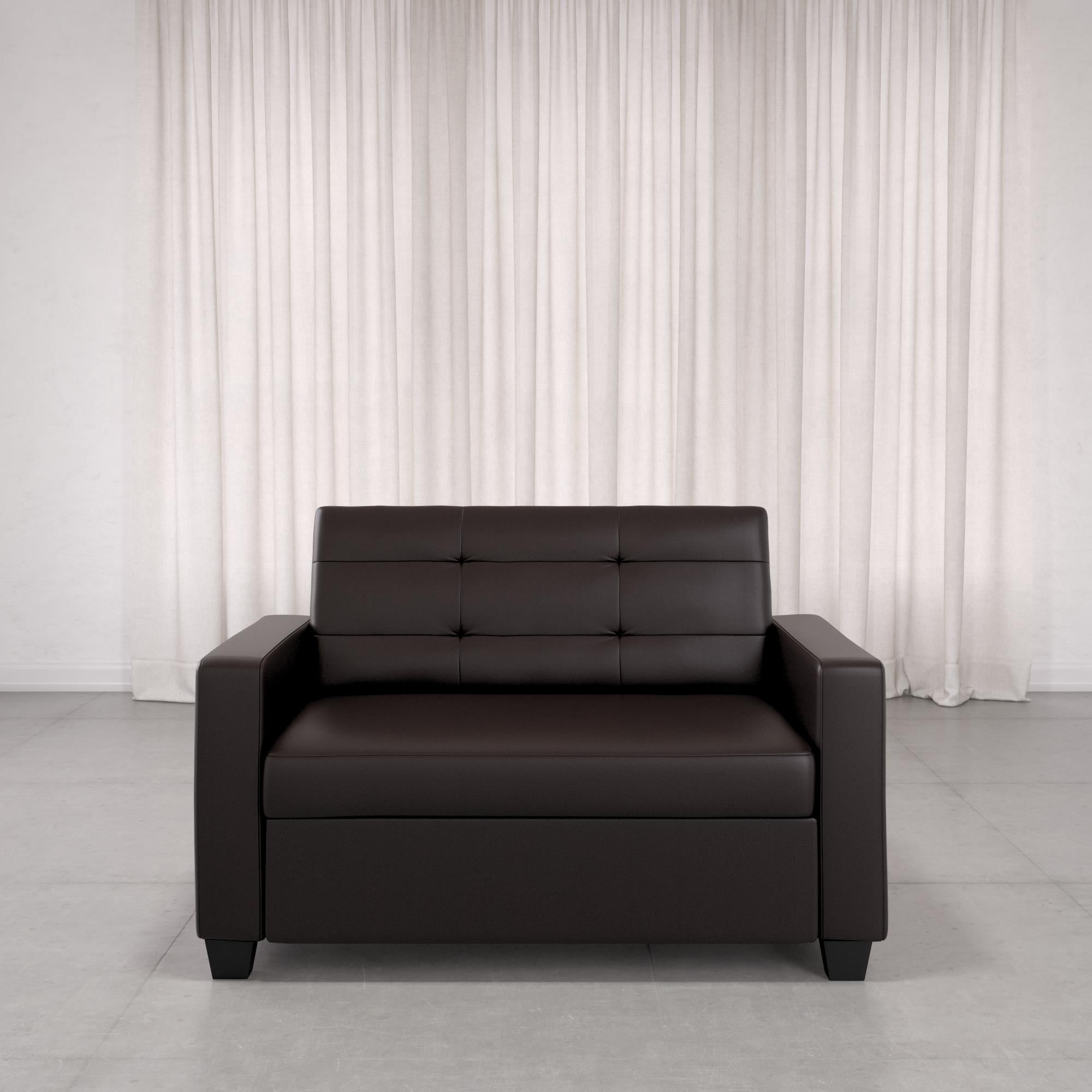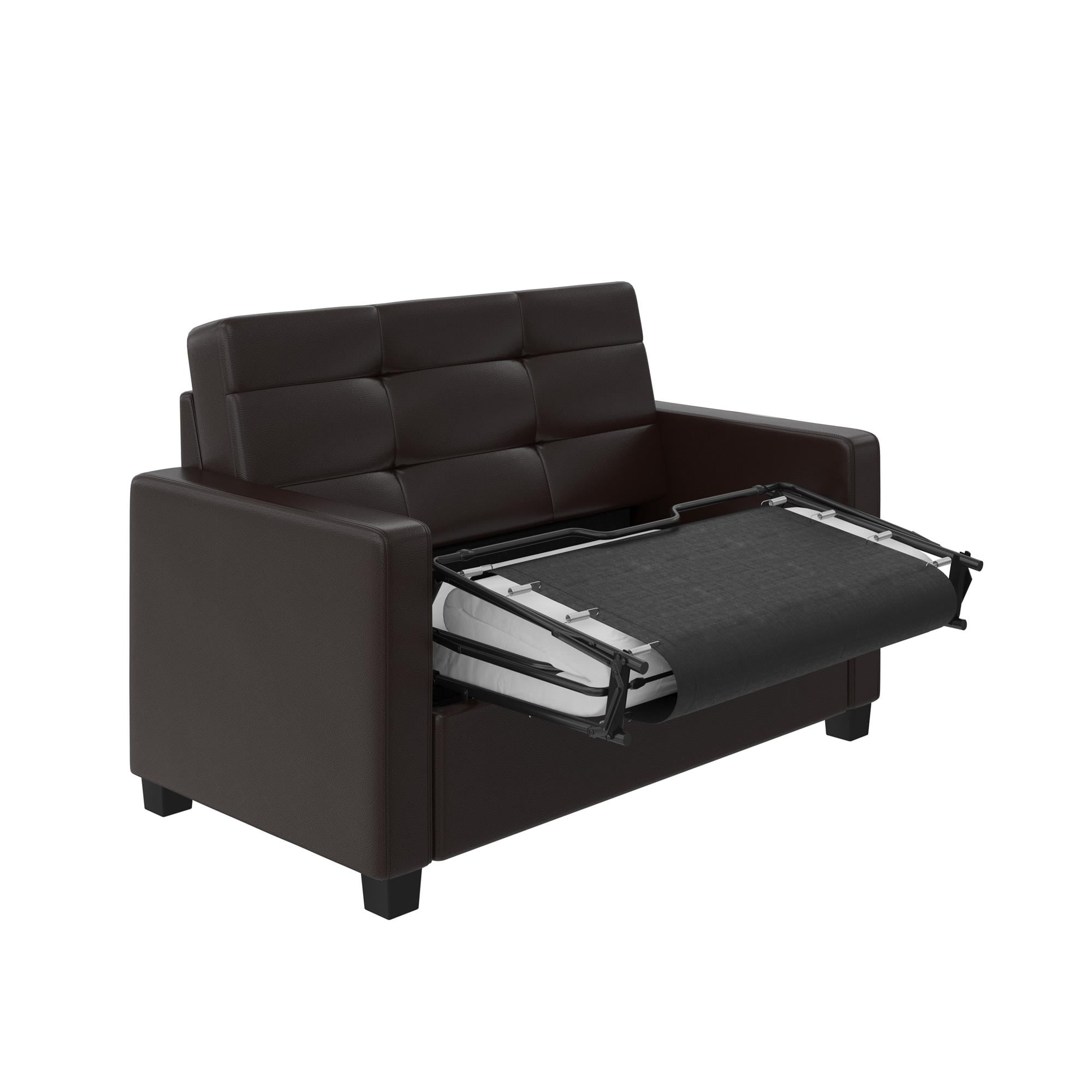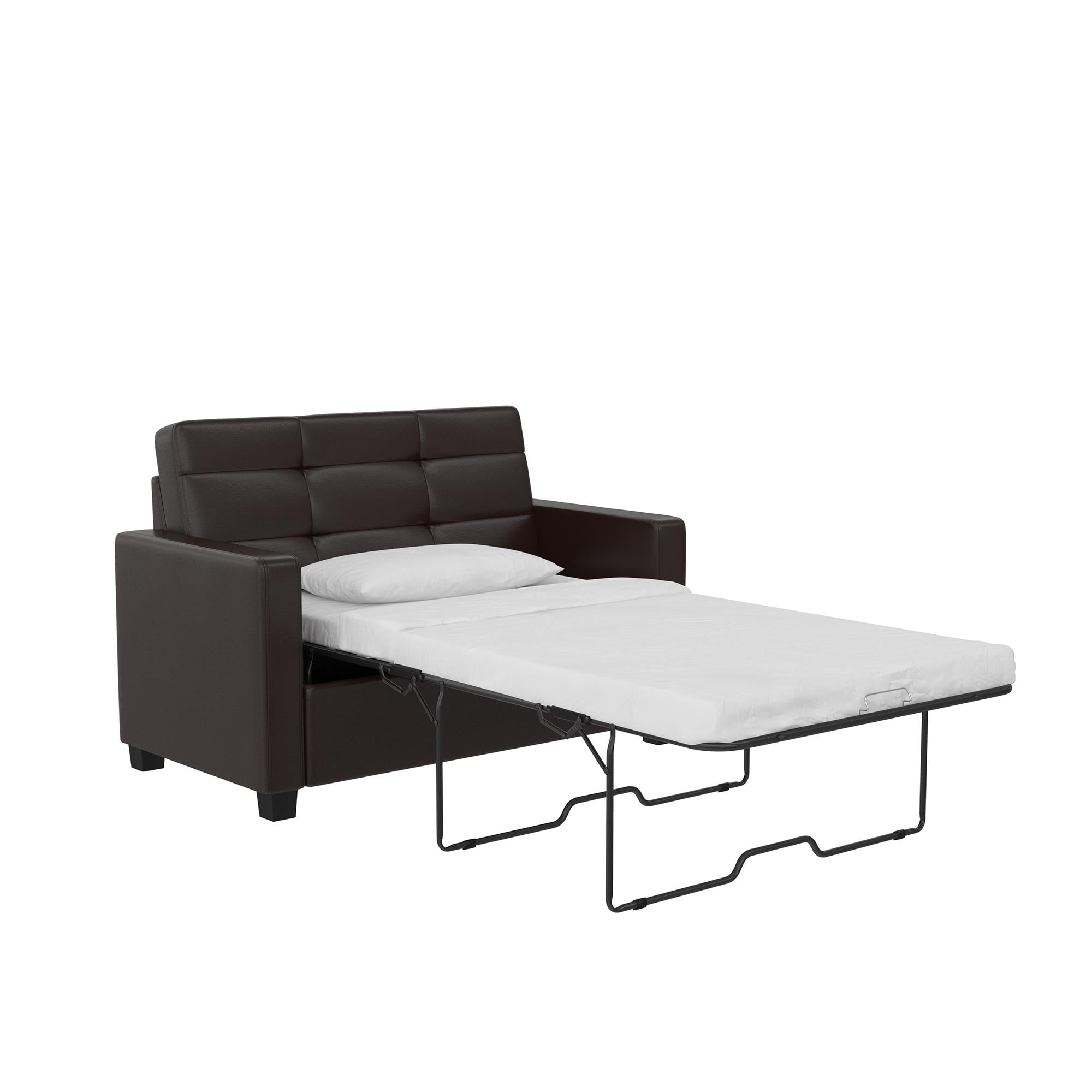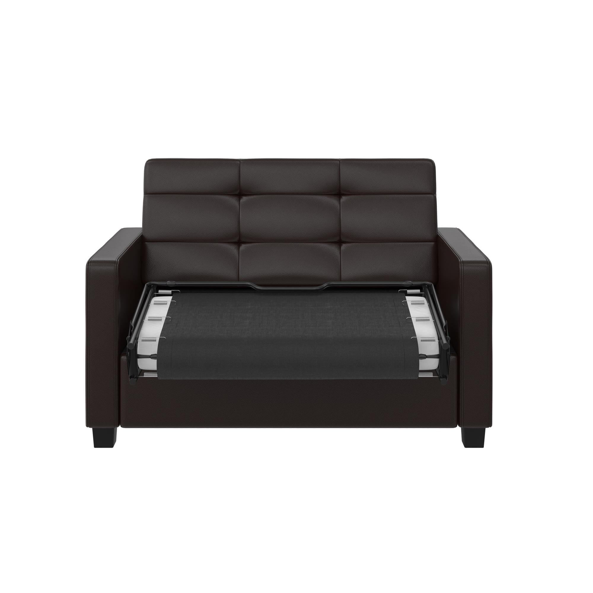 Mainstays Loveseat Sleeper Sofa with Twin Memory Foam Mattress. Chocolate Faux Leather
