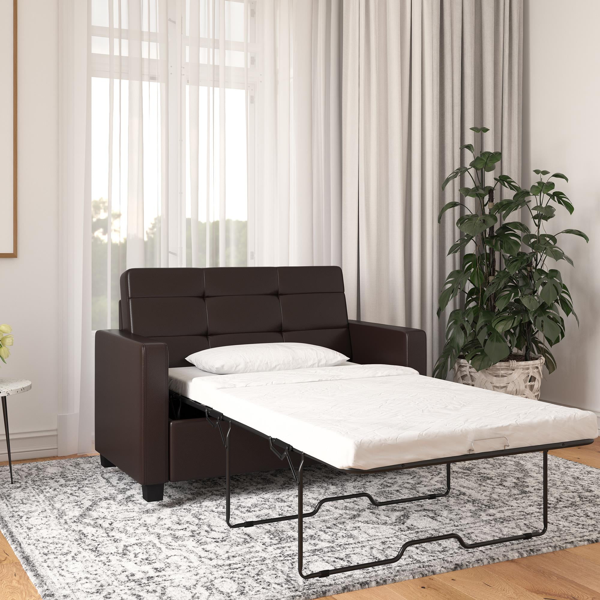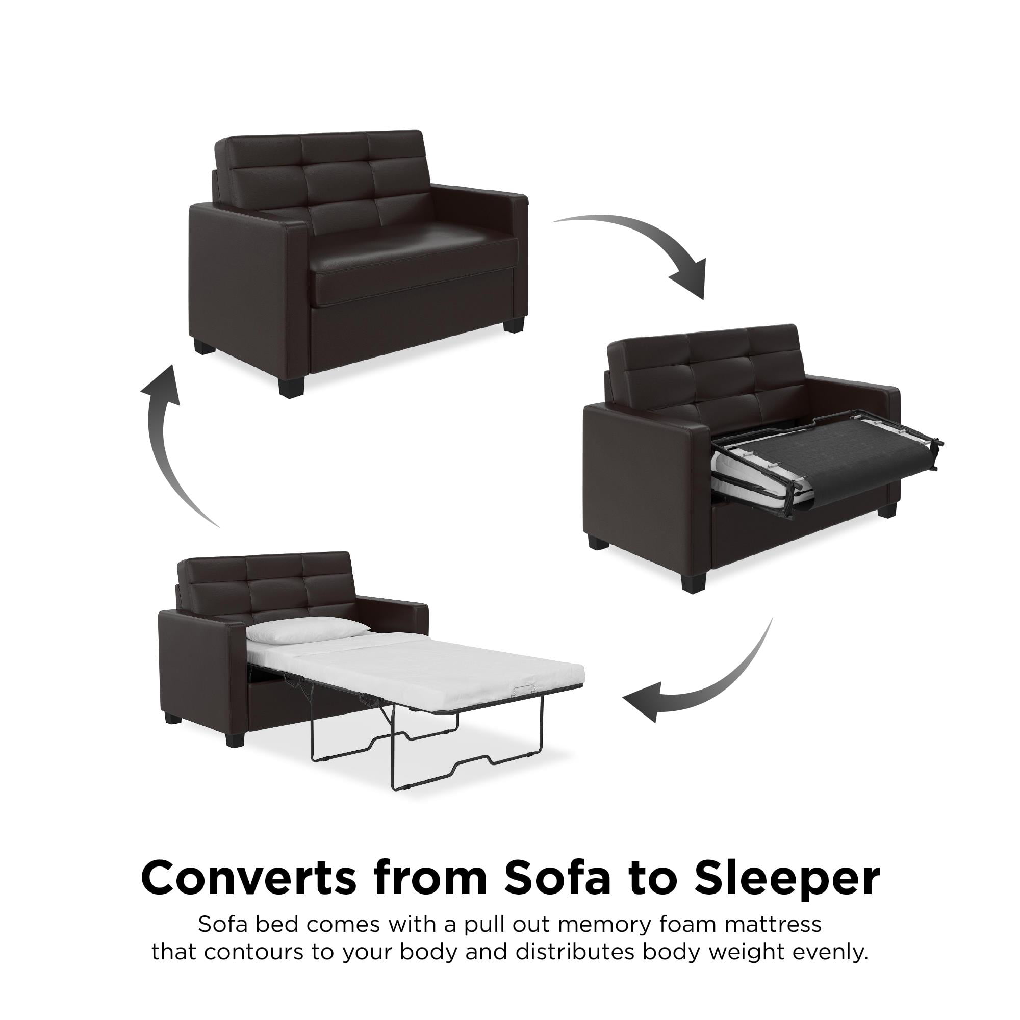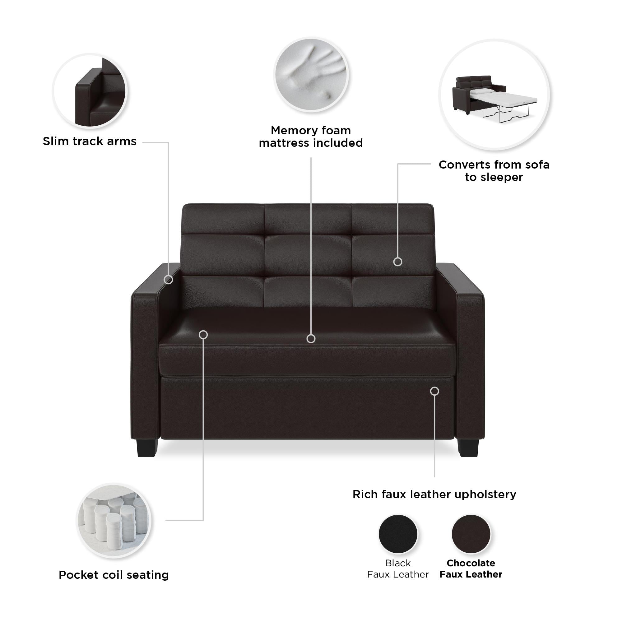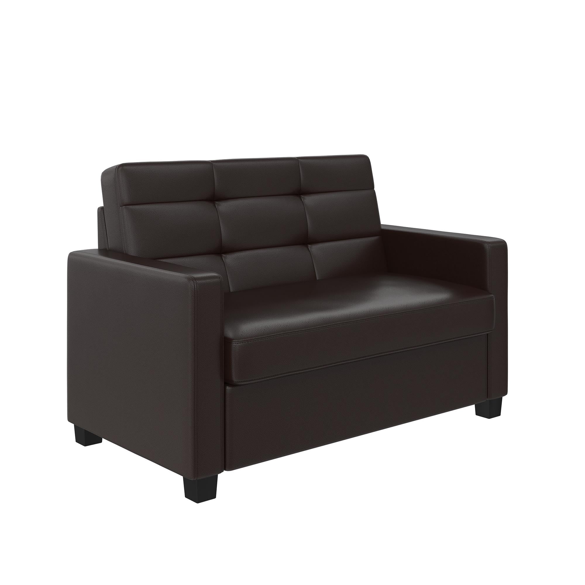 Mainstays Loveseat Sleeper Sofa with Twin Memory Foam Mattress. Chocolate Faux Leather