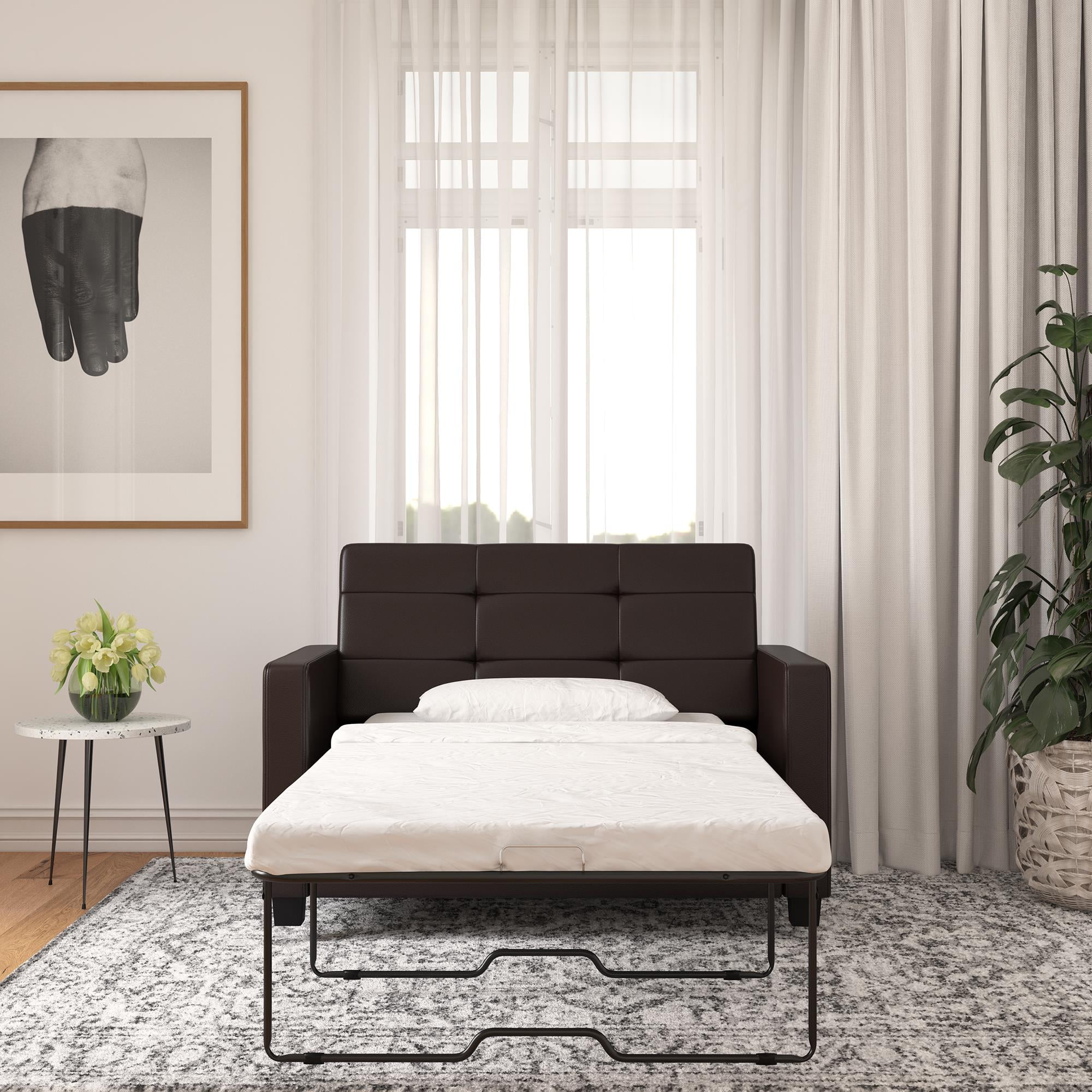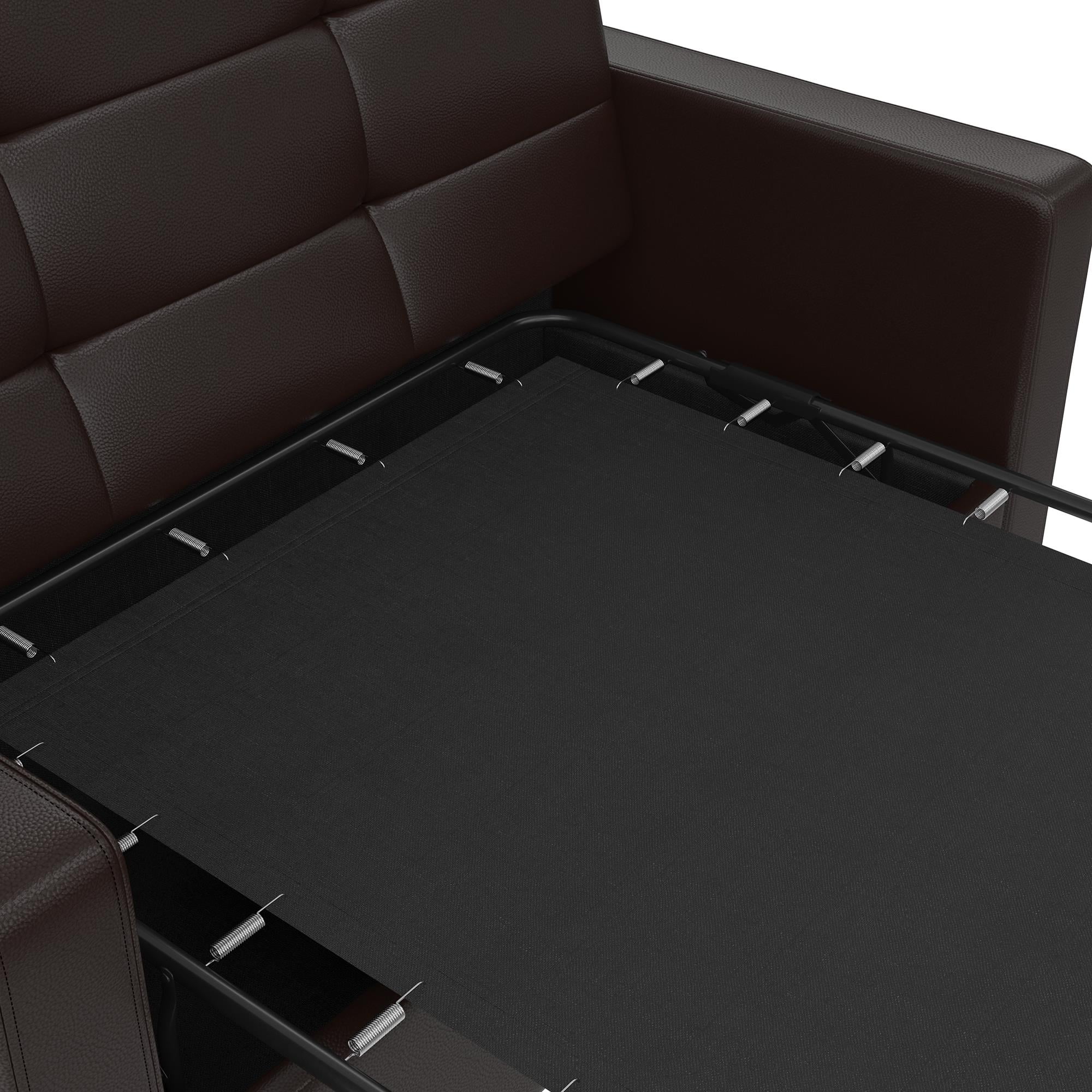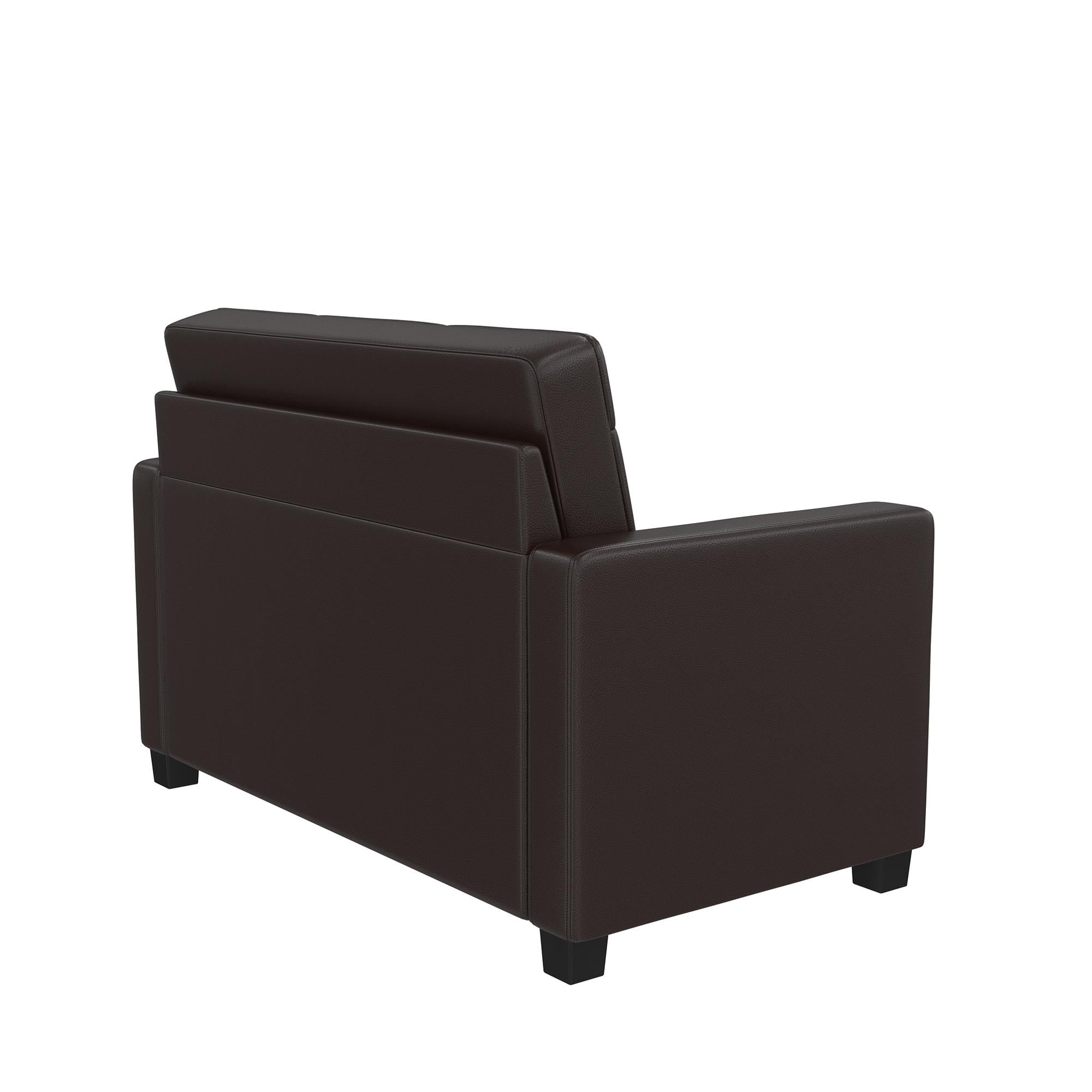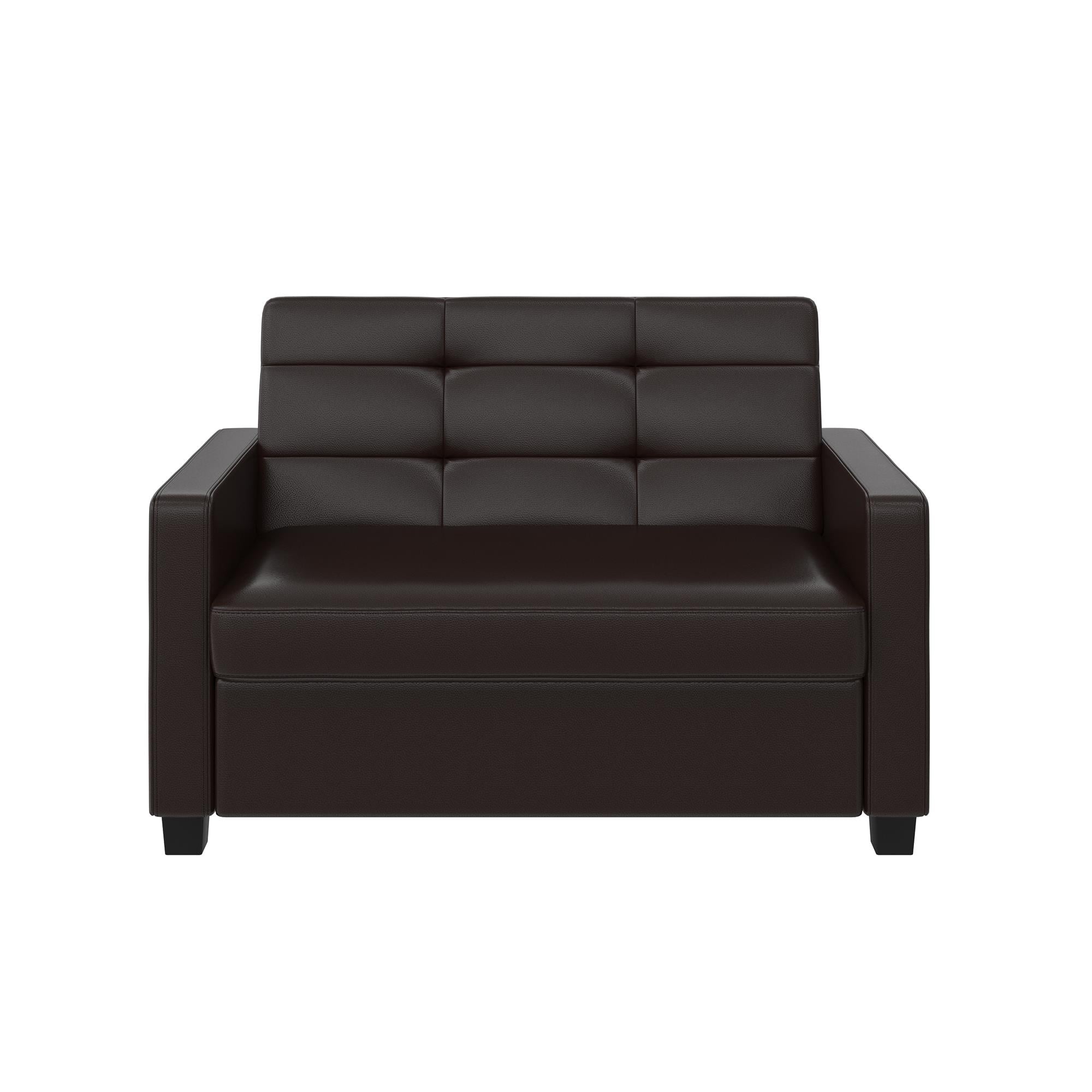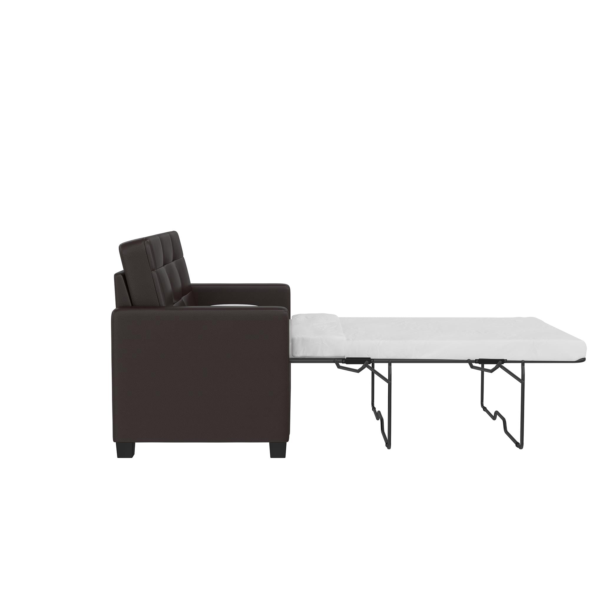 Mainstays Loveseat Sleeper Sofa with Twin Memory Foam Mattress. Chocolate Faux Leather