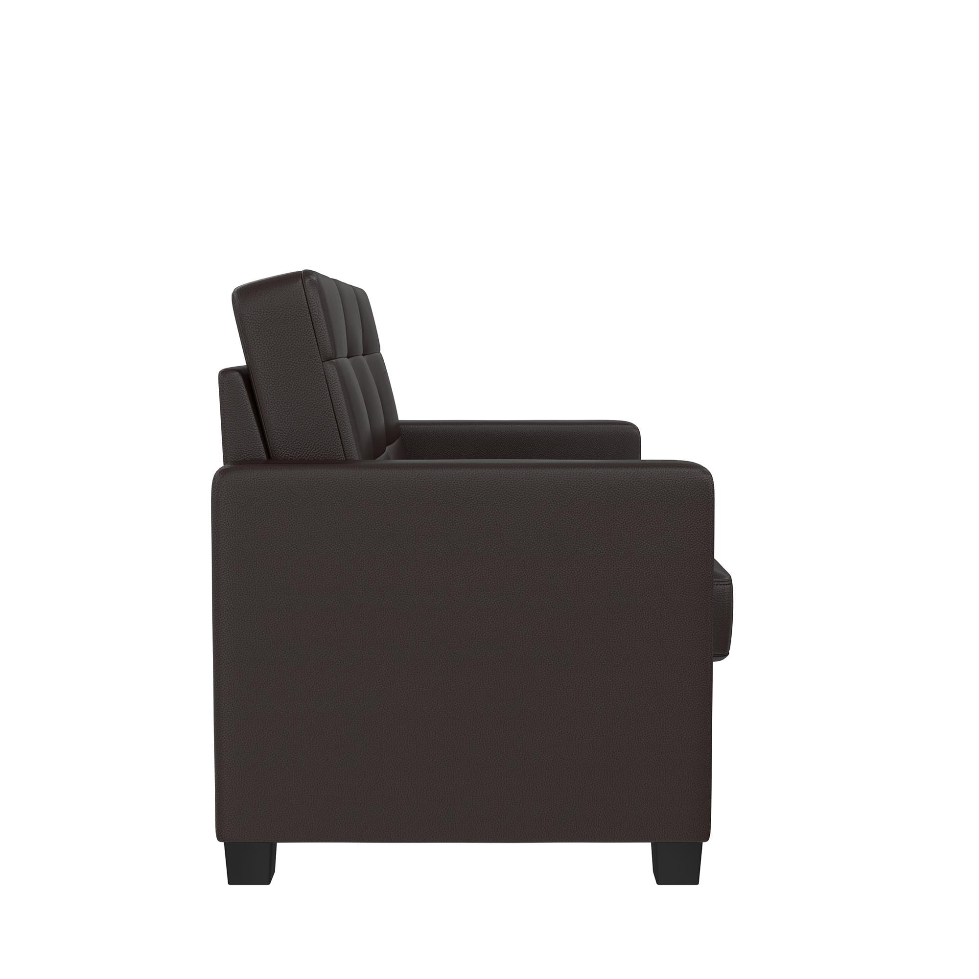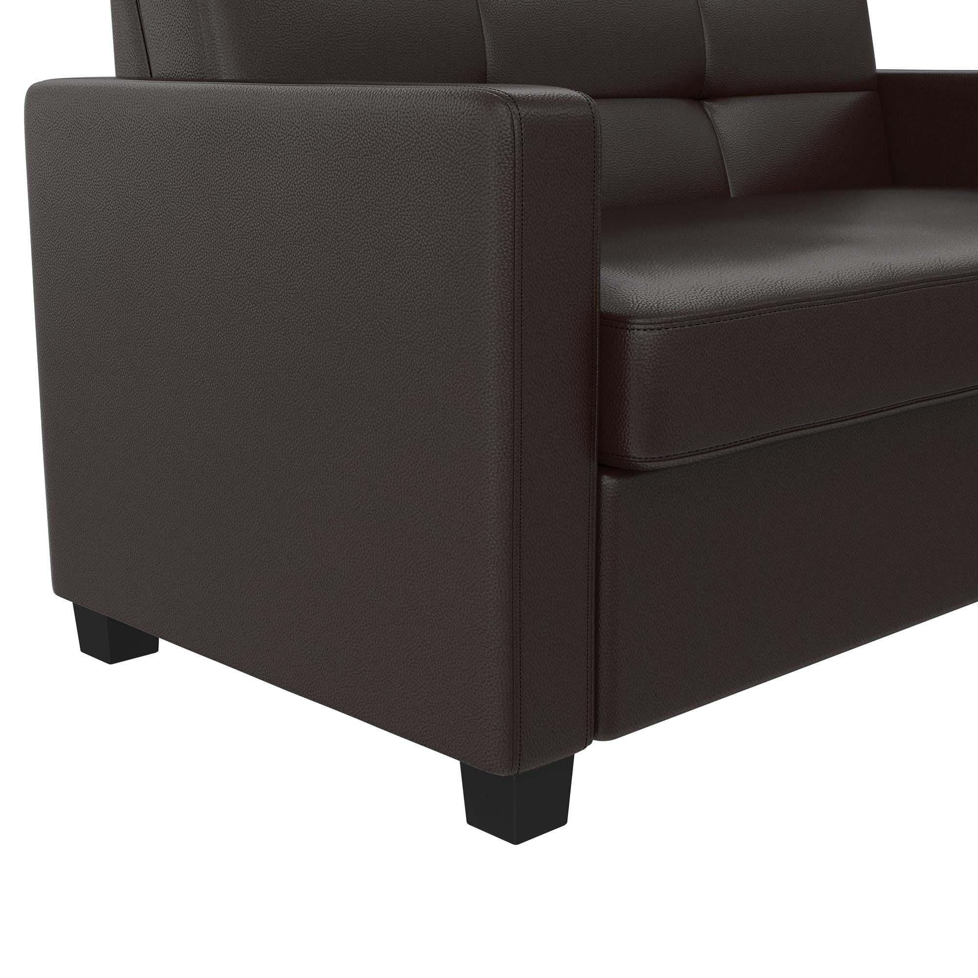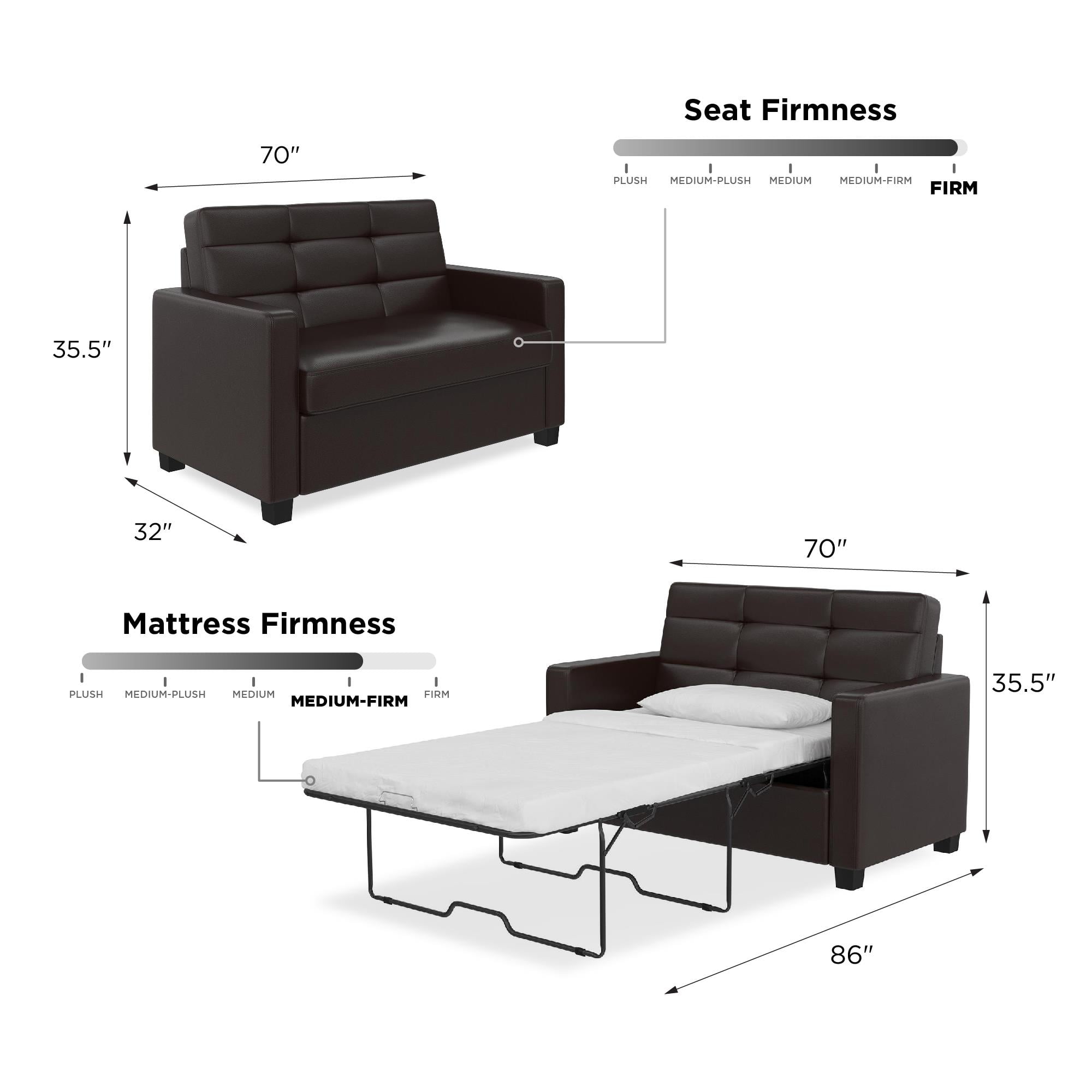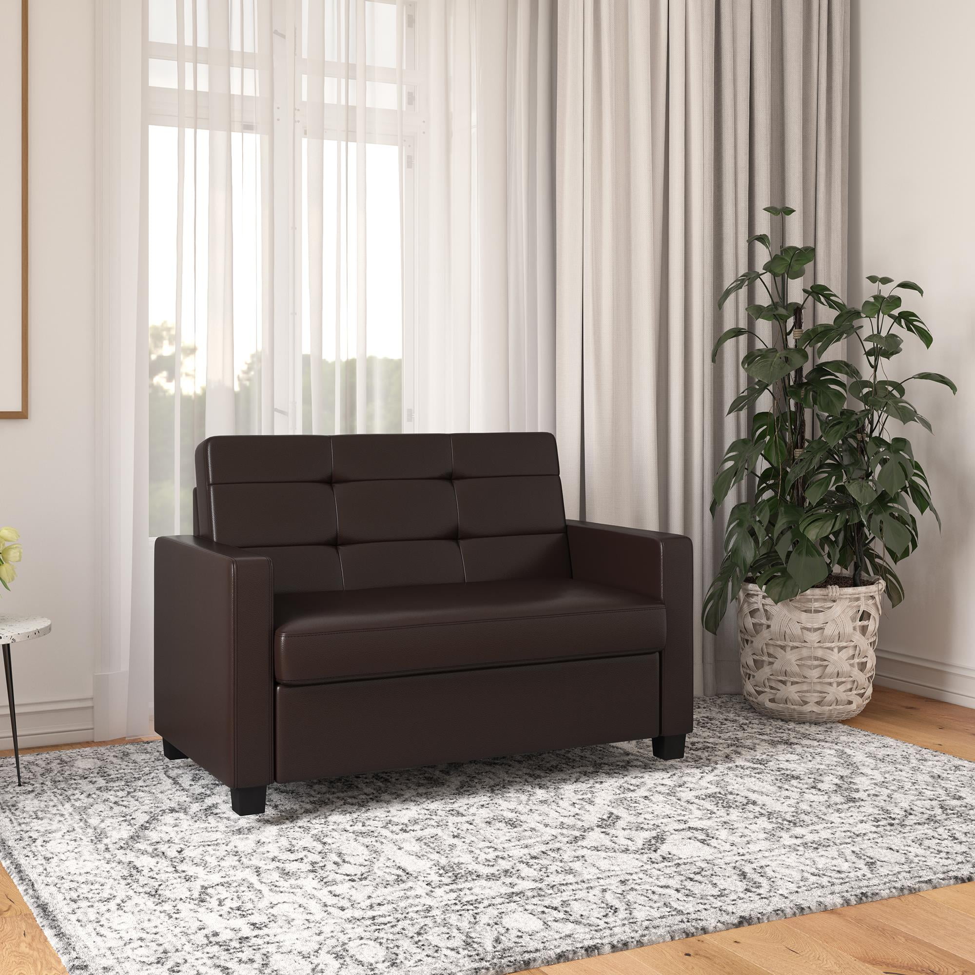 Mainstays Loveseat Sleeper Sofa with Twin Memory Foam Mattress. Chocolate Faux Leather