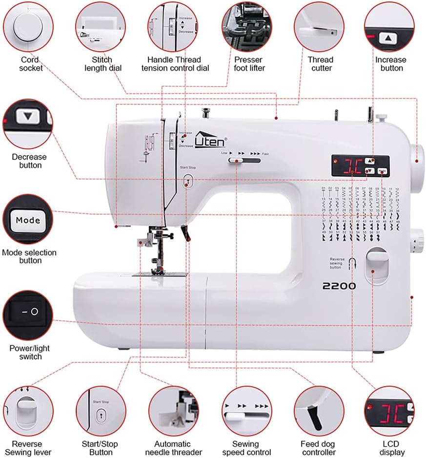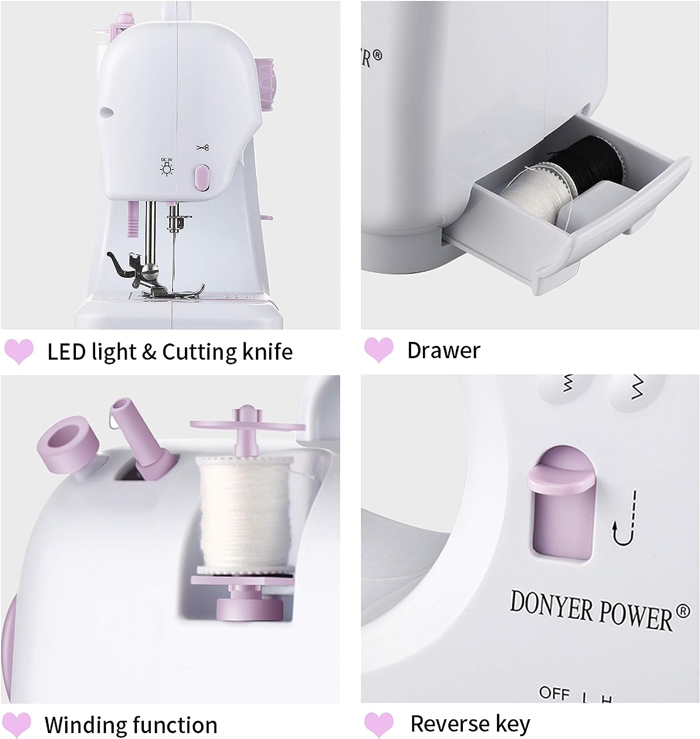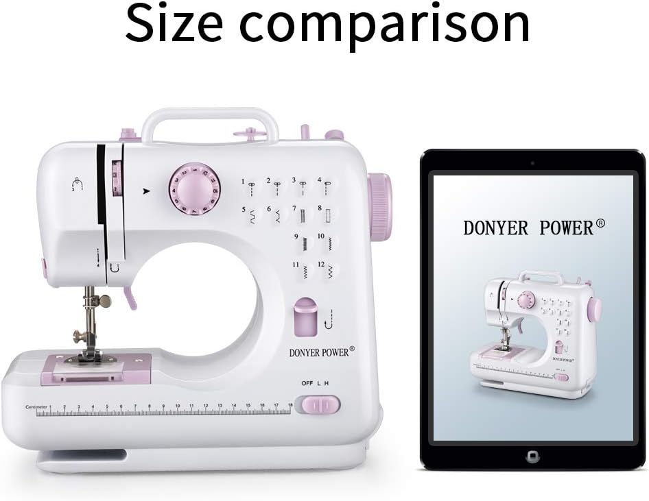 DONYER POWER Electric Sewing Machine Portable Mini with 12 Built-in Stitches. 2 Speeds Double Thread. Embroidery.Foot Pedal