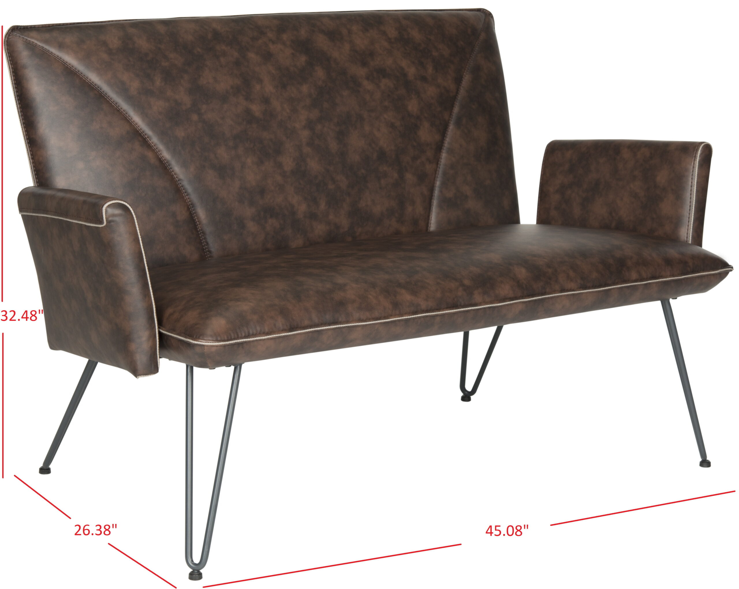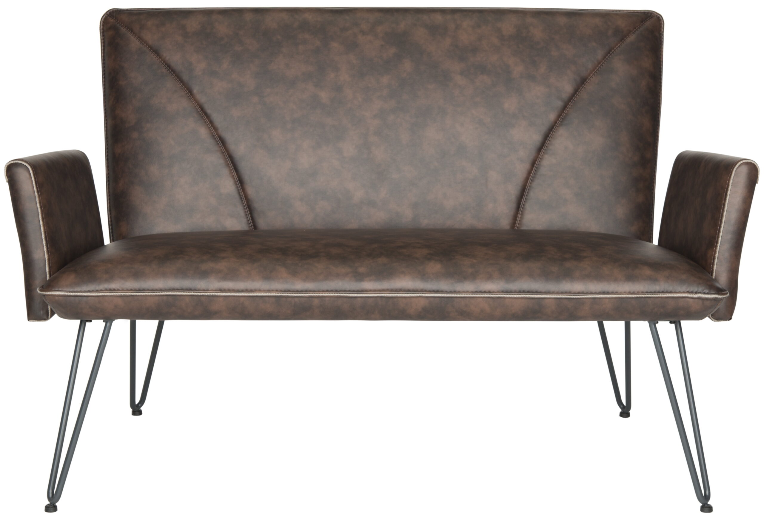 Safavieh Johannes Mid-Century Retro Modern Leather Settee. Antique Brown/Black