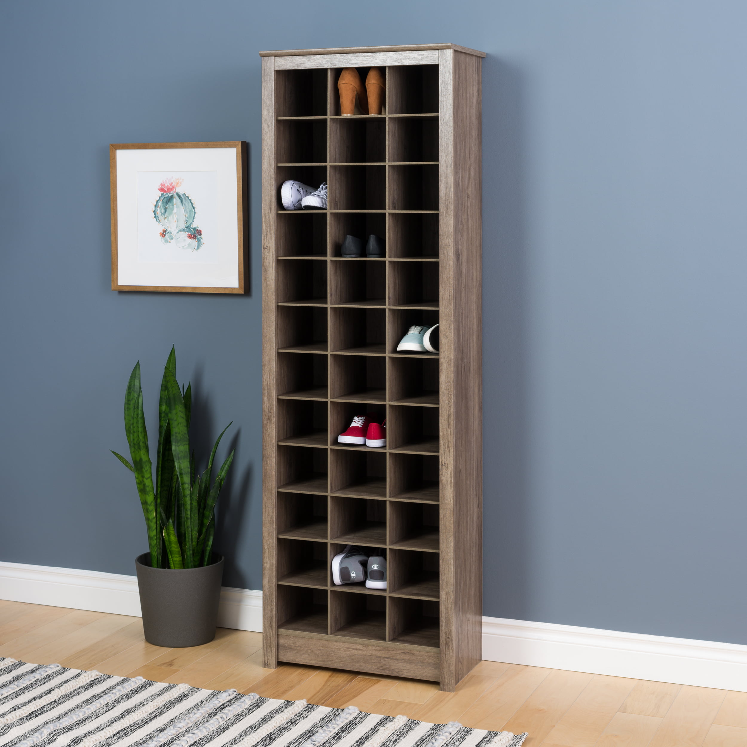 Prepac 12 Tier Entryway Storage Shoe Rack. 36 Pair Rack. Gray