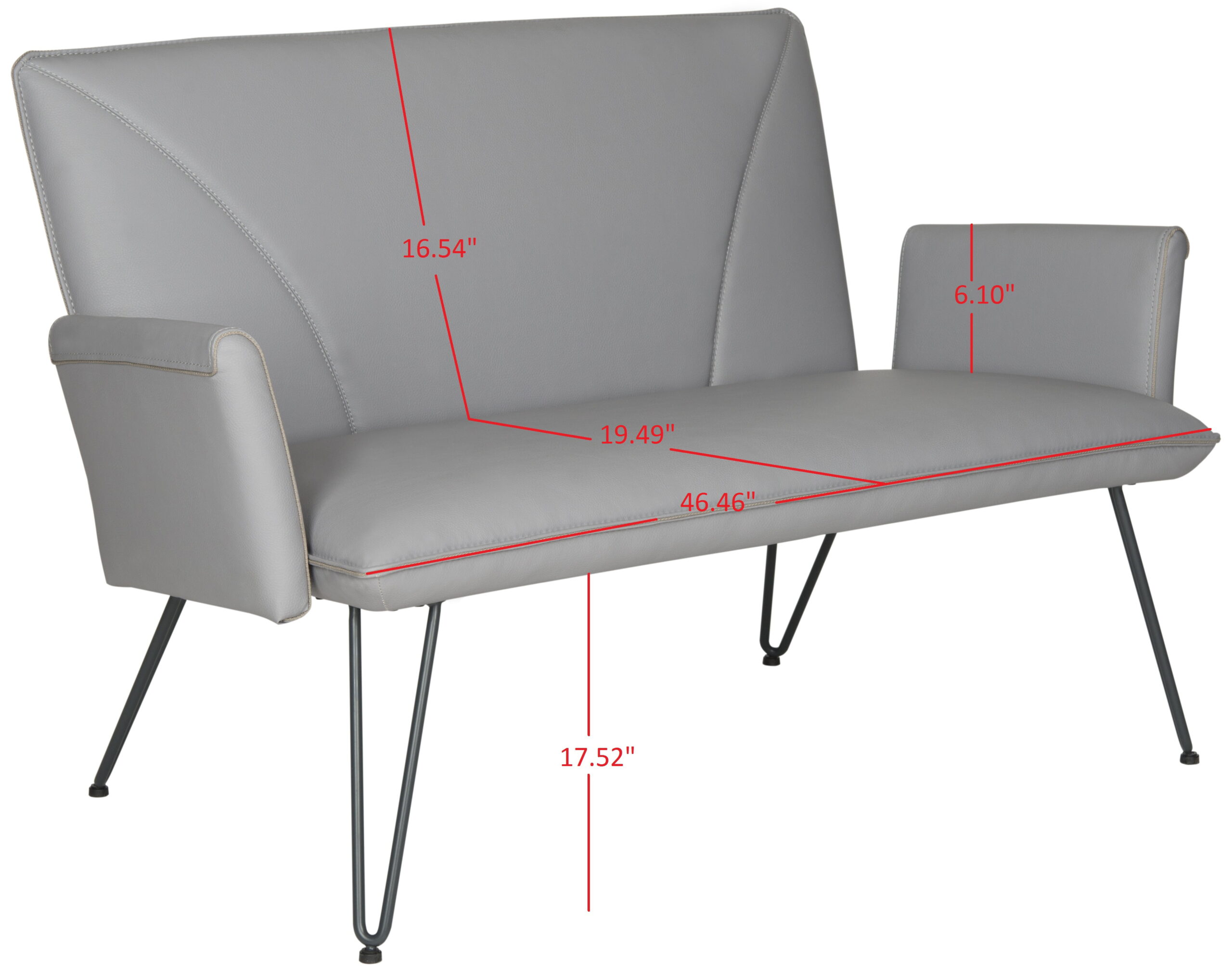Safavieh Johannes Mid-Century Retro Modern Leather Settee. Grey/Black