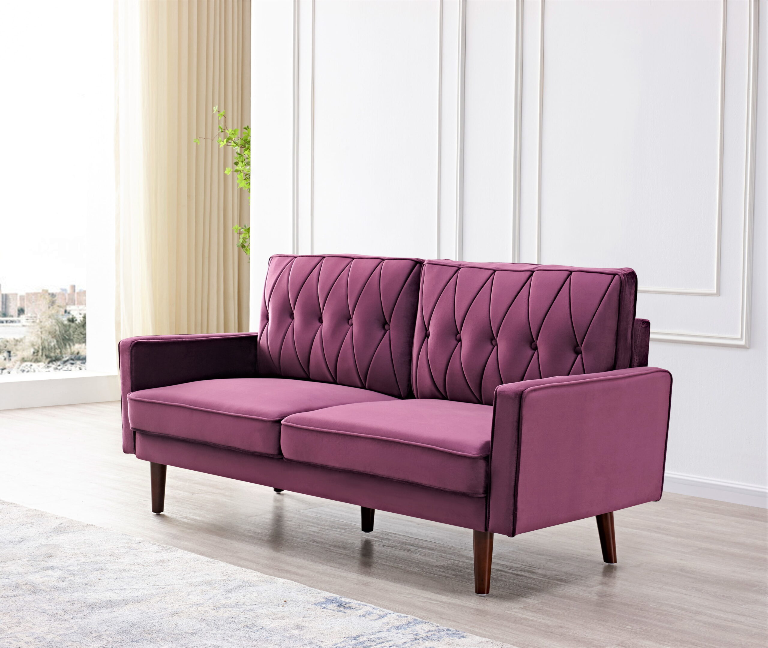 Uspridefurniture Feemster 57.5” Velvet Square Arm Loveseat. Eggplant