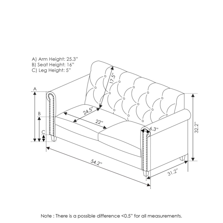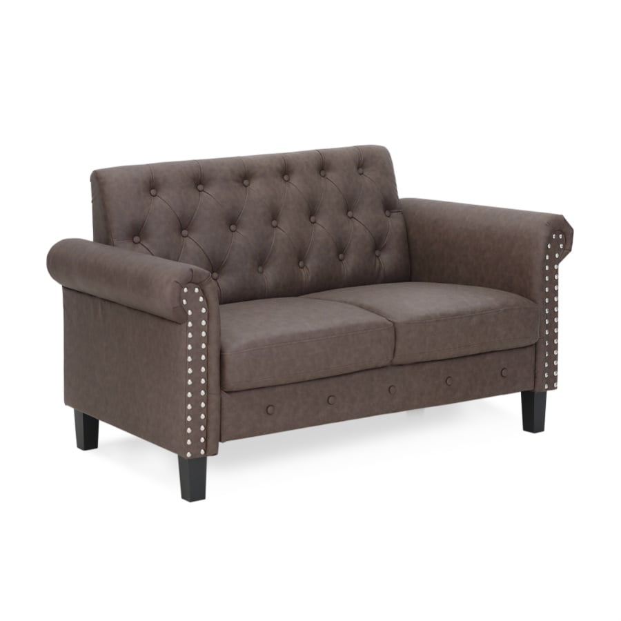 Furinno Bastia Vintage Button Tufted Loveseat. Brown Faux Leather