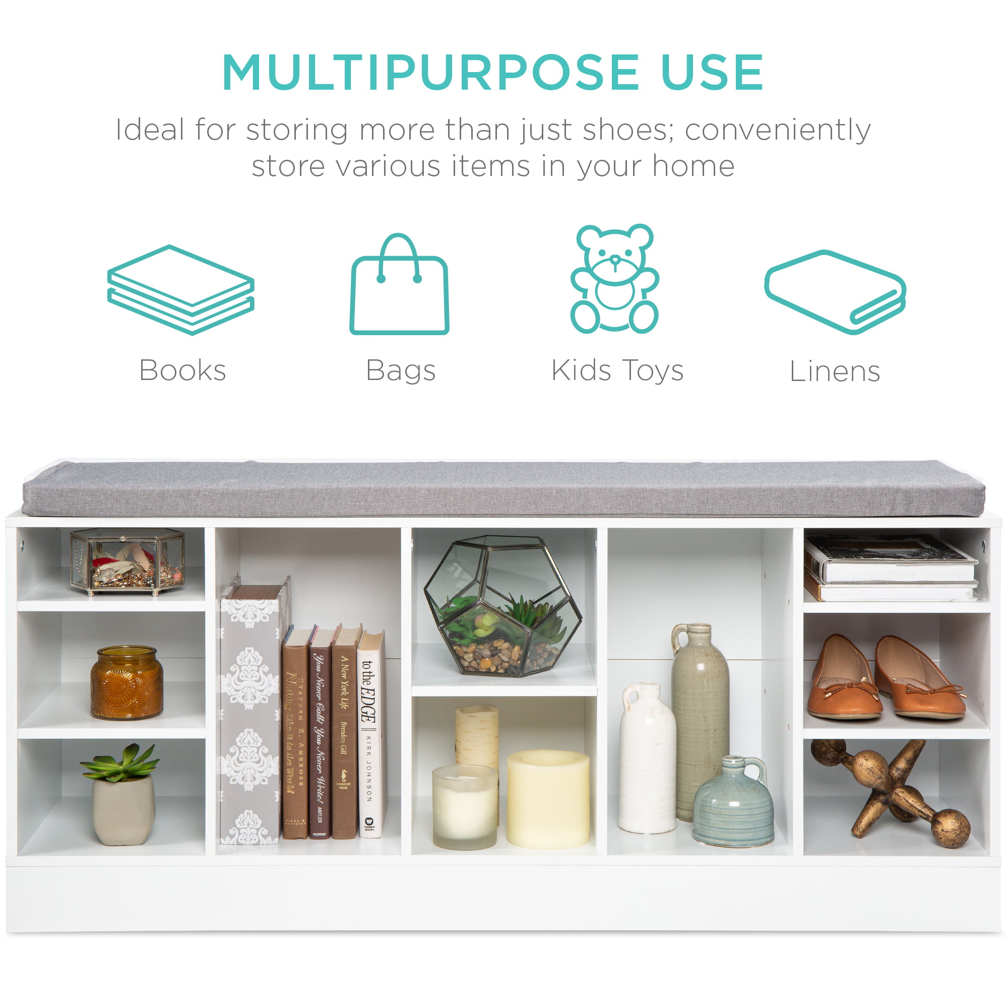 Best Choice Products 46in Shoe Storage Organization Rack Bench for Entryway. Bedroom w/ Padded Seat. 10 Cubbies - White