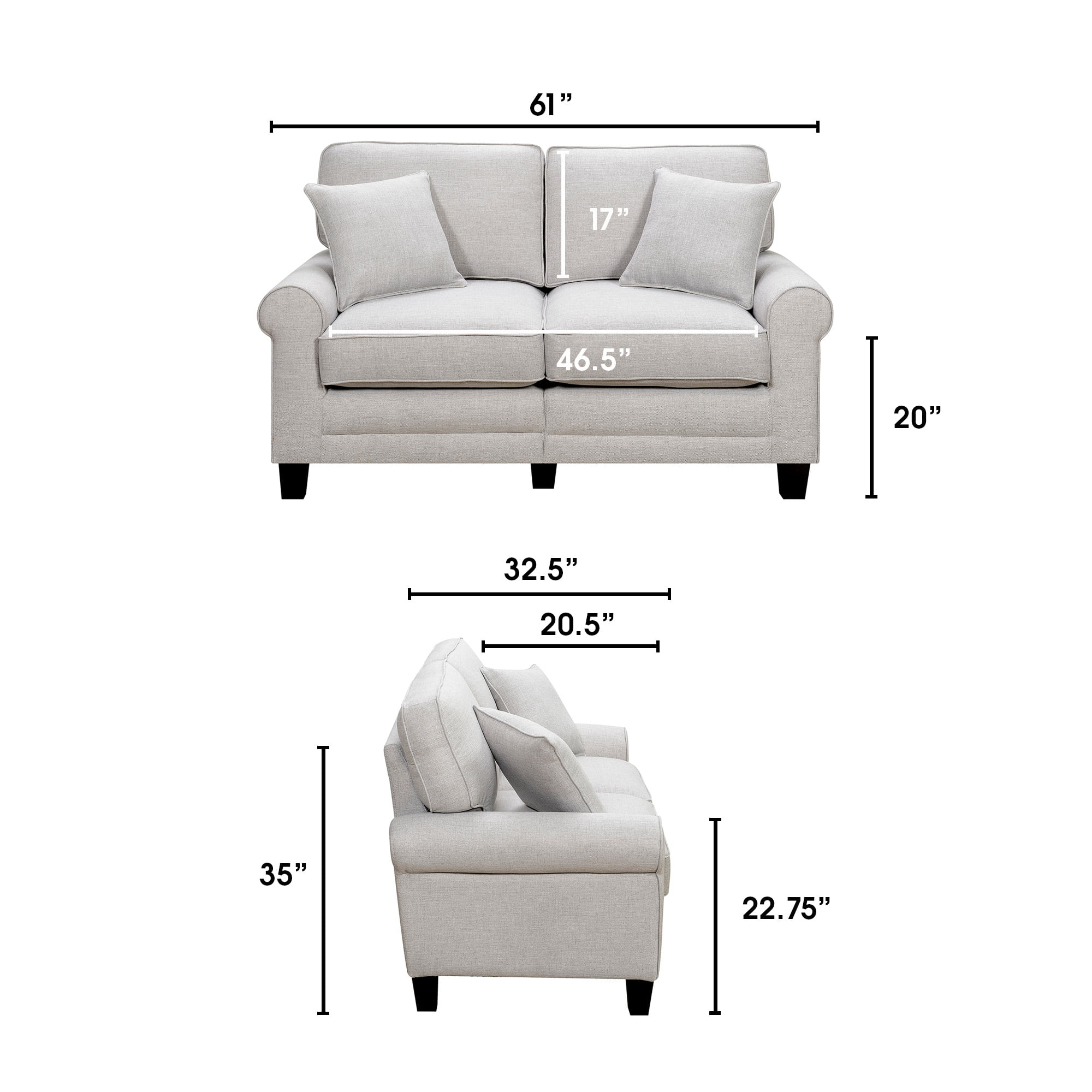 OakvillePark Milford Fabric Upholstered Living Room Loveseat. Dark Gray