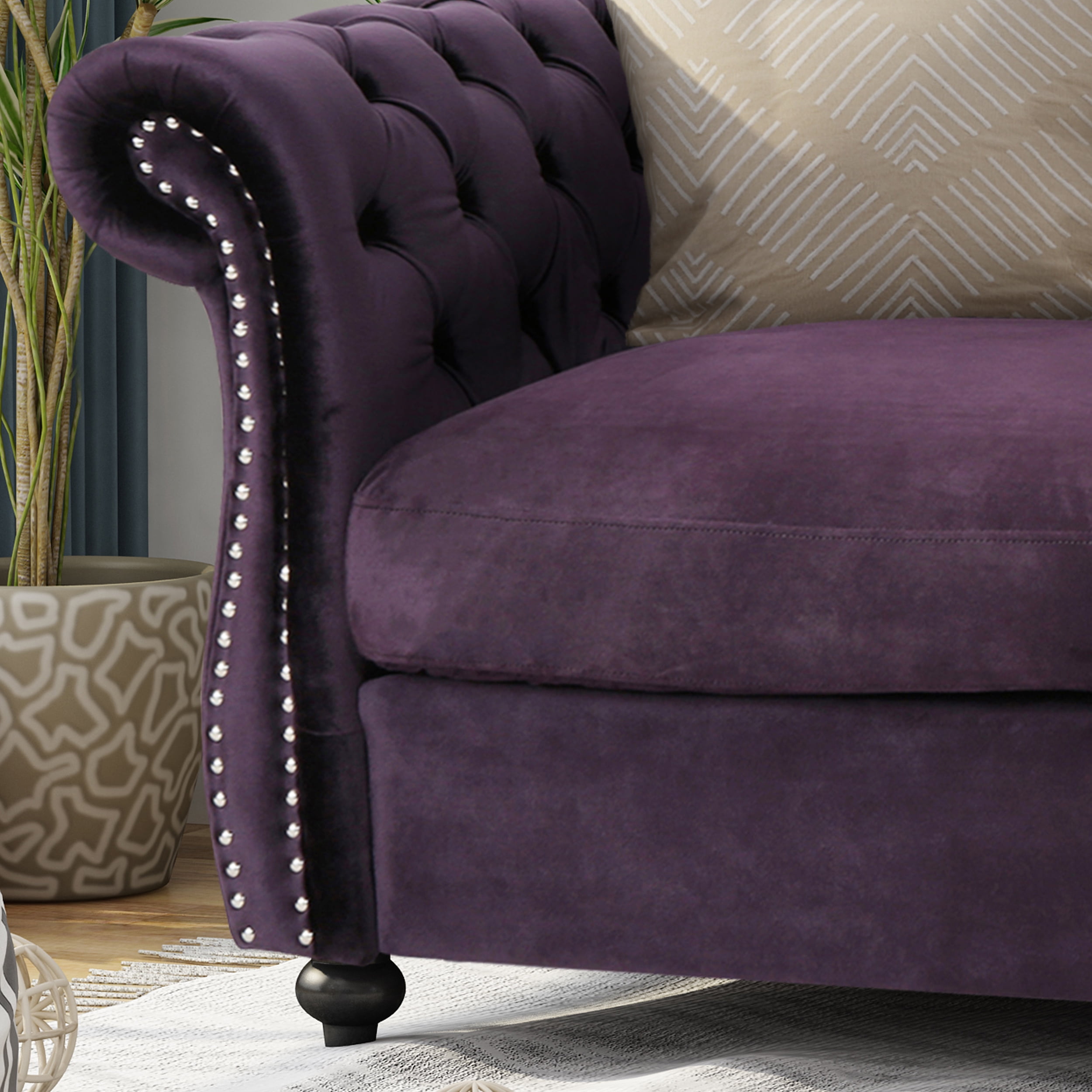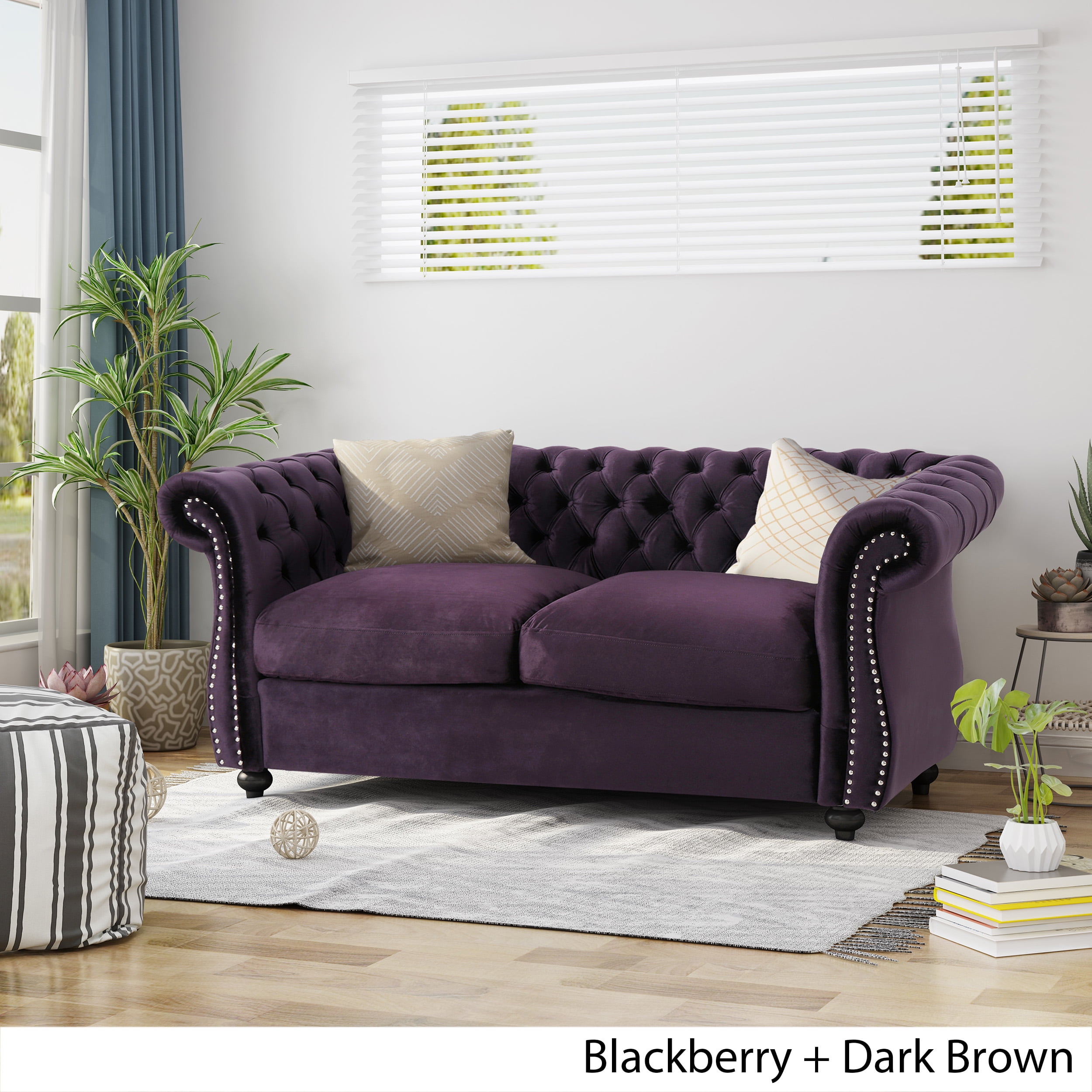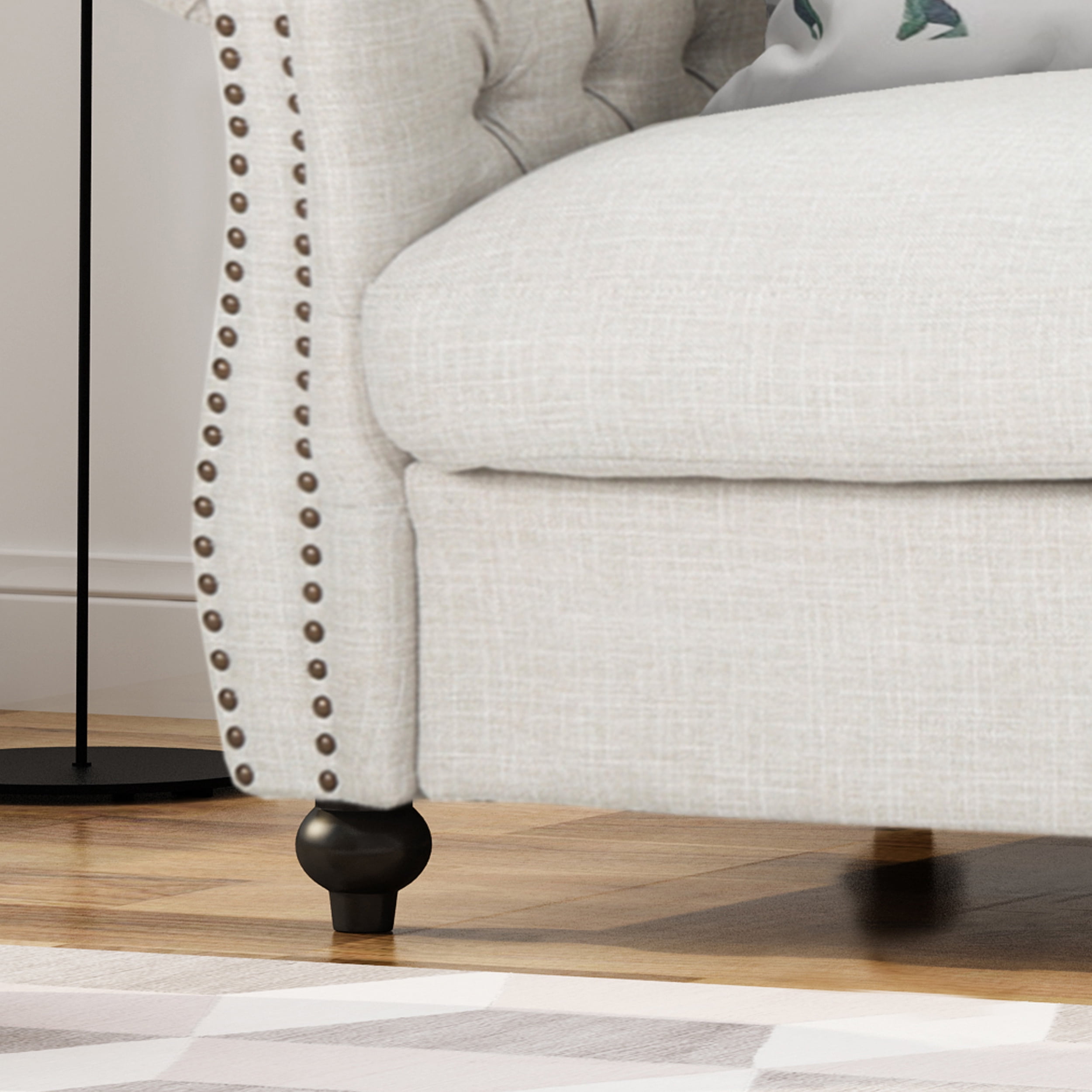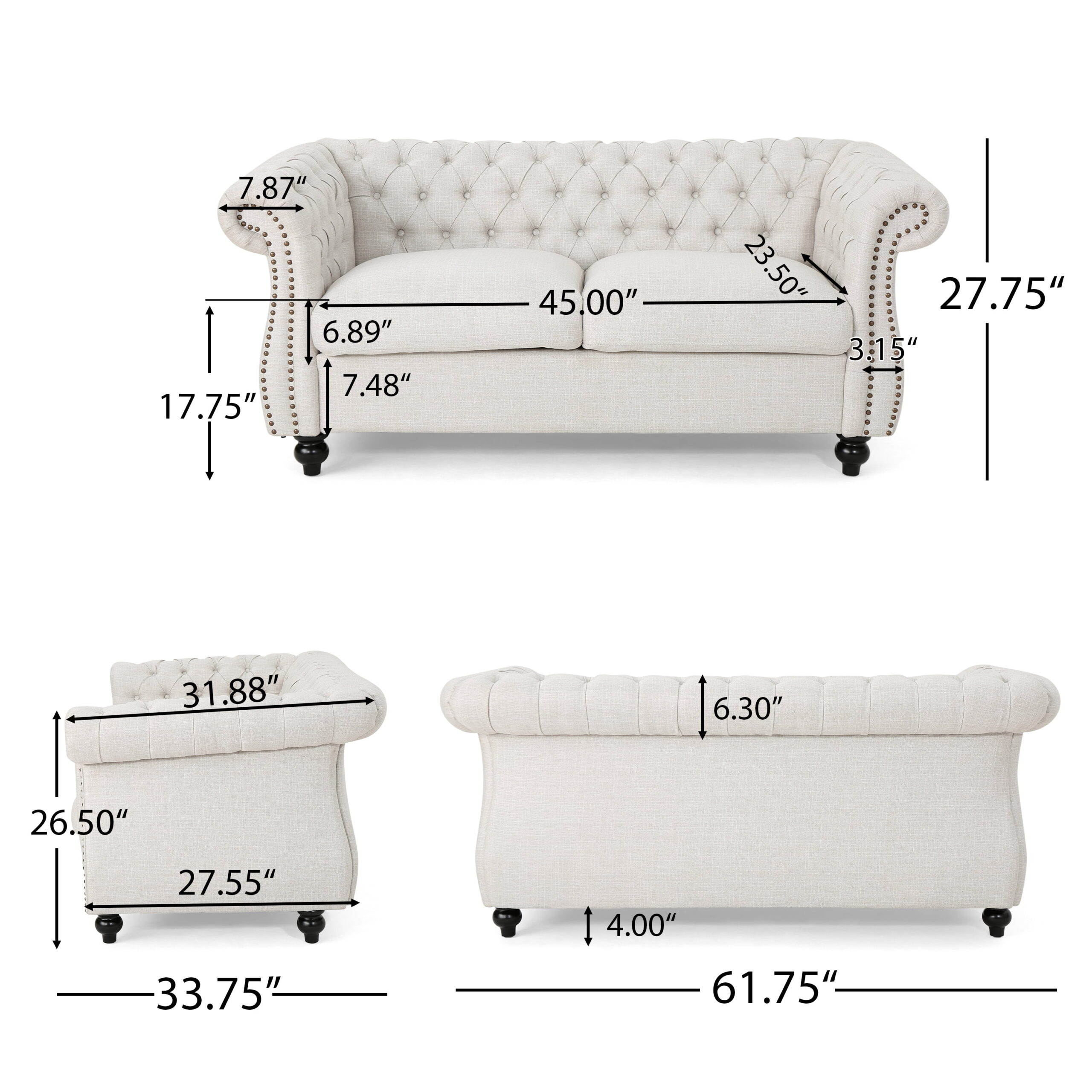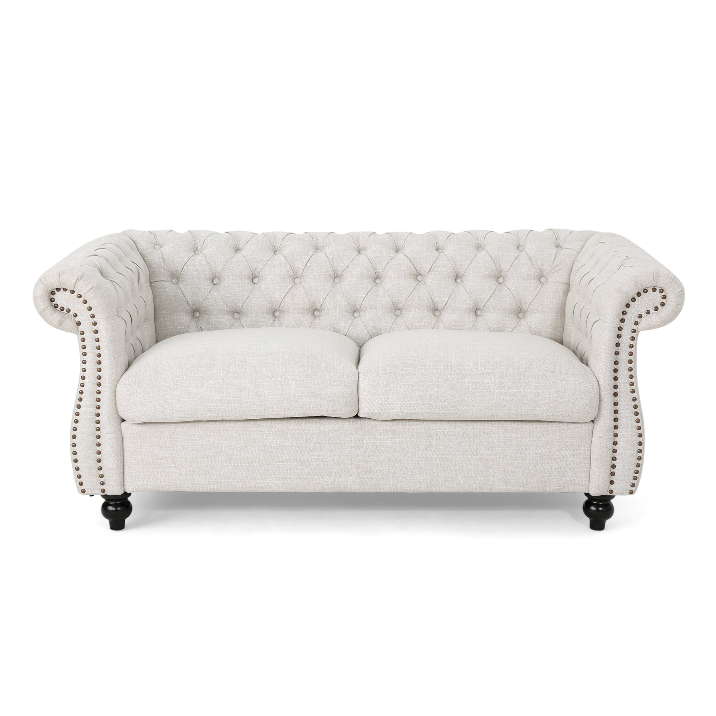 Noble House Ember Interiors Aaniya Fabric Chesterfield Loveseat Sofa. Beige